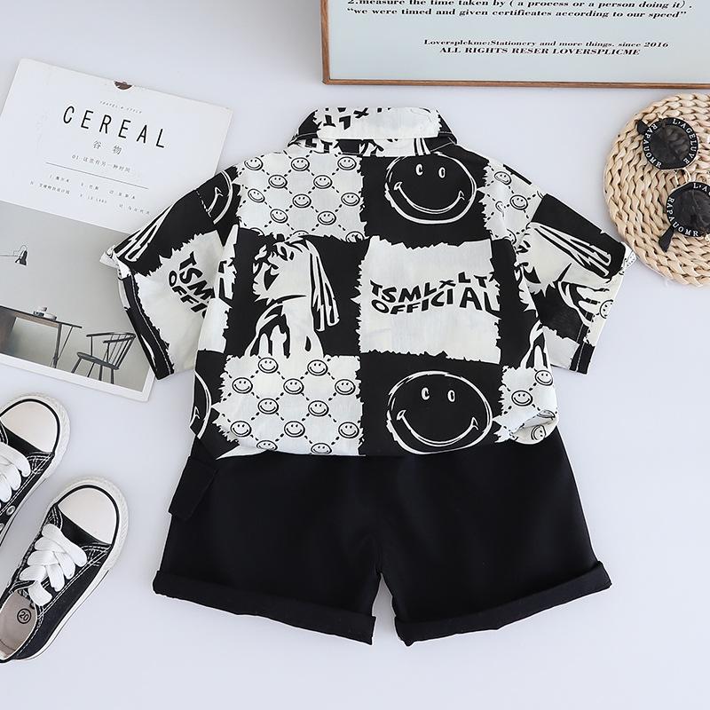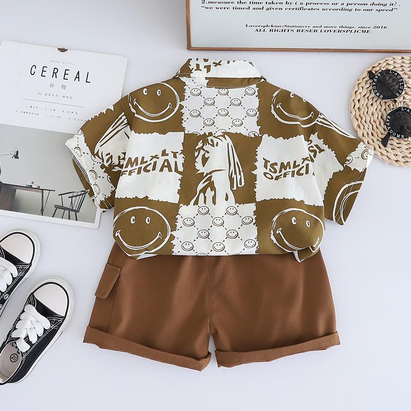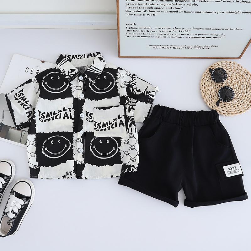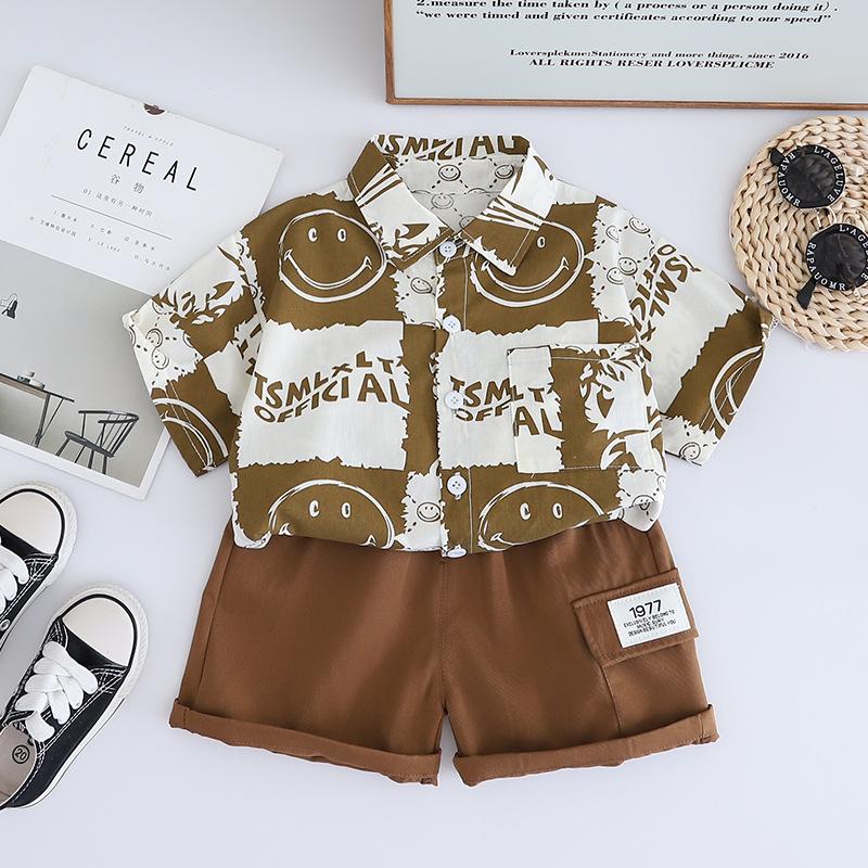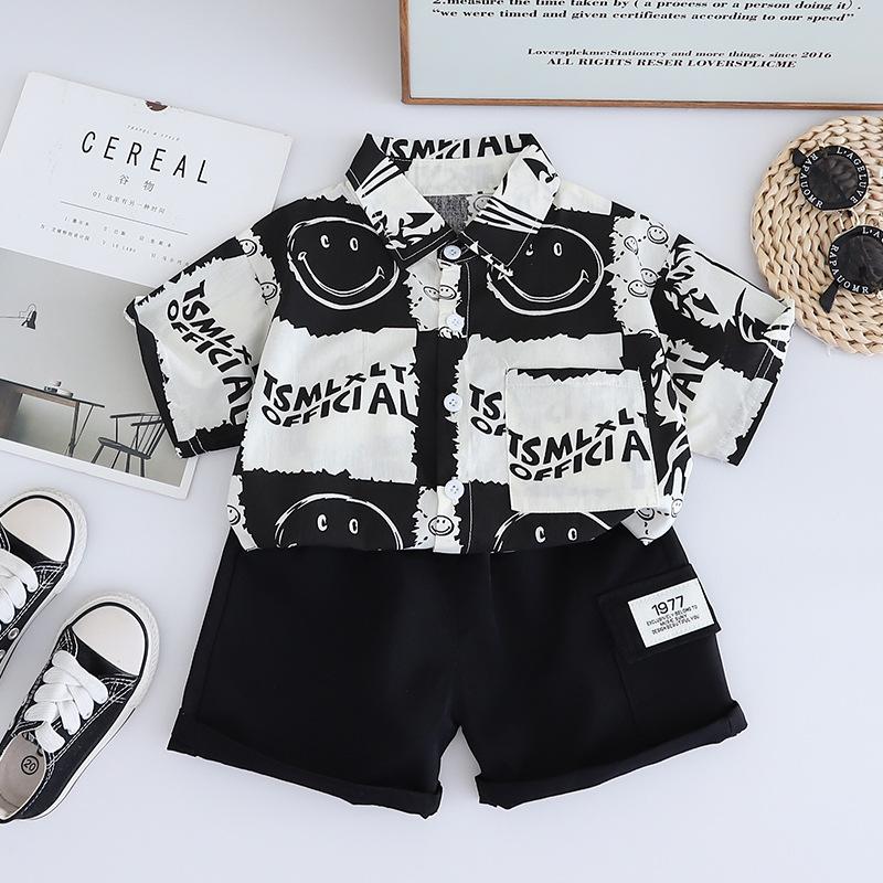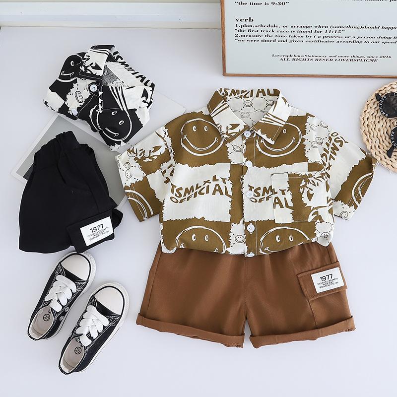 Ropa estampada para niños y niñas, traje de verano 2024, nueva ropa de verano, camisa de manga corta para niños de estilo occidental, estilo coreano