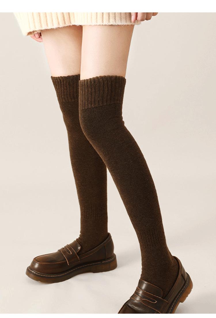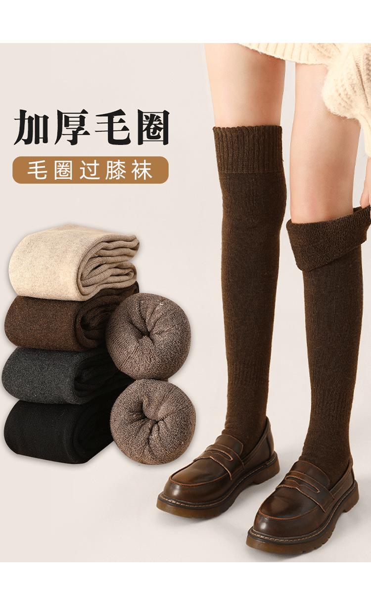 Calcetines por encima de la rodilla, calcetines altos para mujer, otoño e invierno, forrados de vellón, medias gruesas y cálidas hasta el muslo, medias de felpa de invierno Zhuji