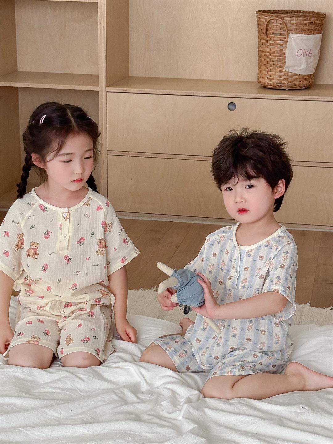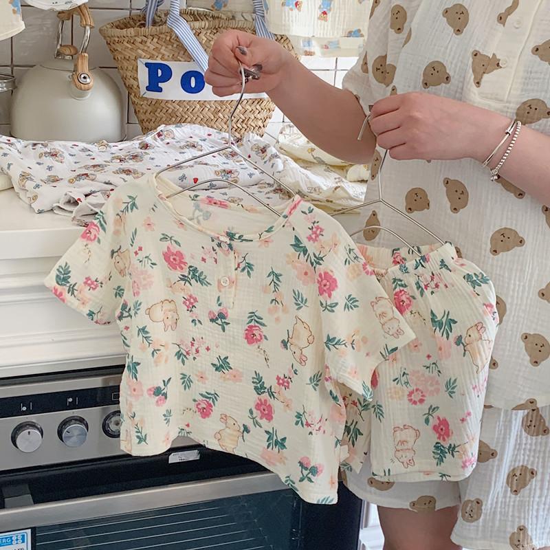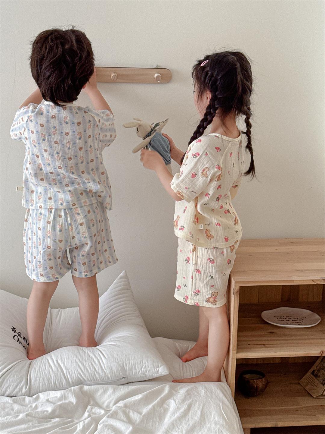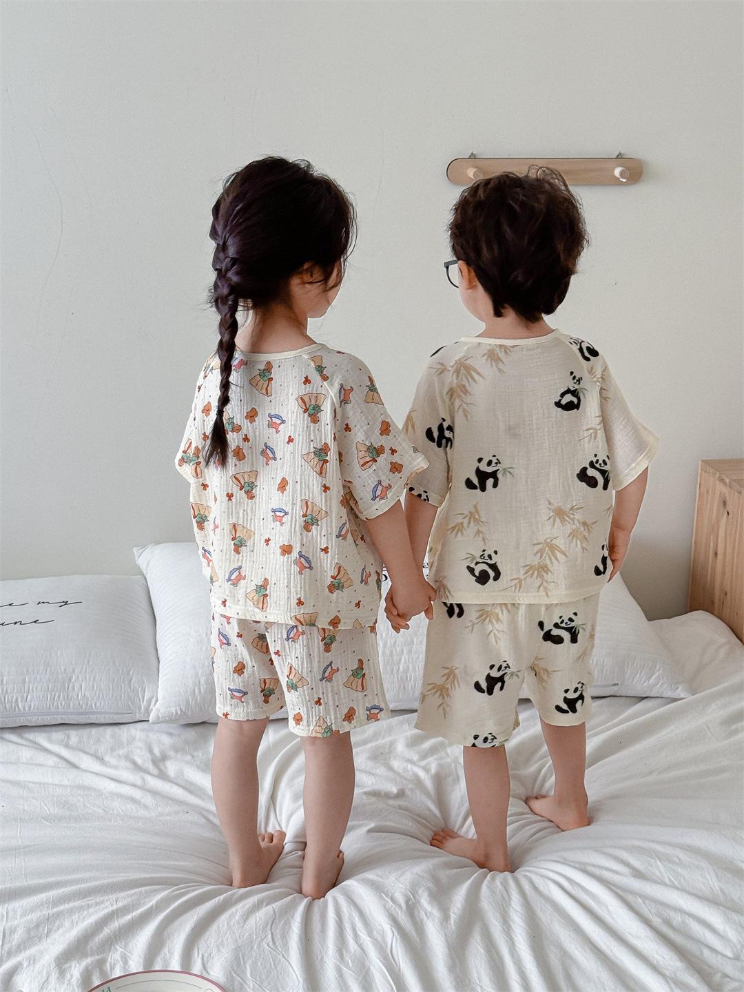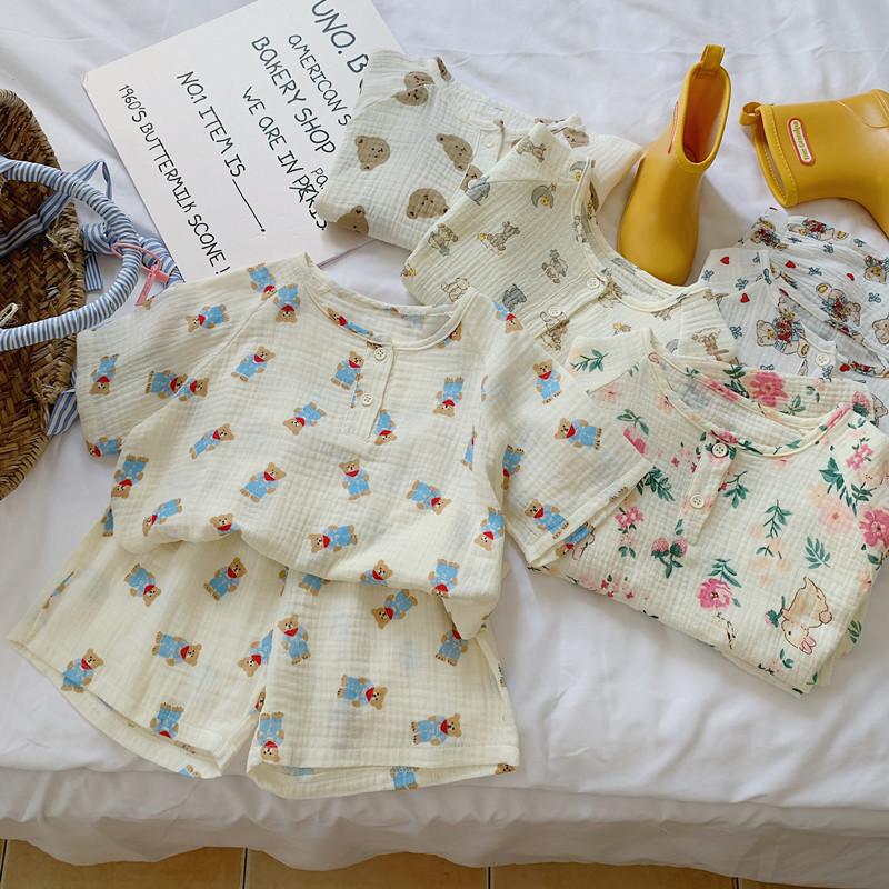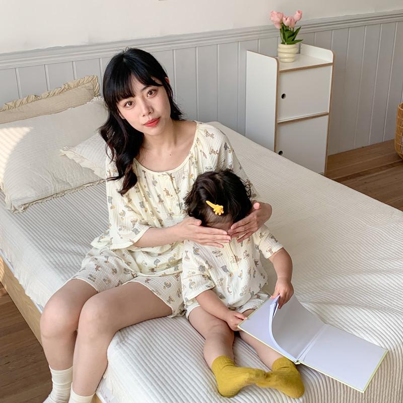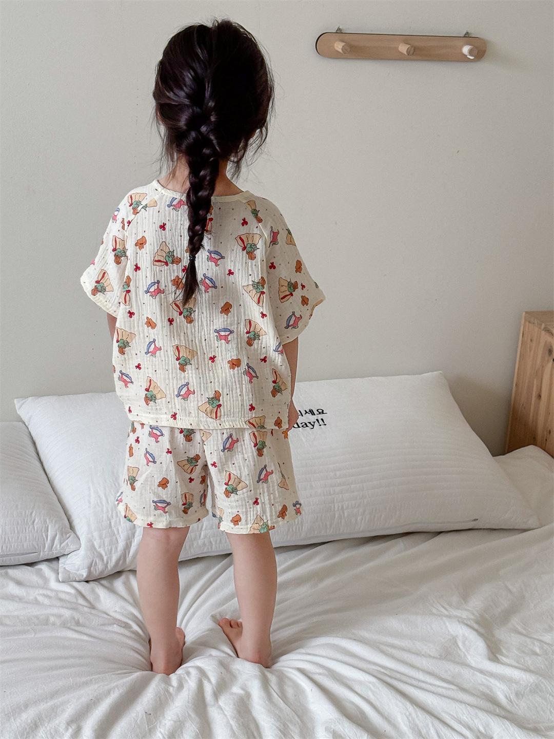 Pijamas Familiares a Juego para Niños, Conjunto de Gasa de Algodón para Estar en Casa, Verano 2024 Pantalones Cortos de Manga Corta, Niños y Niñas, Se Puede Usar Afuera