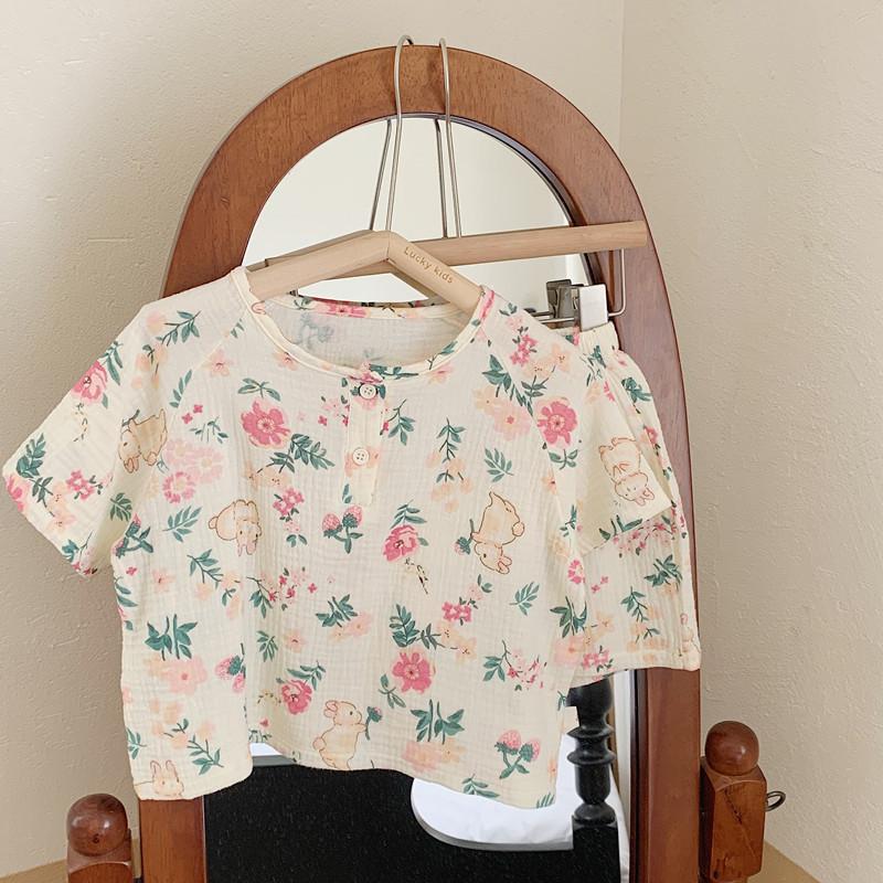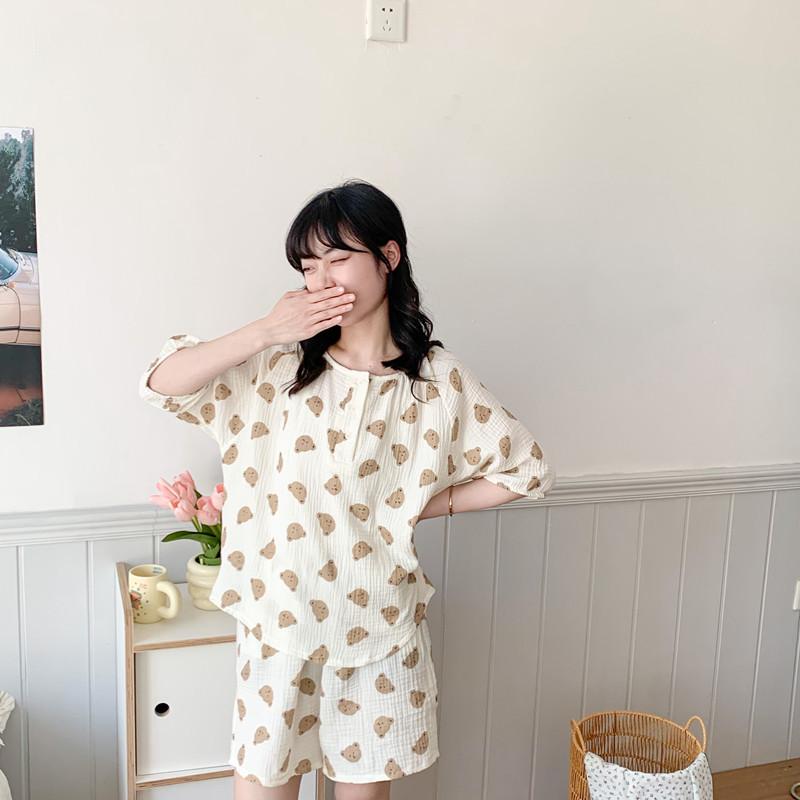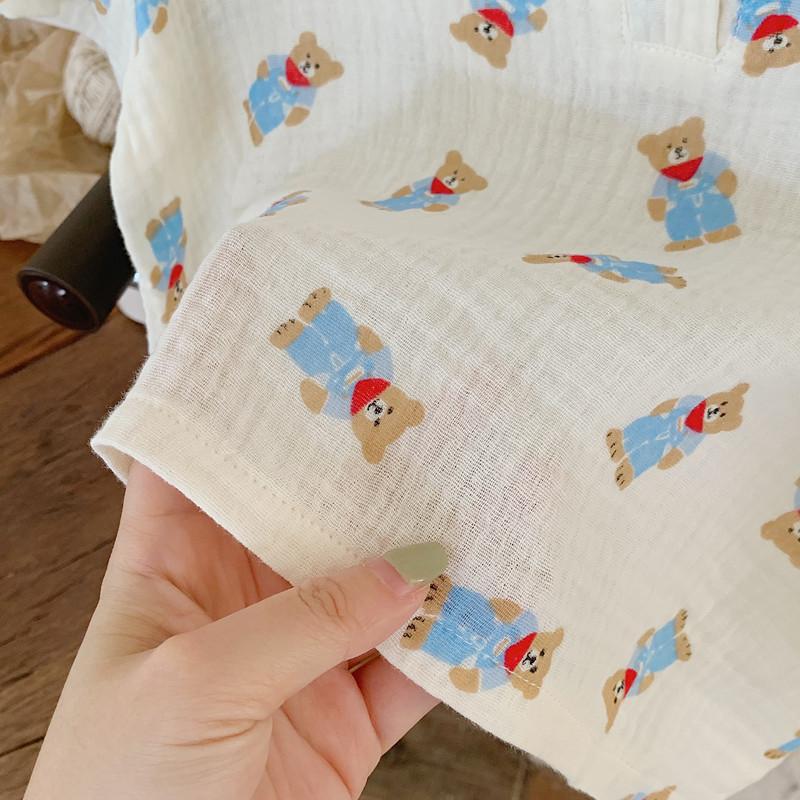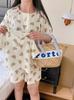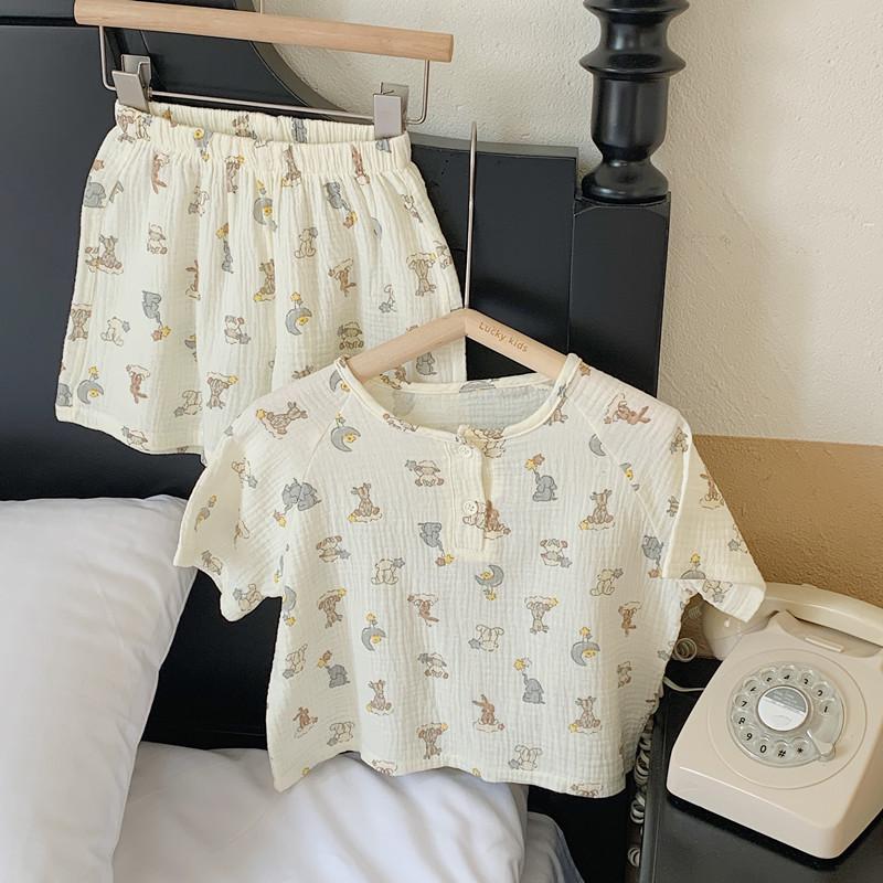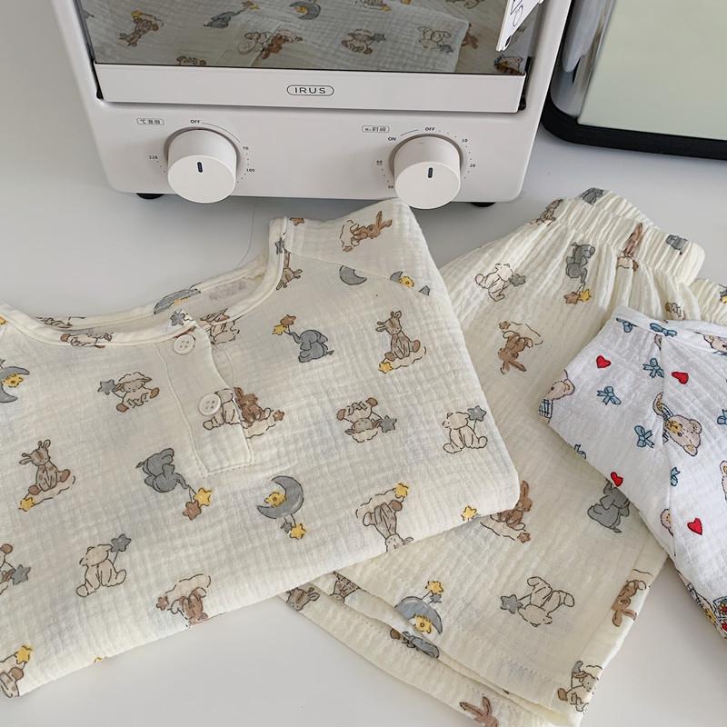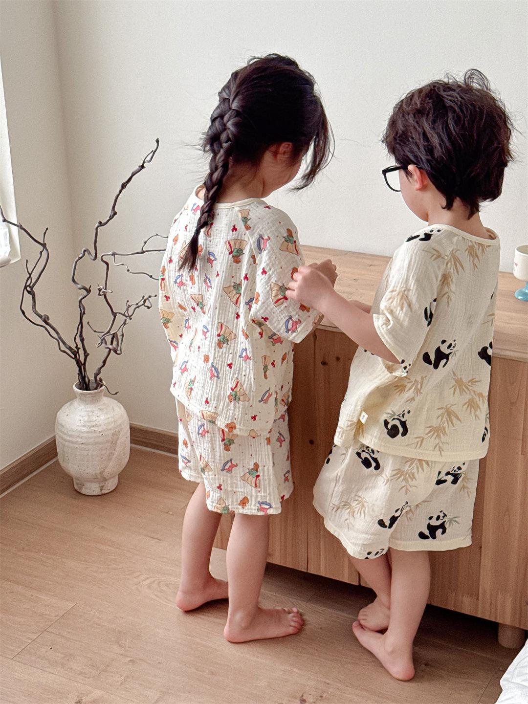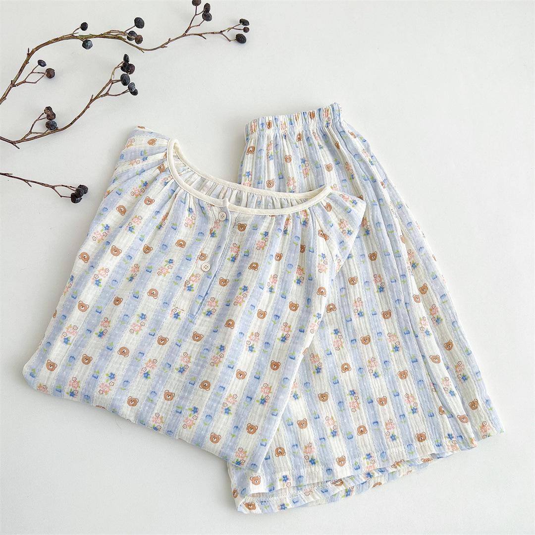 Pijamas Familiares a Juego para Niños, Conjunto de Gasa de Algodón para Estar en Casa, Verano 2024 Pantalones Cortos de Manga Corta, Niños y Niñas, Se Puede Usar Afuera