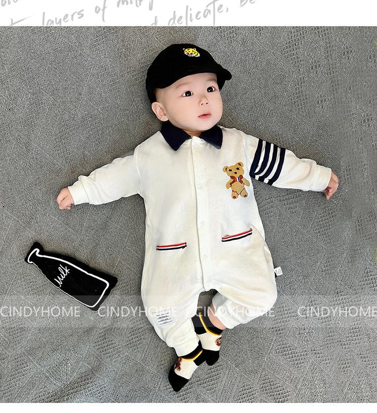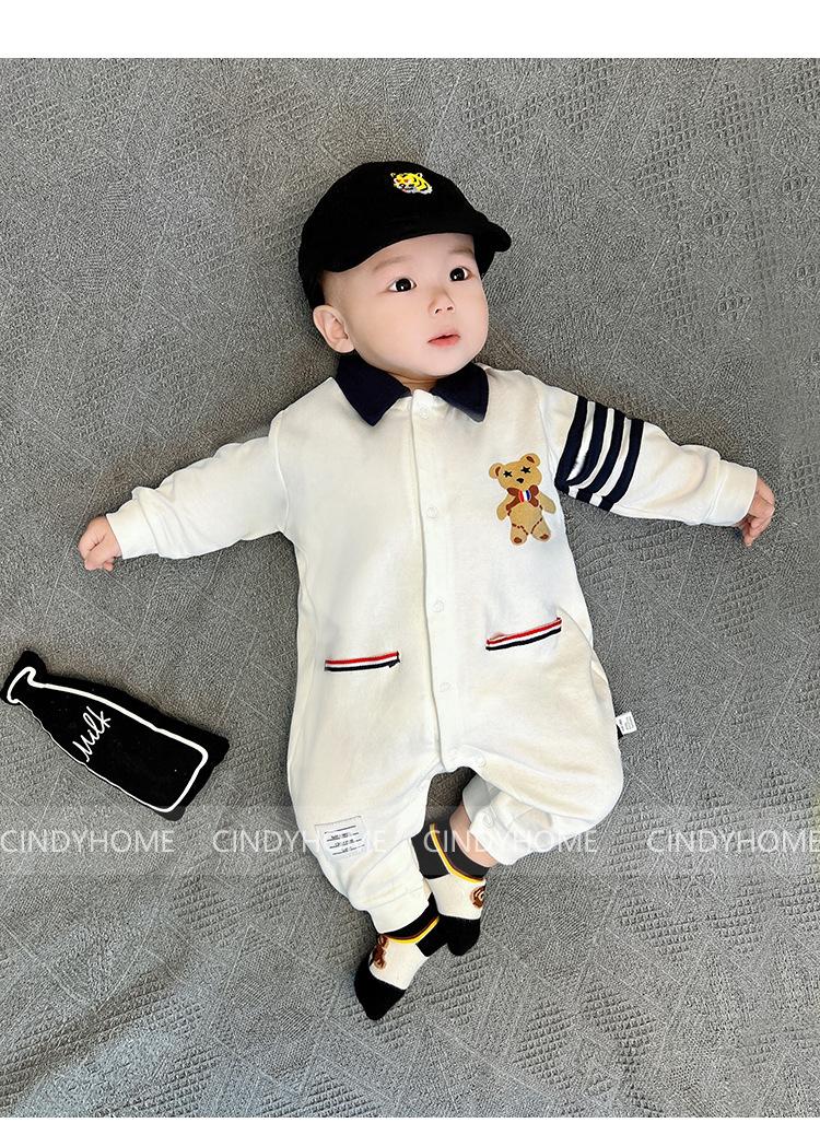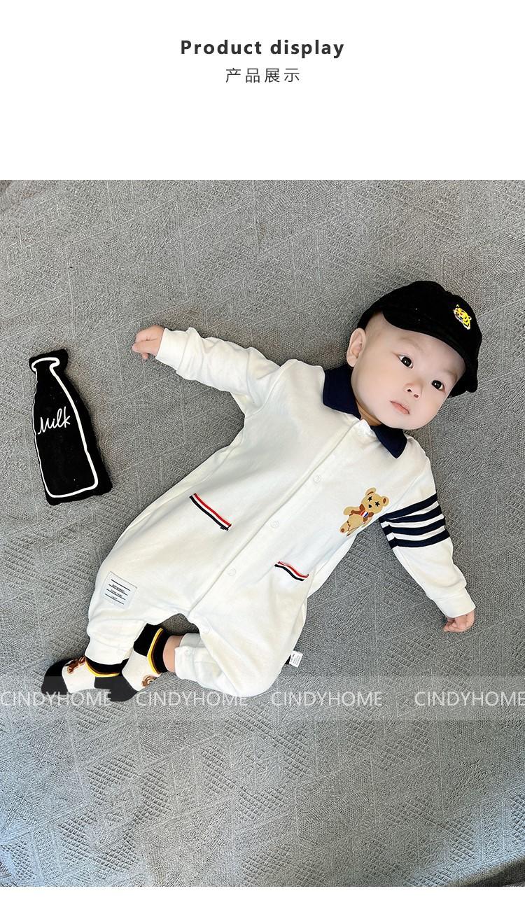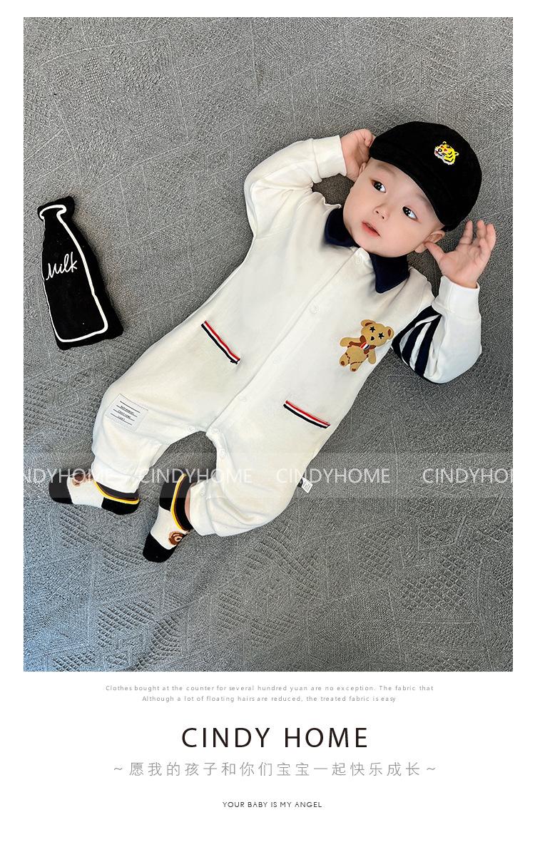 Mono de algodón puro con diseño de oso de dibujos animados para niños pequeños, ropa elegante Ha-ha, ropa de escalada de moda para bebés y niños de primavera y otoño.