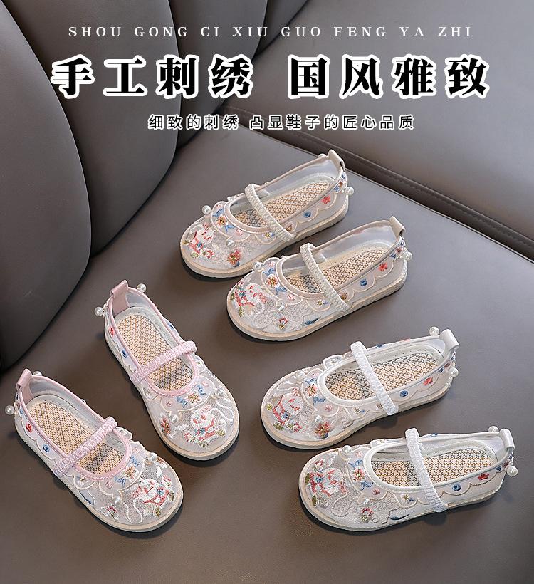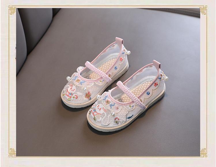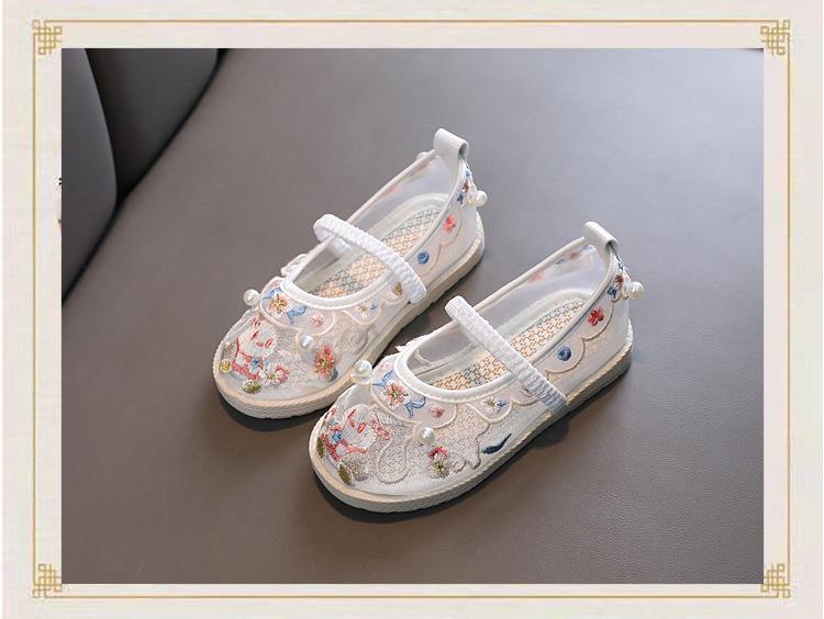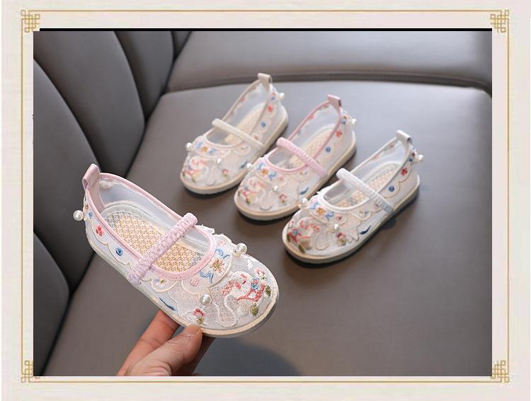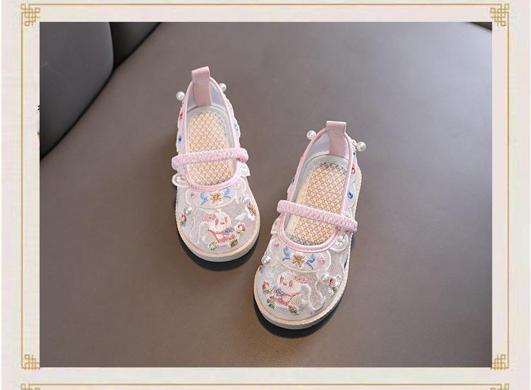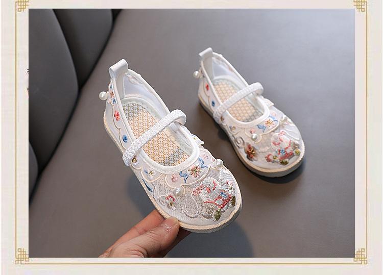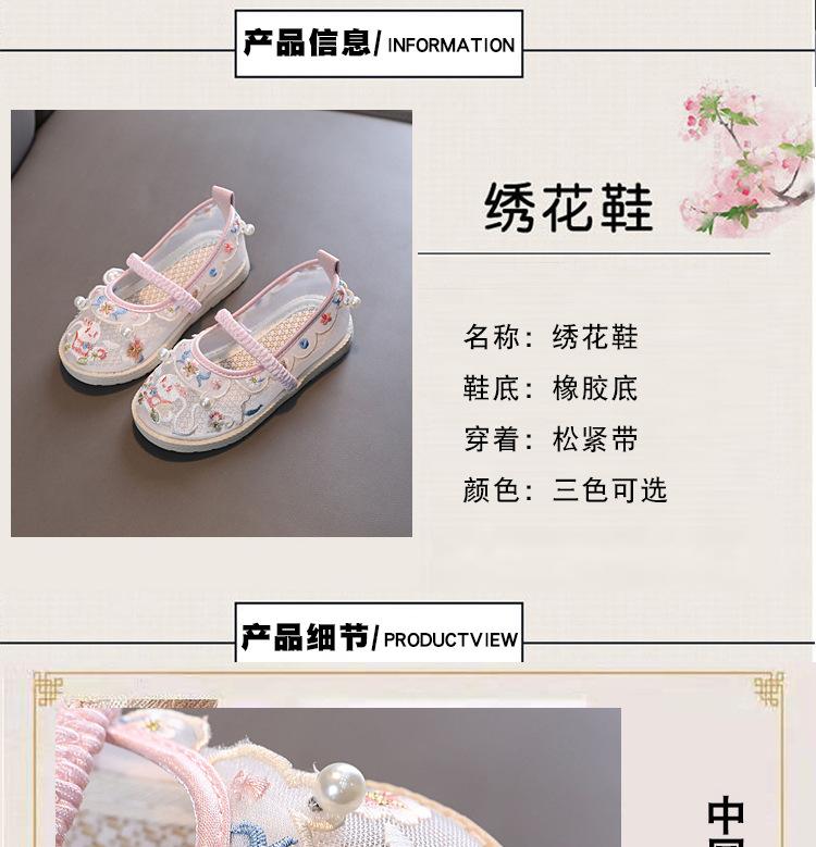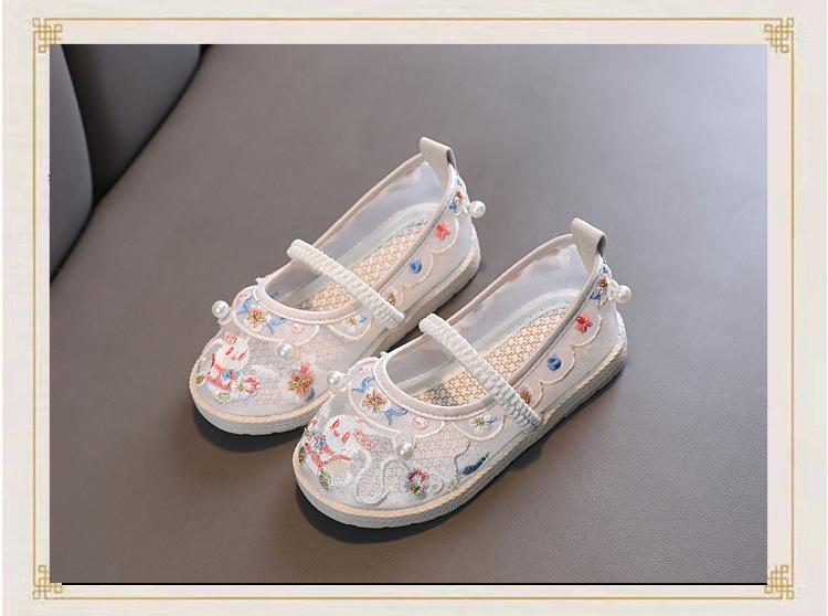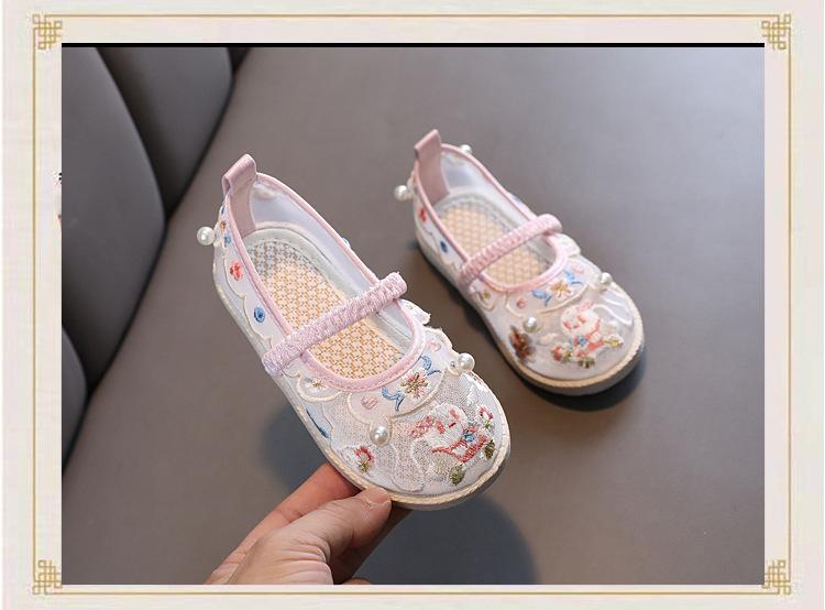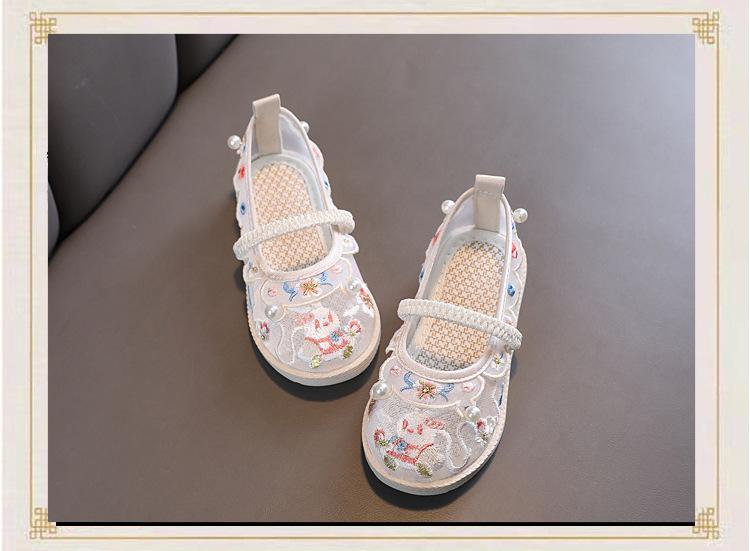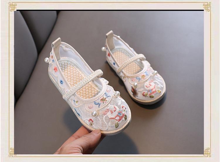 Zapatos Bordados Hanfu Zapatos de Tela de Pekín Antiguo para Niñas Estilo Étnico Vestido Antiguo Zapatos Bordados Suela de Tendón de Res Zapatos de Baile para Niños Zapatos para Niños