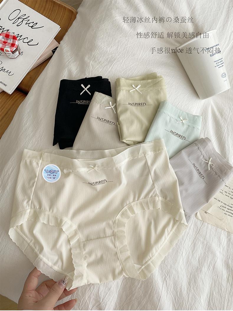 Ropa interior de mujer de estilo pequeño y fresco de seda de hielo sin costuras de secado rápido 2024 nuevo verano delgada entrepierna de seda de morera cintura calzones triangulares
