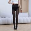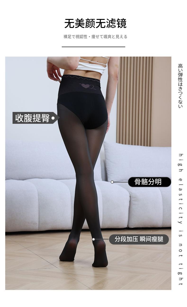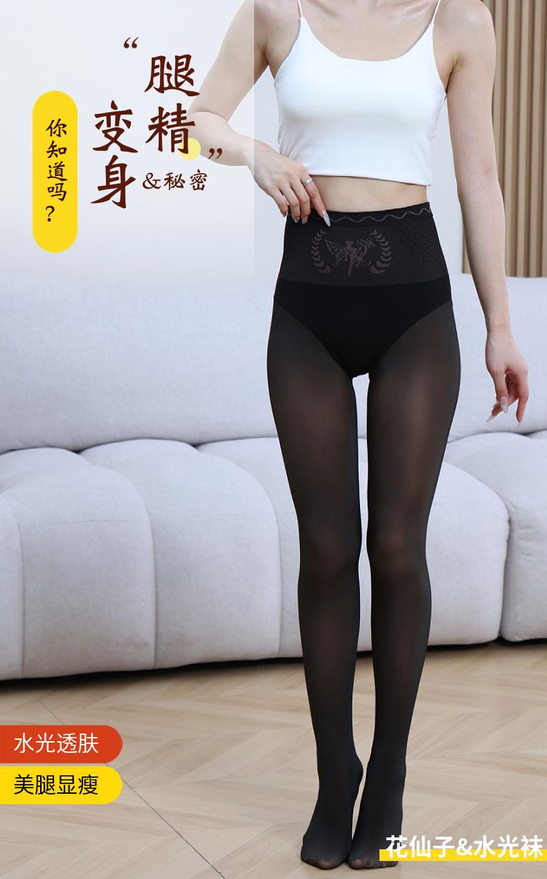 Calcetines de seda negra con diseño de hada de las flores, ligeros y gruesos, con forro polar, para otoño e invierno, de cintura alta, que realzan la cadera y teñir el vientre, con efecto piel.