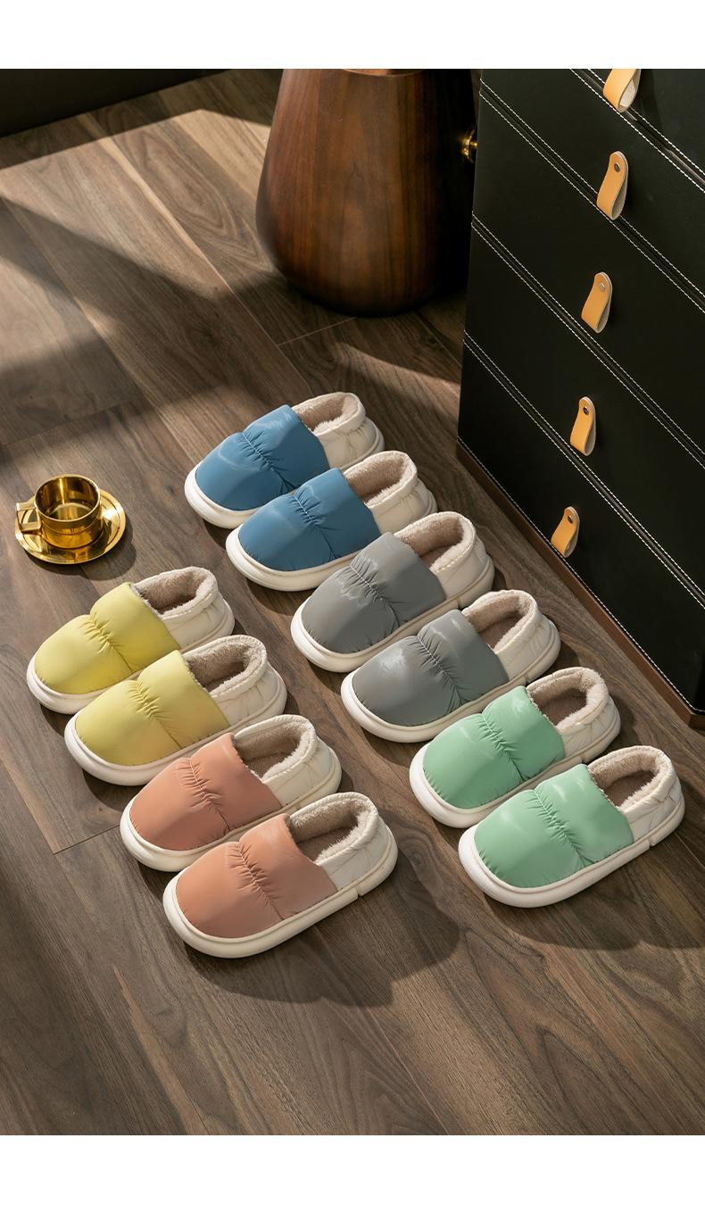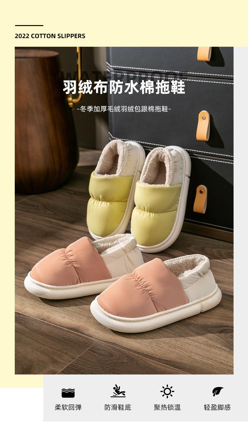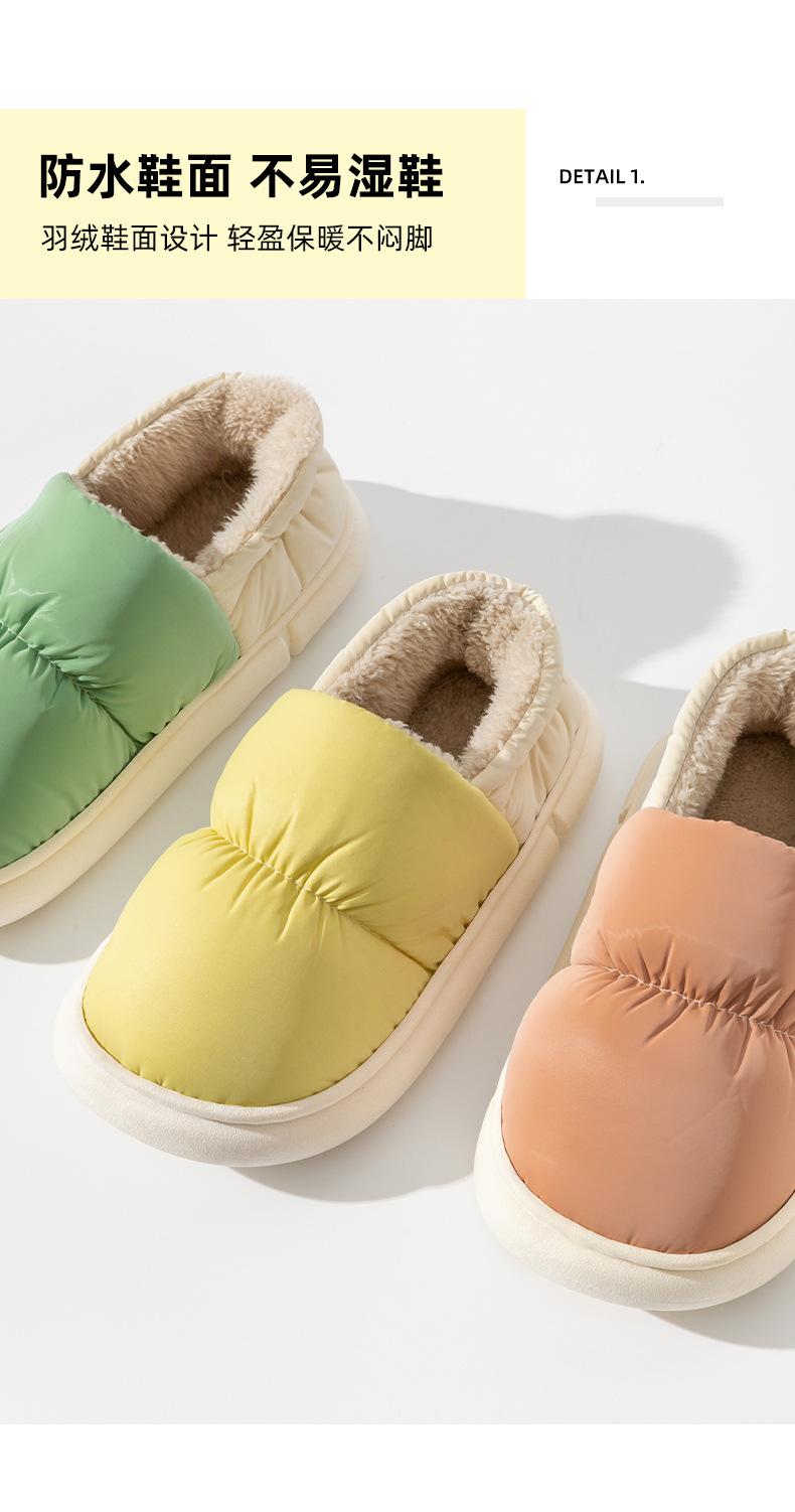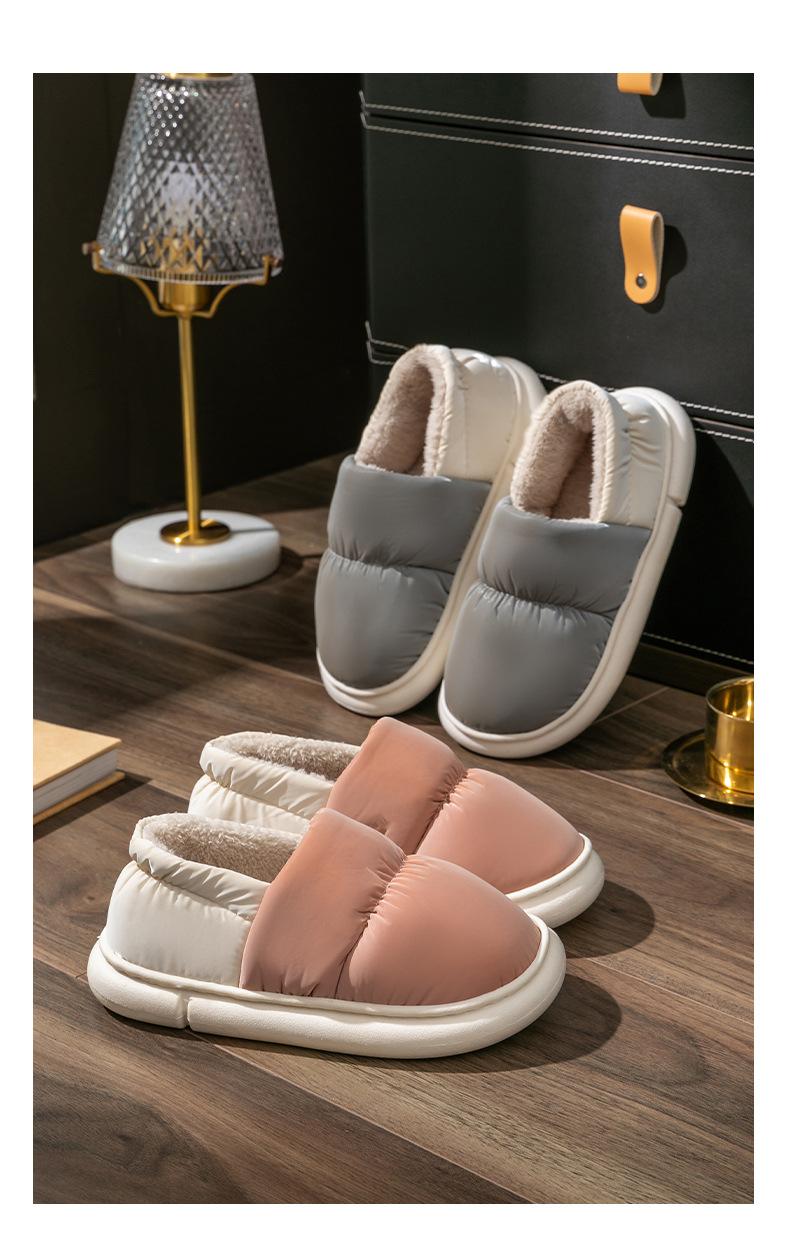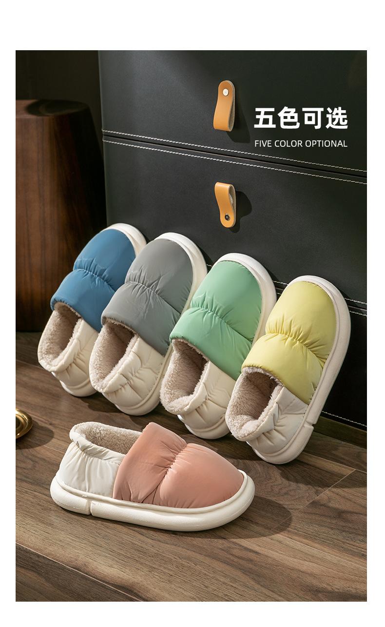 Pantuflas de algodón y plumón para hombre, de invierno, para interior, cálidas, con suela gruesa, impermeables, para mujer