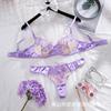 Lencería Sexy de Venta Caliente de Amazon Transfronteriza Tentación Sexy Encaje Íntimos de Tres Puntos Conjunto de Dos Piezas