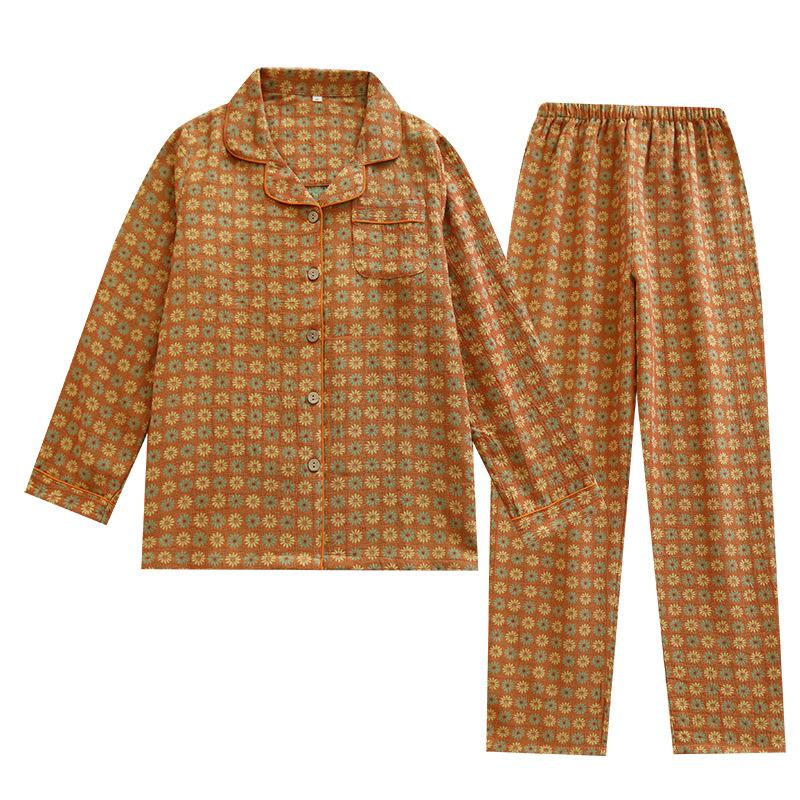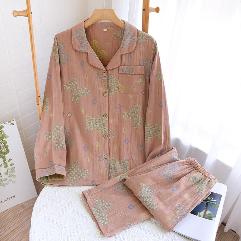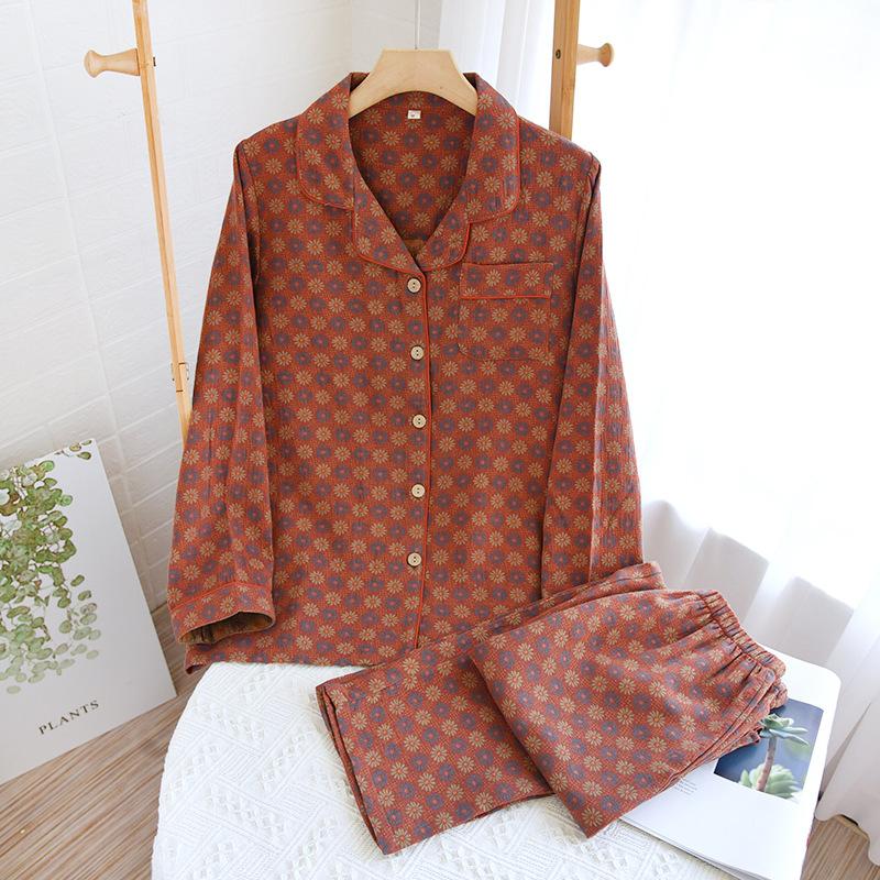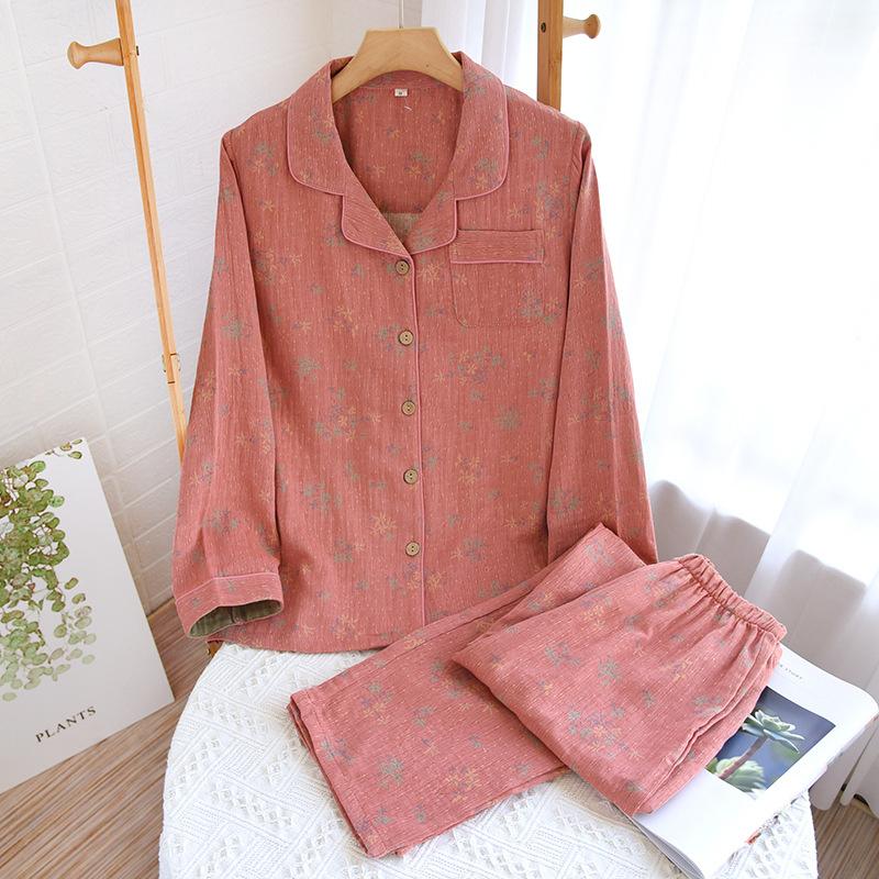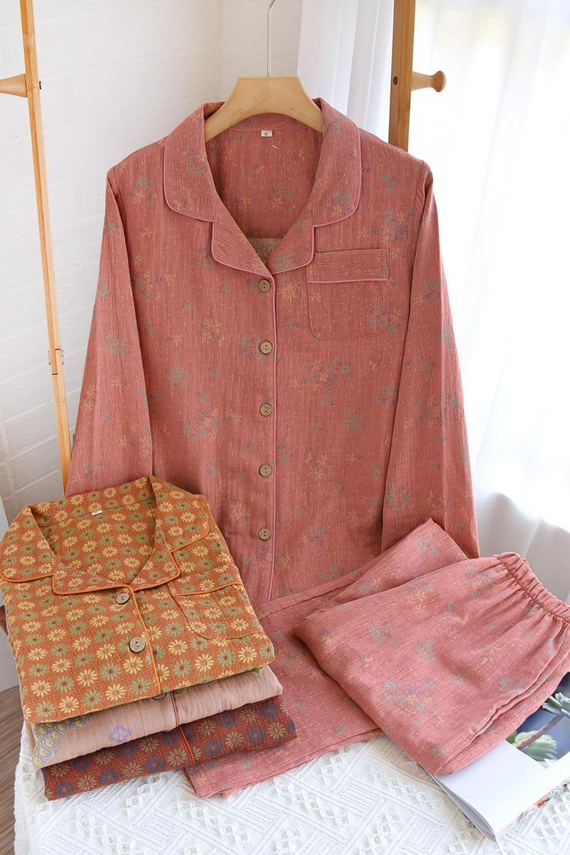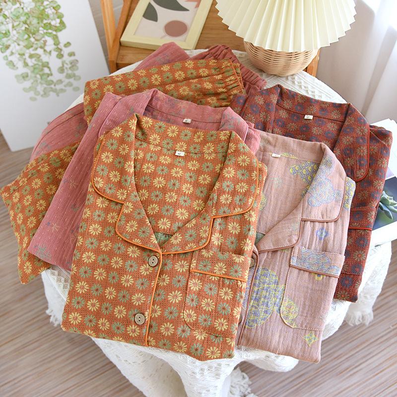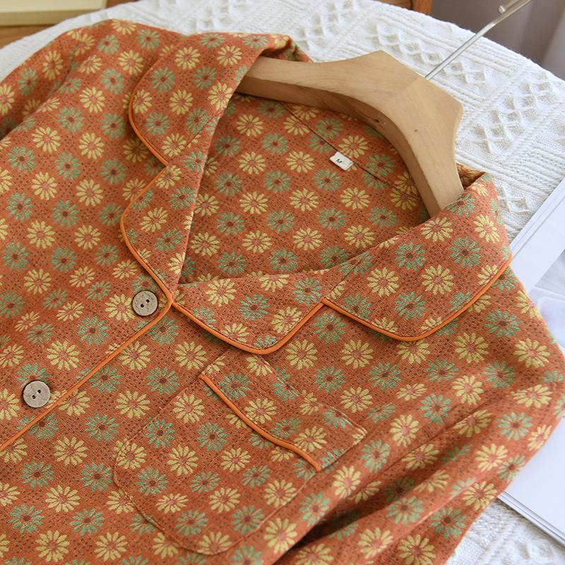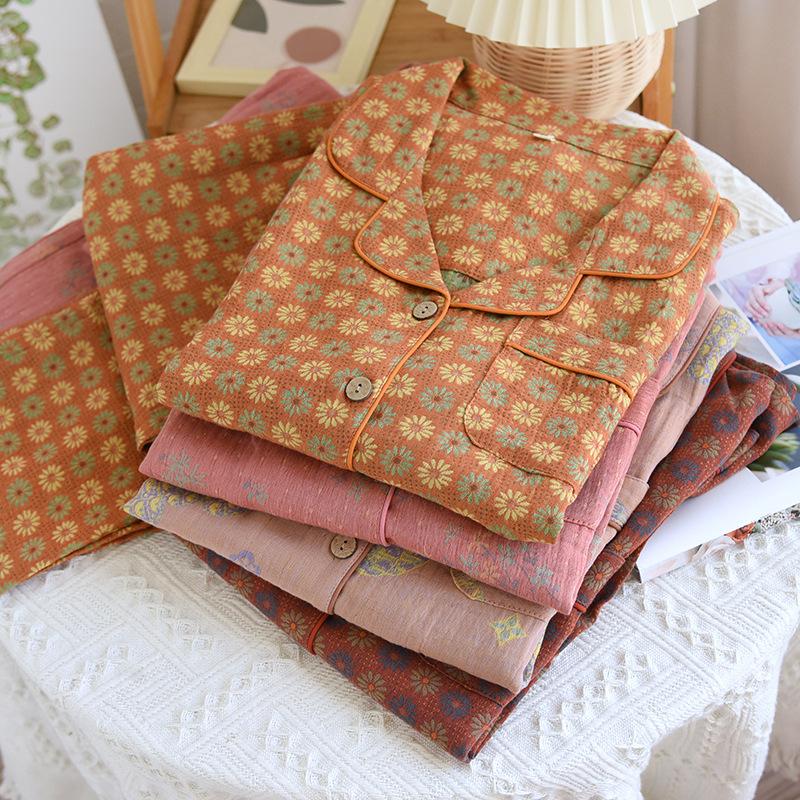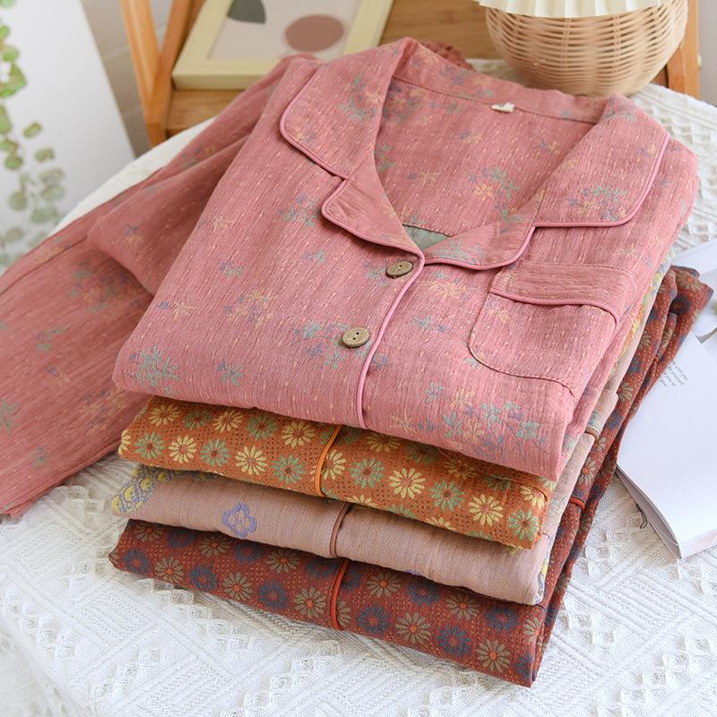 Conjunto de pijama de verano para mujer, de manga larga y jacquard de doble cara, de algodón puro, nuevo, fino, para el hogar, estilo vintage, holgado.