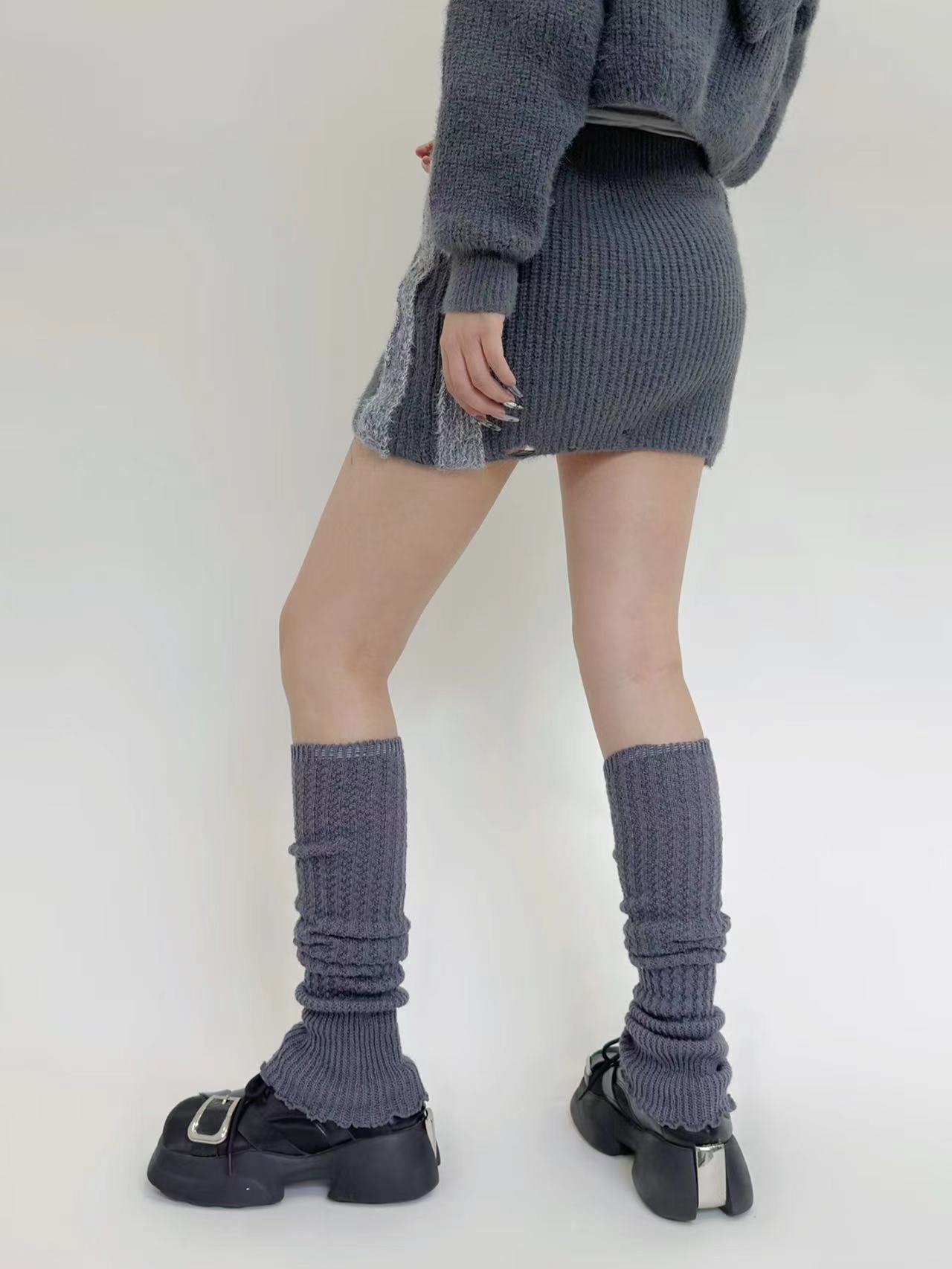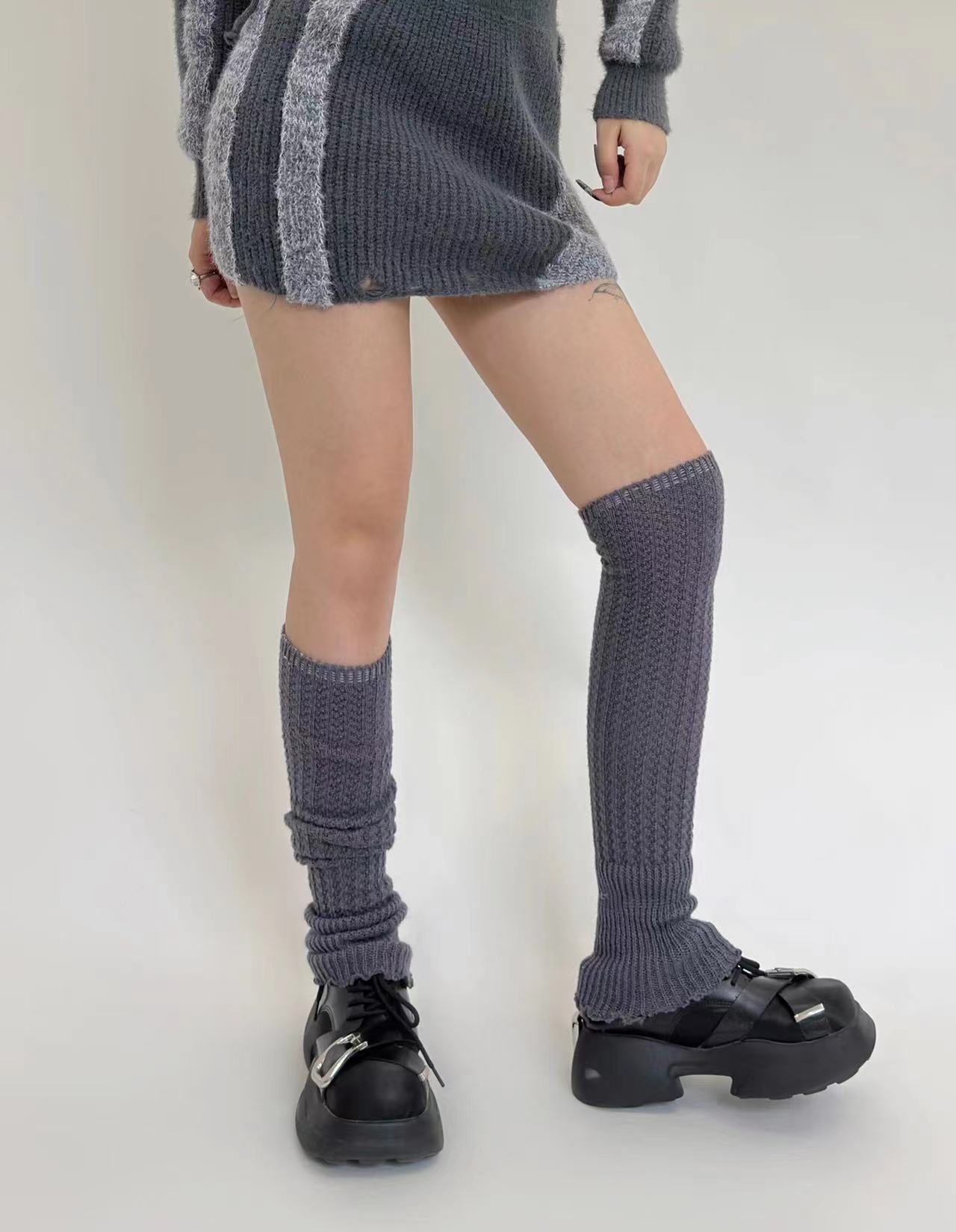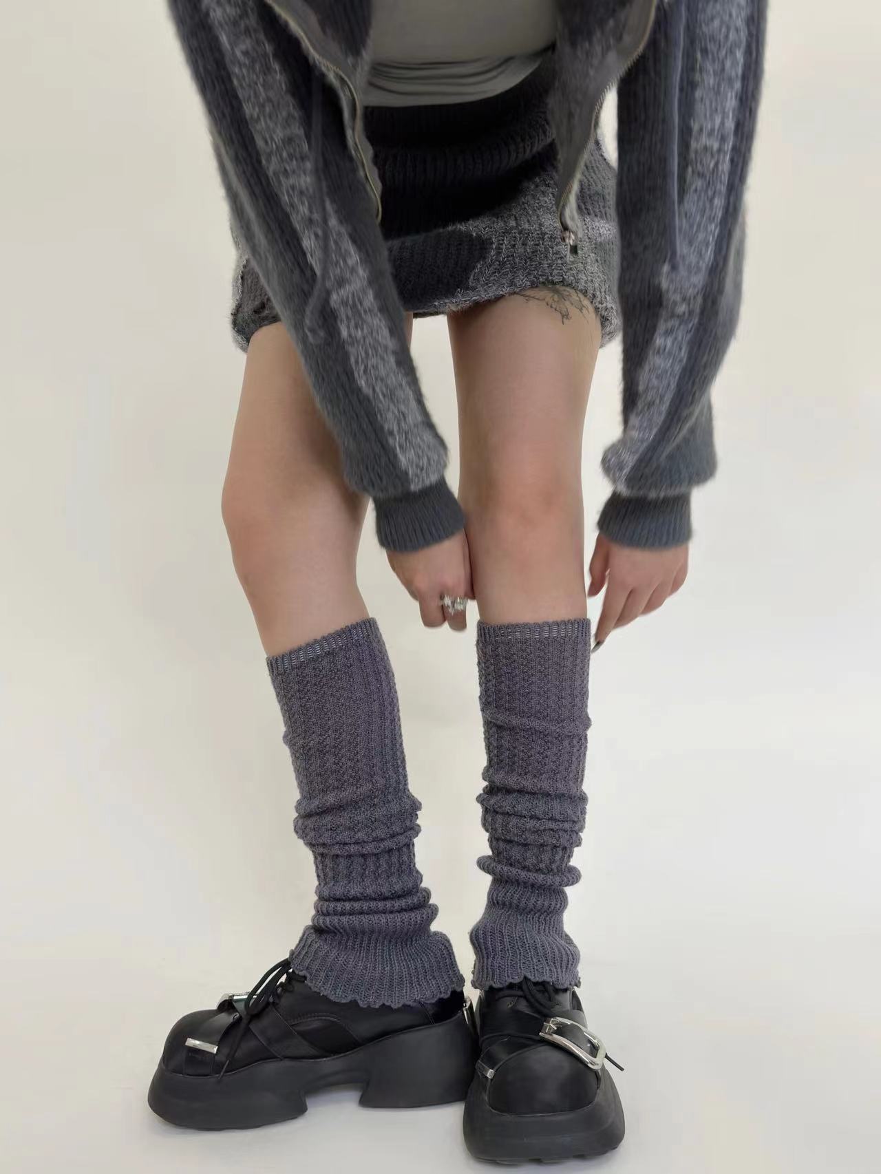Otoño e invierno Nuevo alargado espiga de trigo oreja de madera funda para pierna calcetines de pelo de lana tejidos de punto calcetines hasta la pantorrilla para mujer