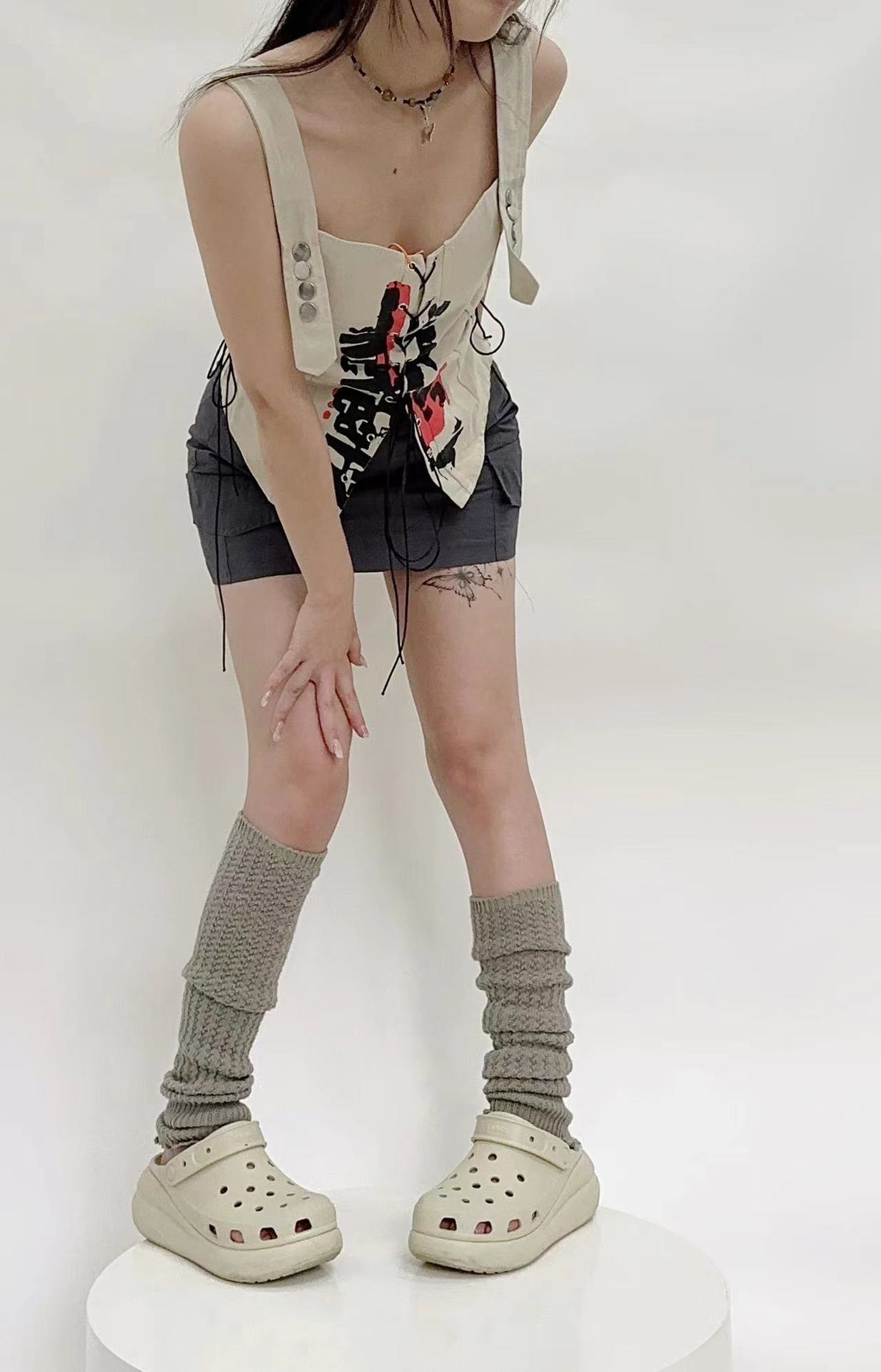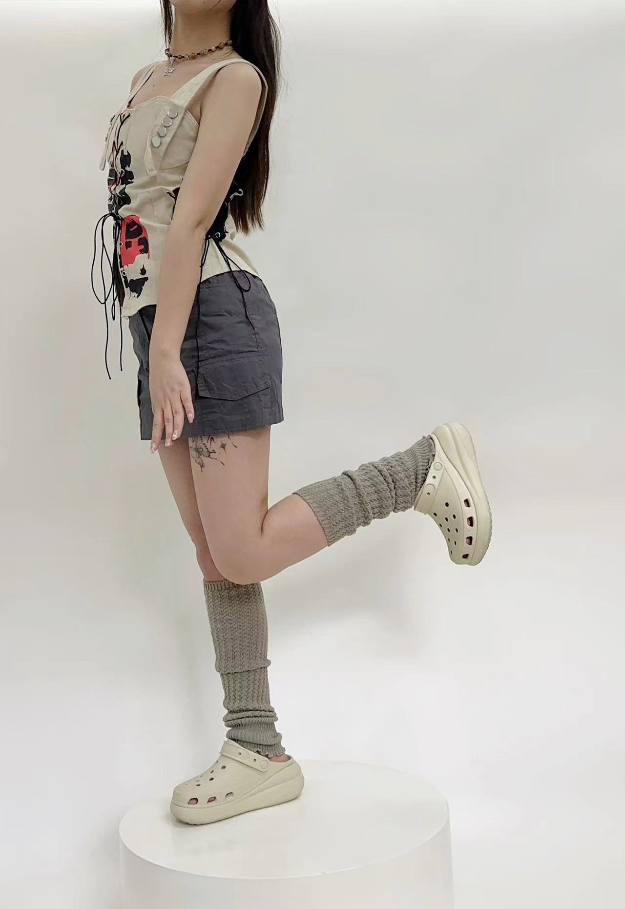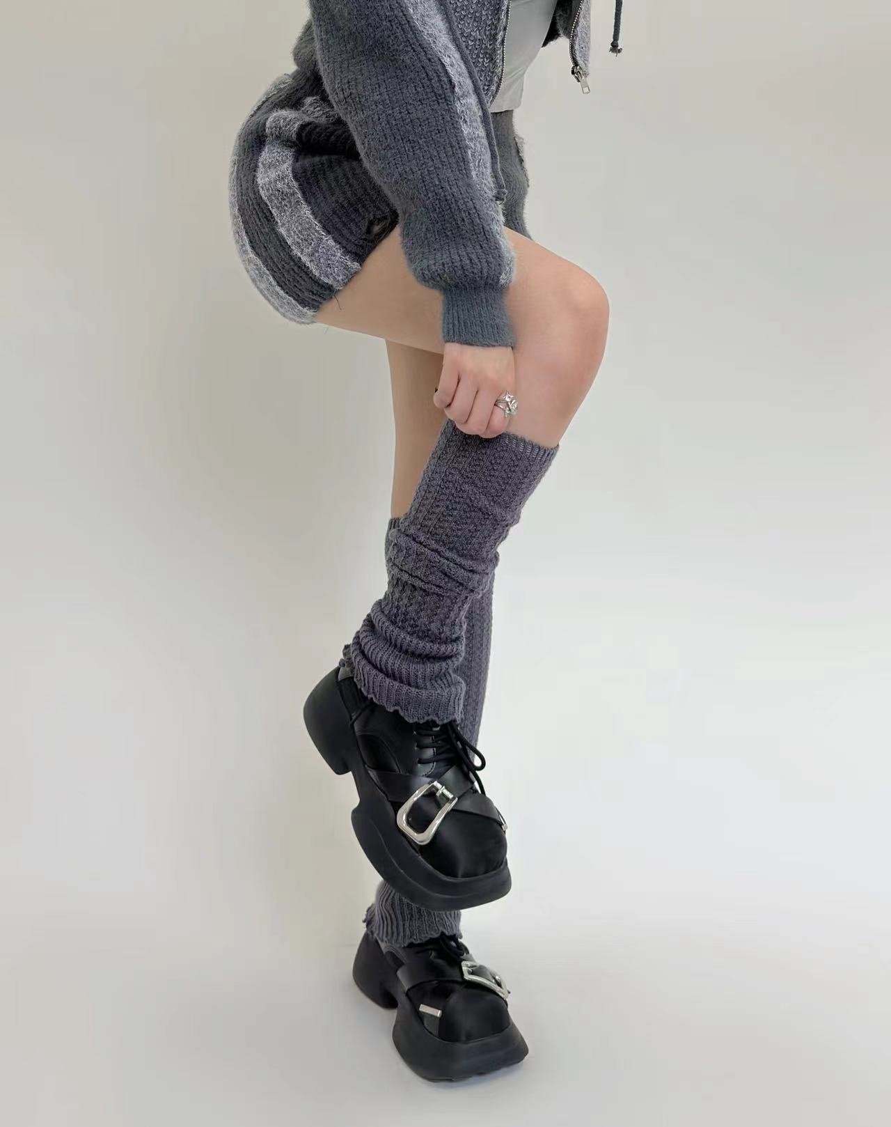 Otoño e invierno Nuevo alargado espiga de trigo oreja de madera funda para pierna calcetines de pelo de lana tejidos de punto calcetines hasta la pantorrilla para mujer