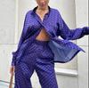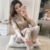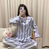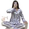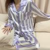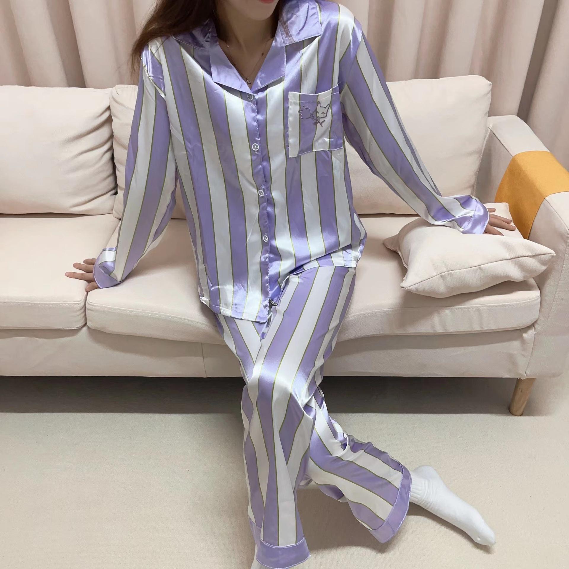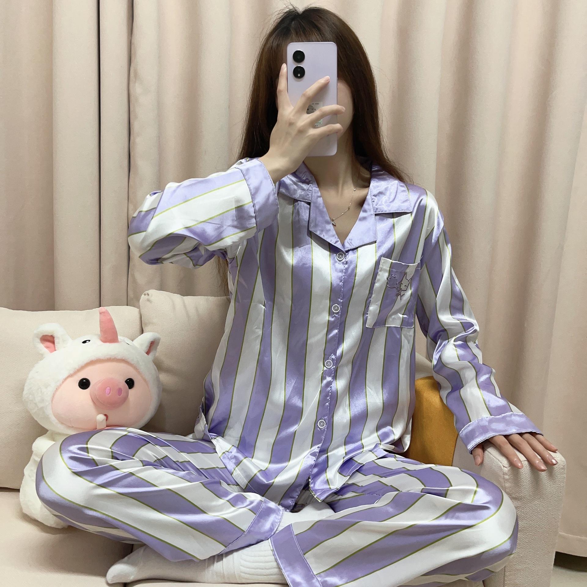 Pijamas para Mujer 2025 Nuevo Seda Imitación Primavera y Otoño Morado Rayado Manga Larga Verano Delgado Conjunto Ropa de Casa Venta al por Mayor