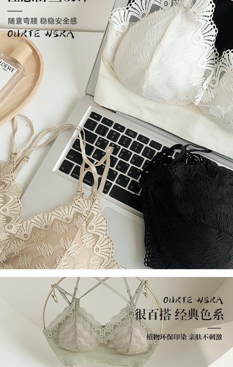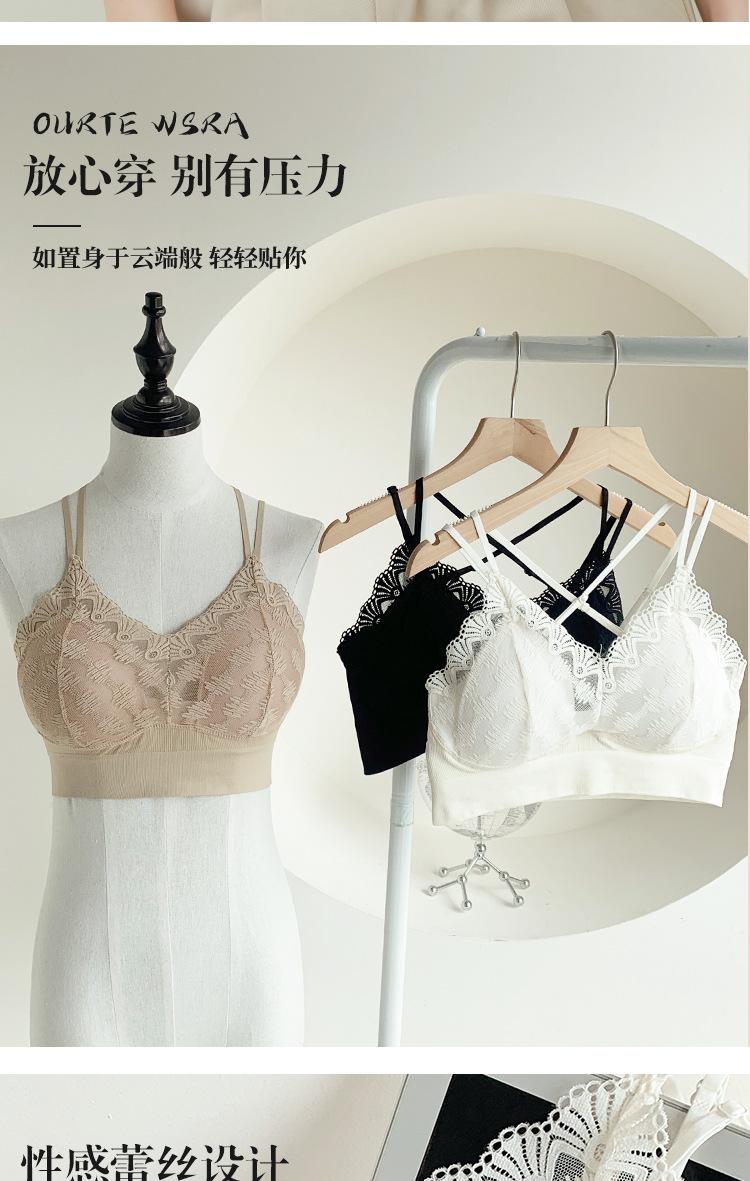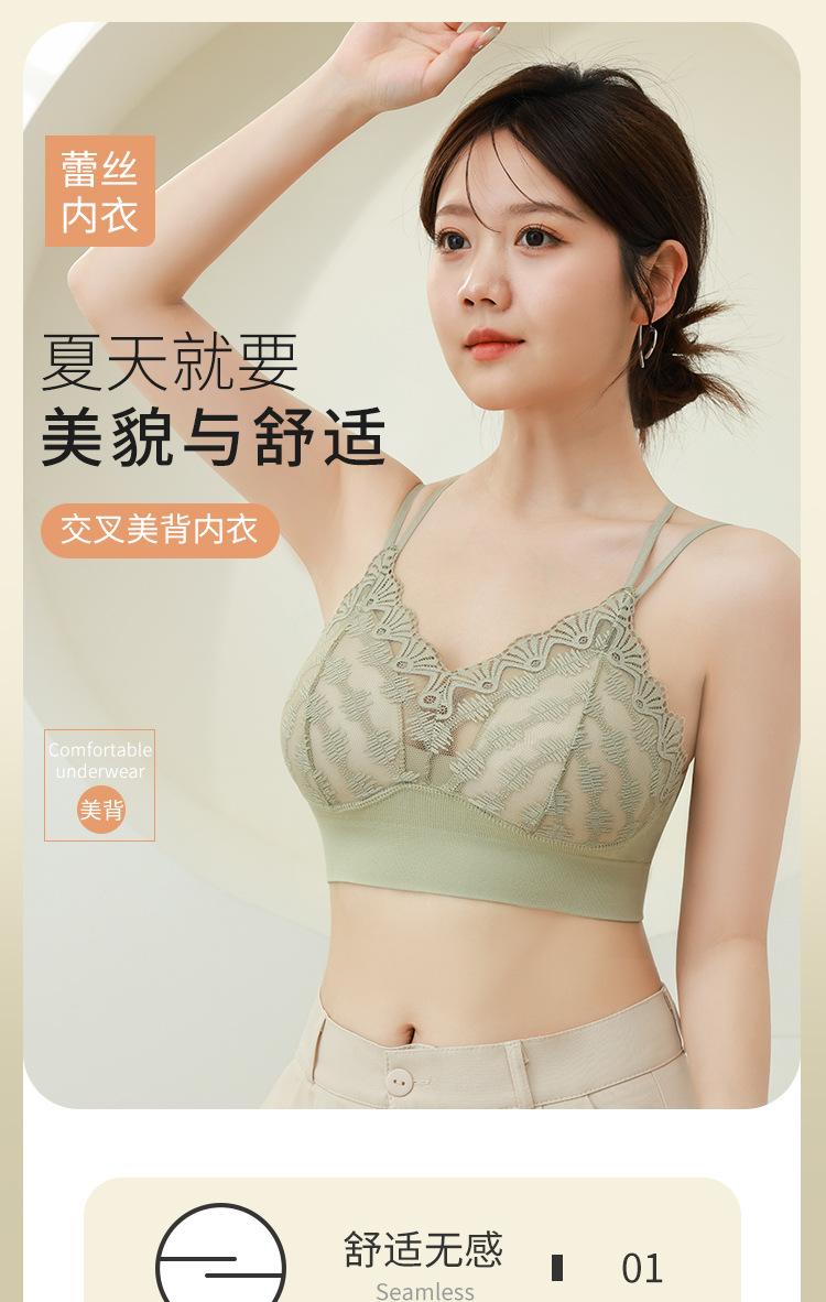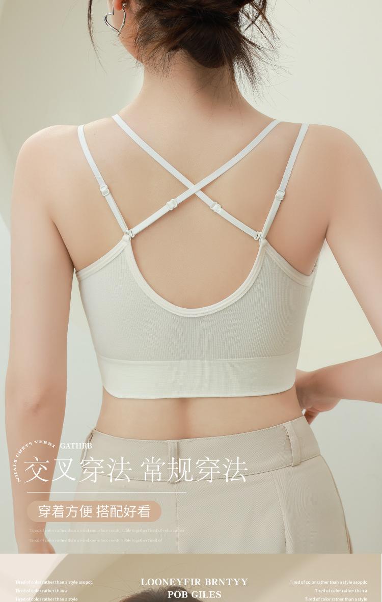 Nueva ropa interior de belleza para la espalda, nuevo sujetador de encaje cruzado con tirantes para mujer, interior anti-correr, copa fija, almohadilla para el pecho, base sin tirantes