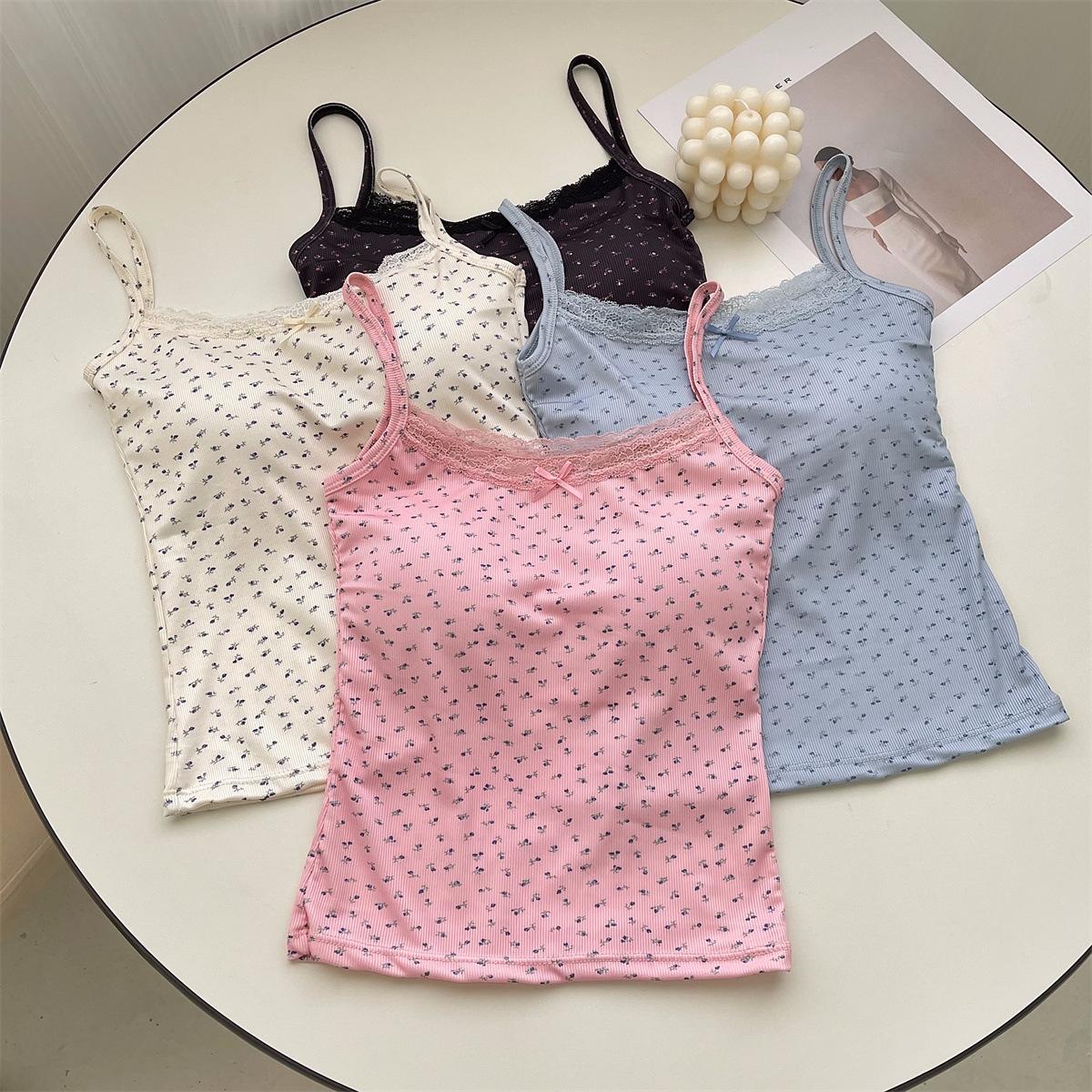 Camisola de encaje esmeralda sexy caliente para mujer con copa fija, ropa interior delgada para usar debajo, lote