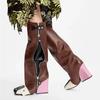 Botas de mujer de talla grande con plataforma impermeable y puntiaguda de comercio exterior de invierno 2024, tacón grueso, tacón súper alto, hebilla de remache de metal pesado