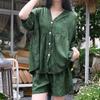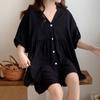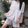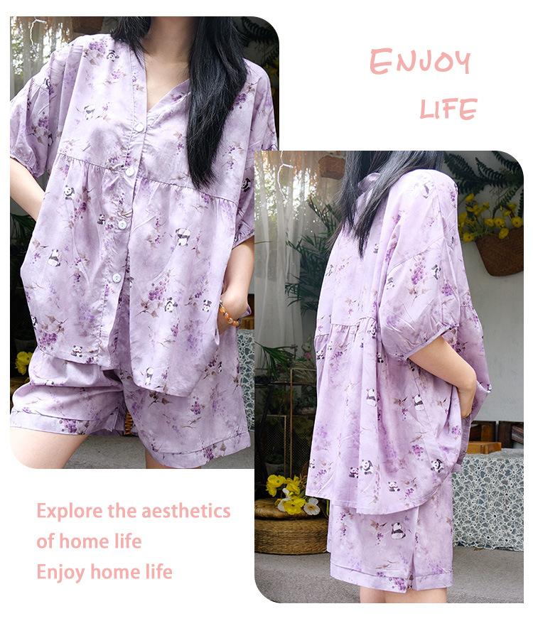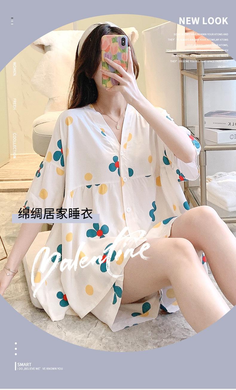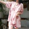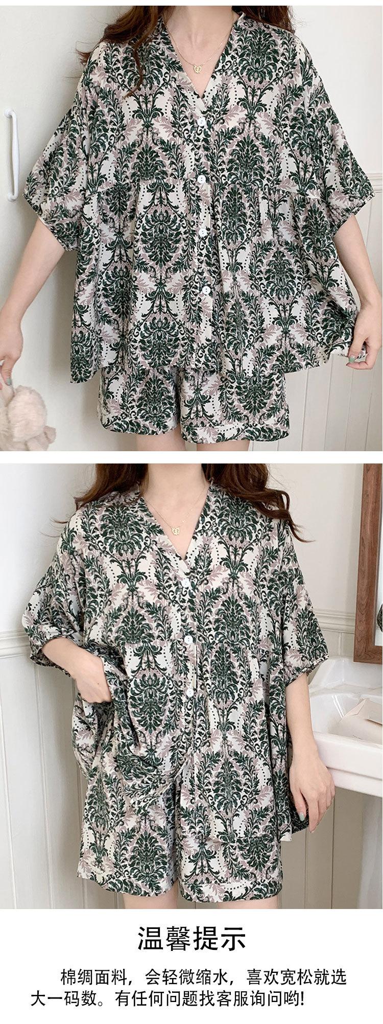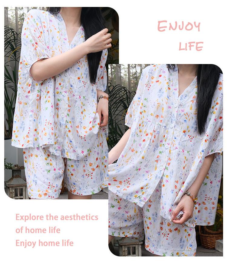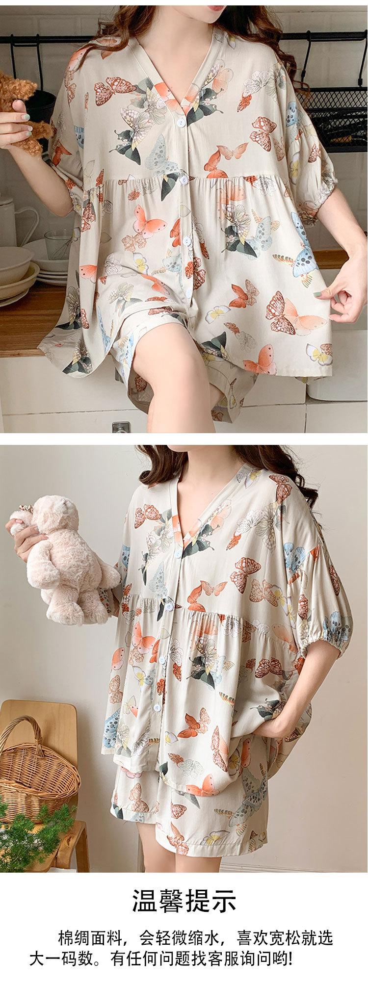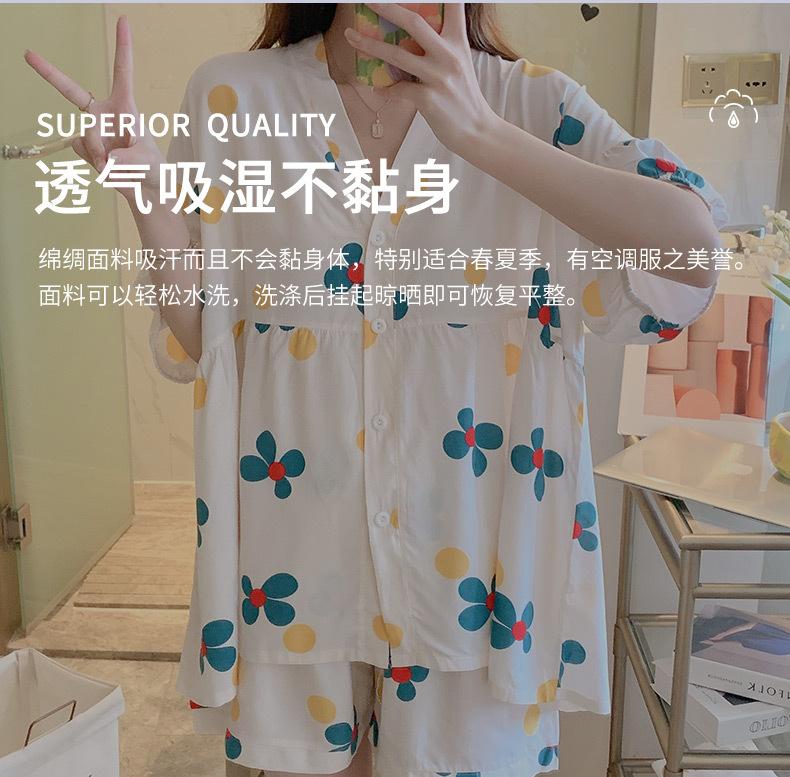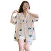 Pijama de seda de algodón para mujer, de verano, fino, de manga corta, tipo cárdigan, estilo fresco, de algodón artificial, ropa de casa para verano