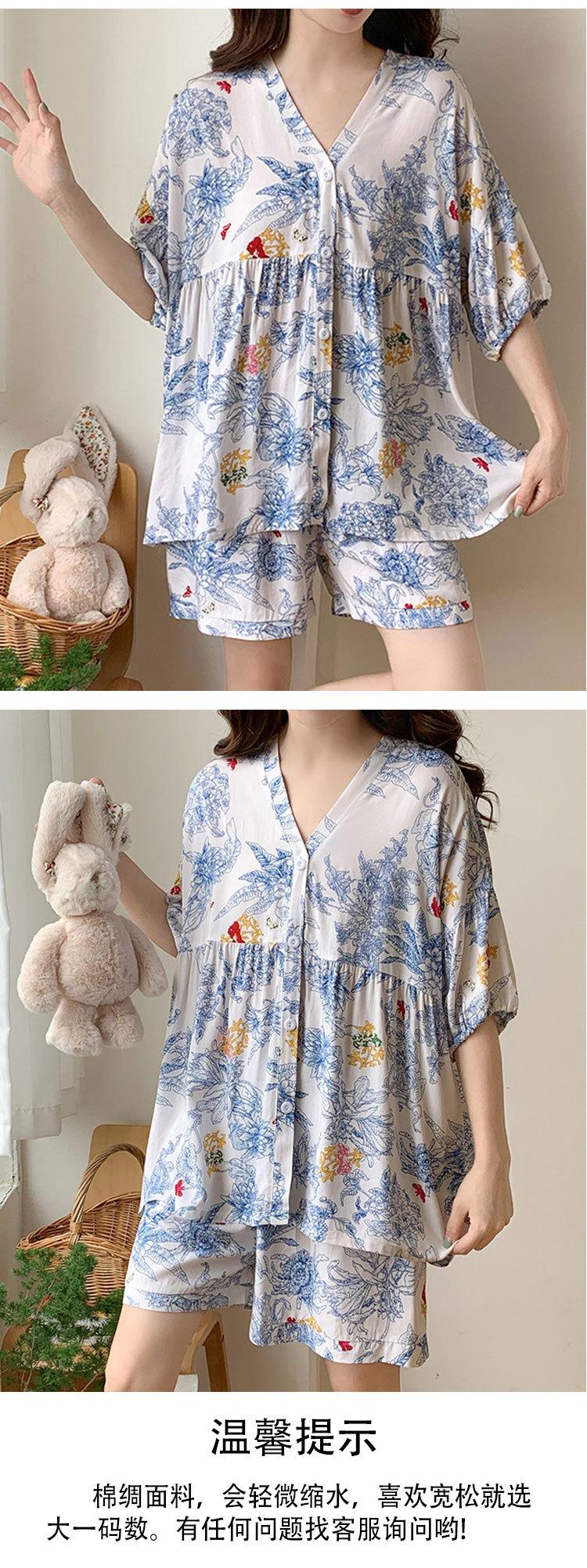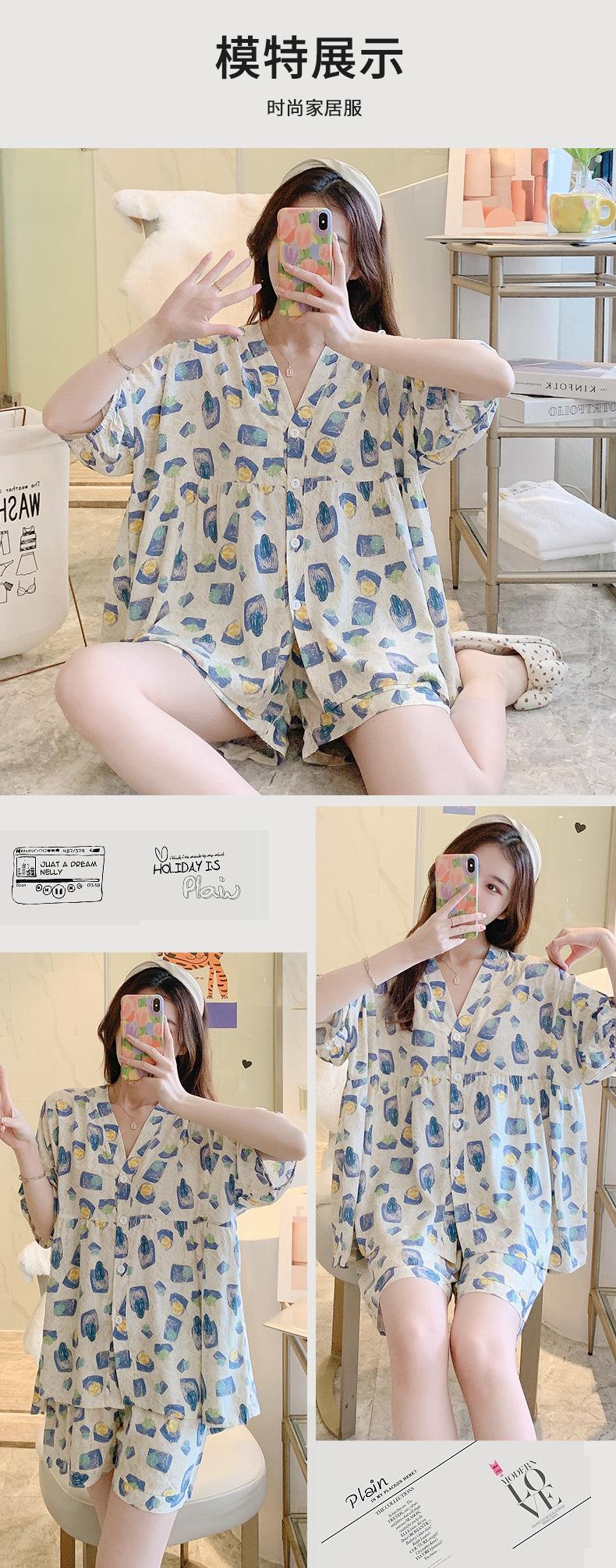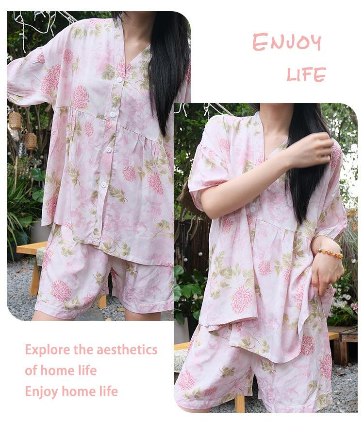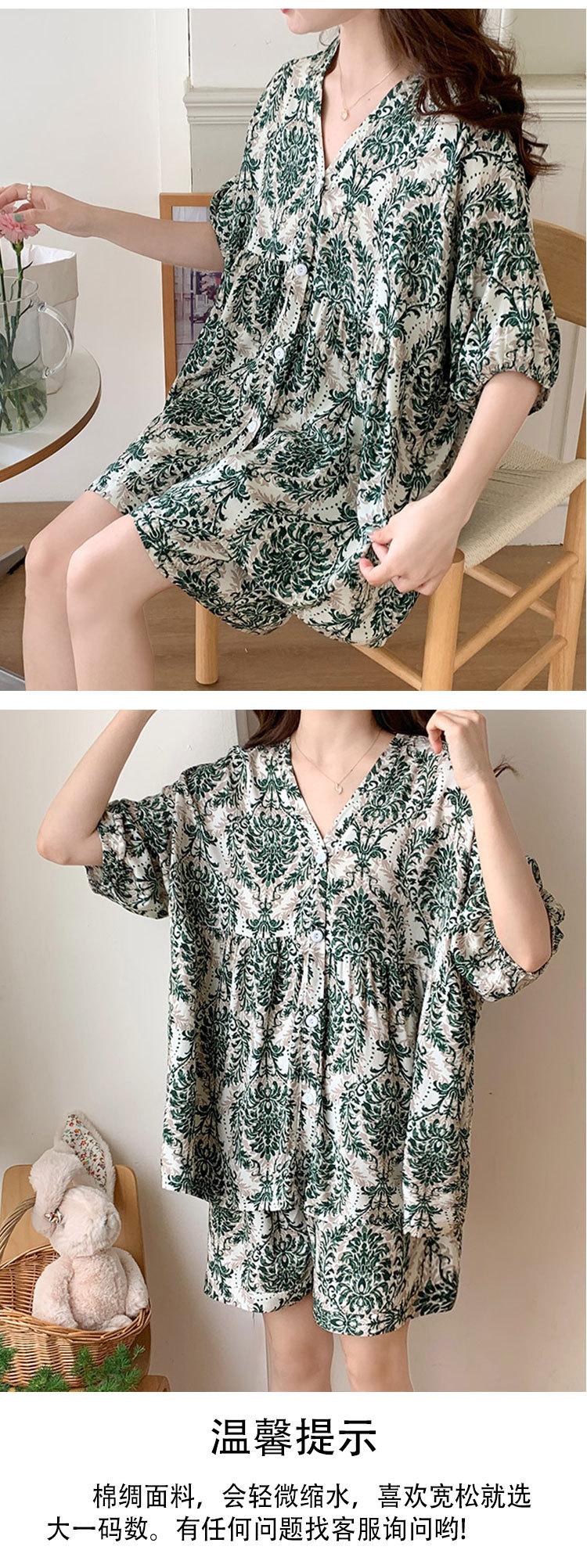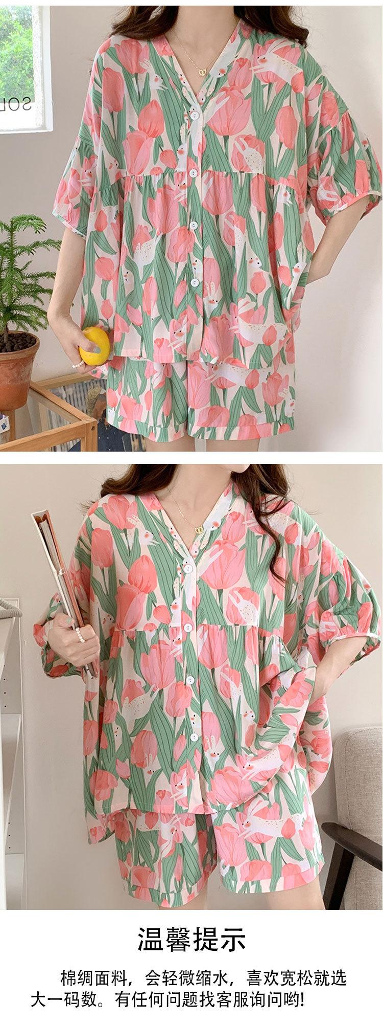 Pijama de seda de algodón para mujer, de verano, fino, de manga corta, tipo cárdigan, estilo fresco, de algodón artificial, ropa de casa para verano