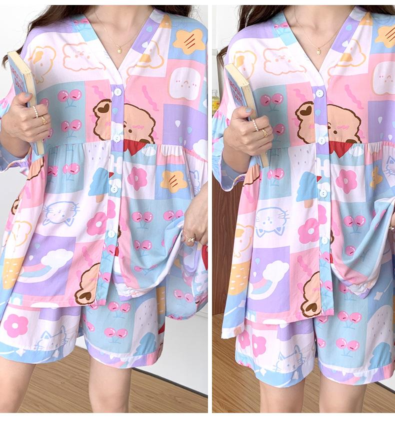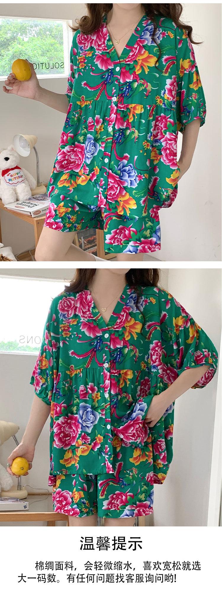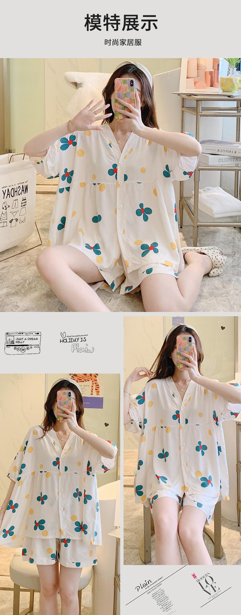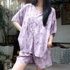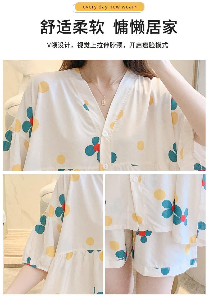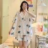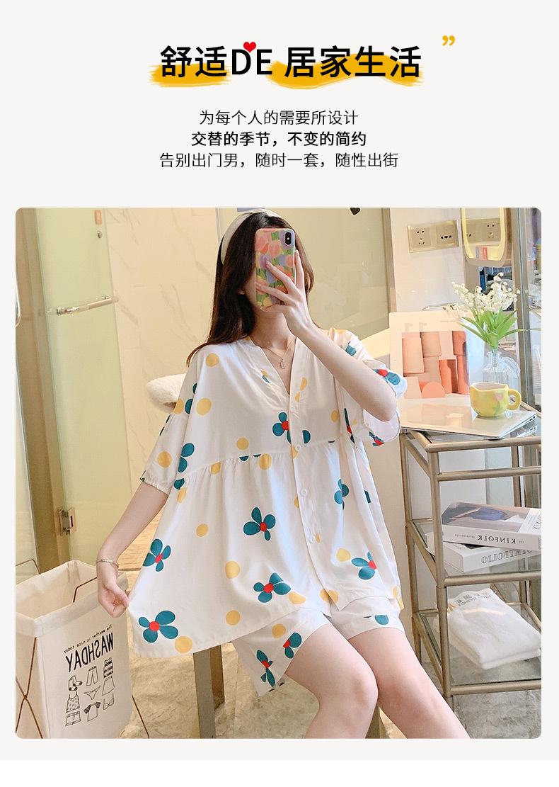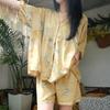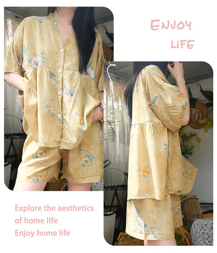 Pijama de seda de algodón para mujer, de verano, fino, de manga corta, tipo cárdigan, estilo fresco, de algodón artificial, ropa de casa para verano