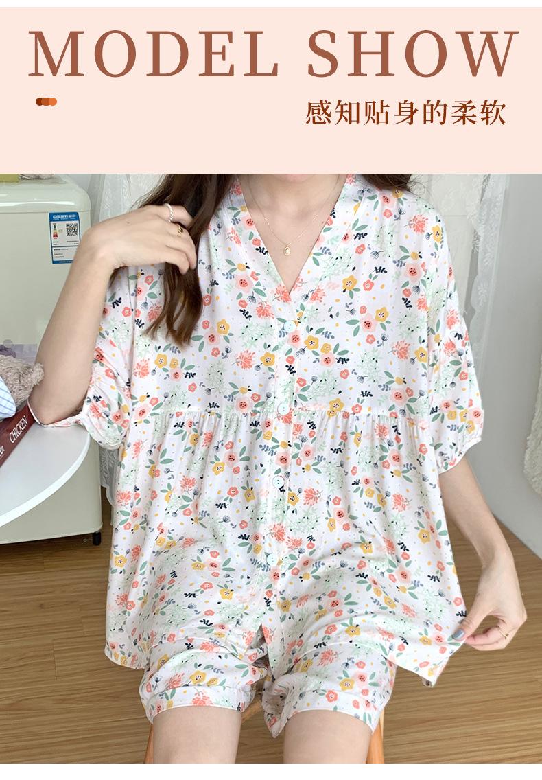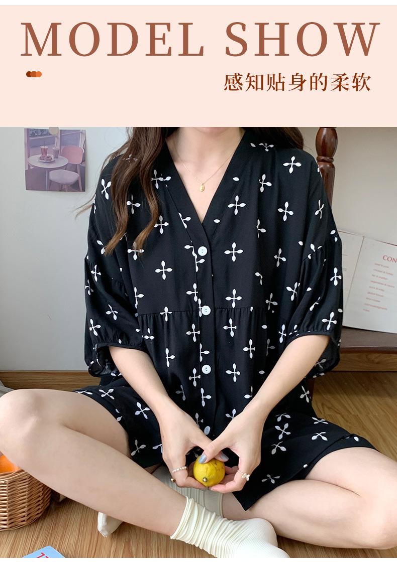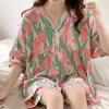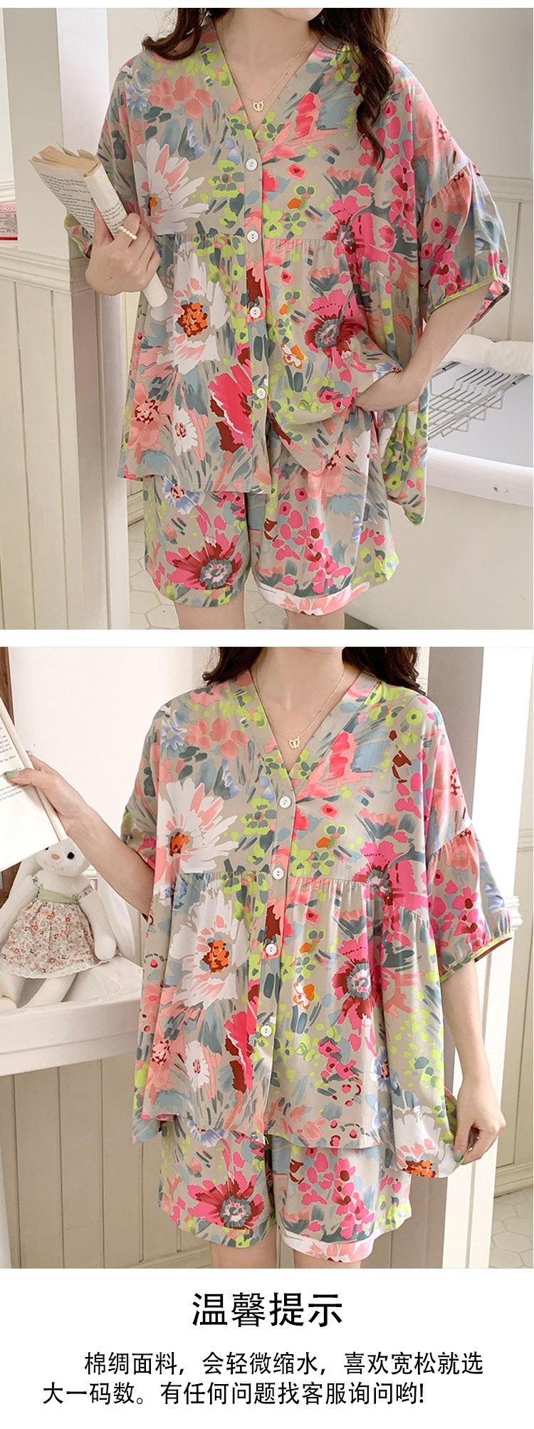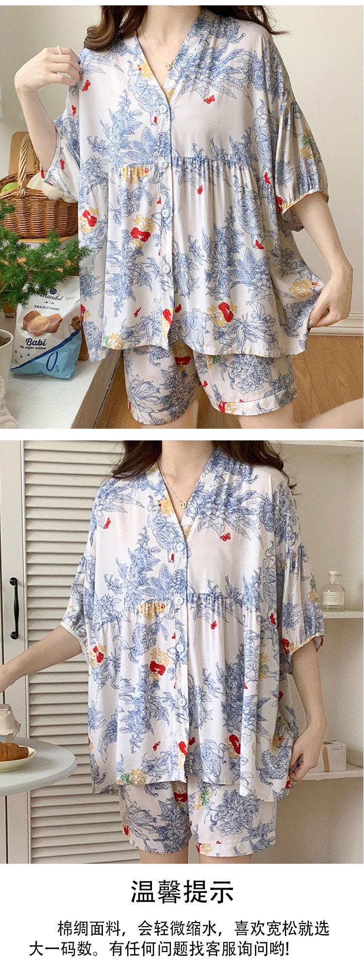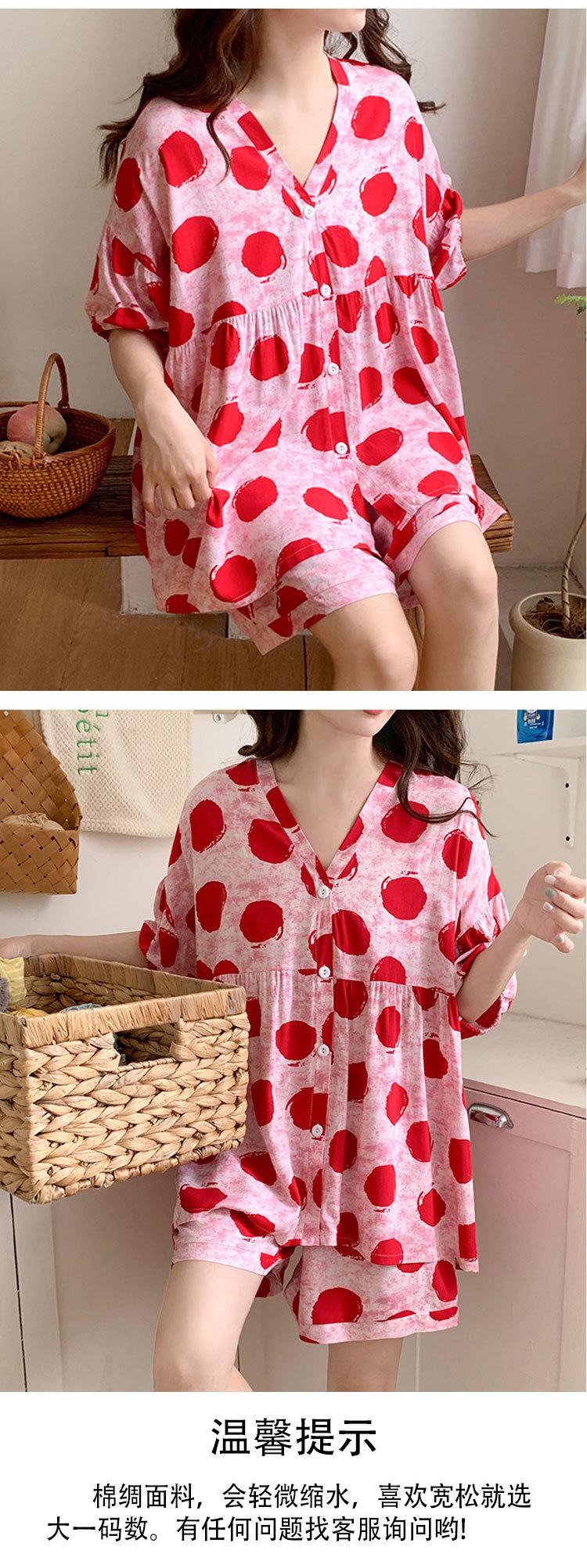 Pijama de seda de algodón para mujer, de verano, fino, de manga corta, tipo cárdigan, estilo fresco, de algodón artificial, ropa de casa para verano