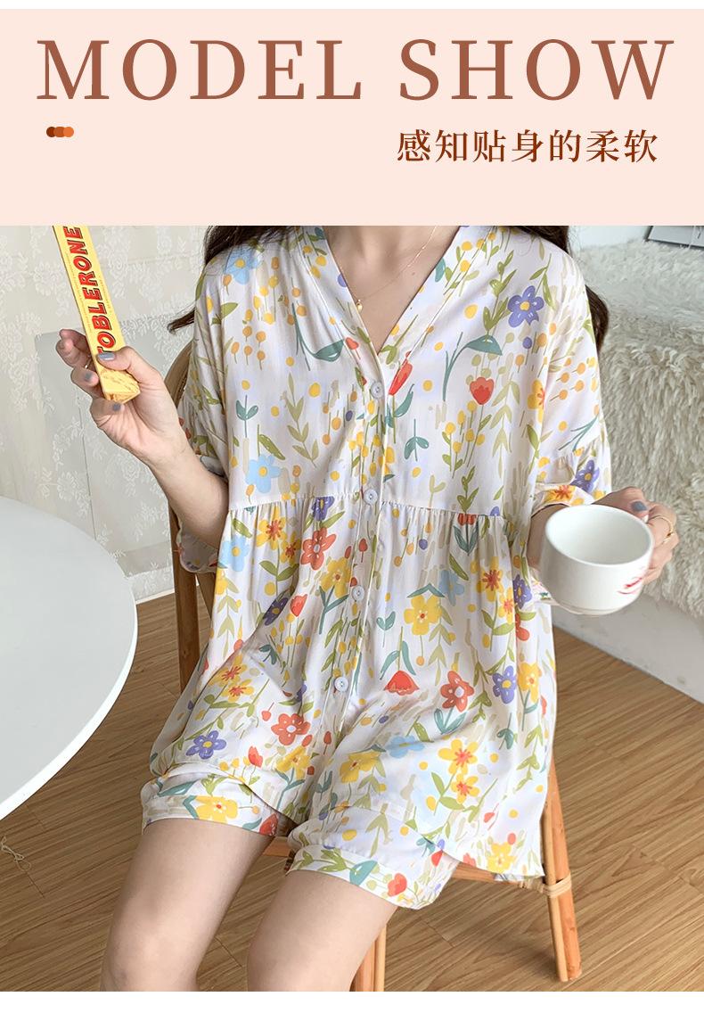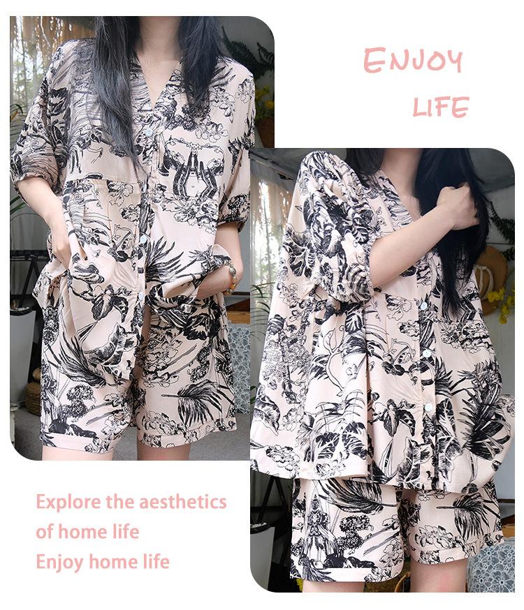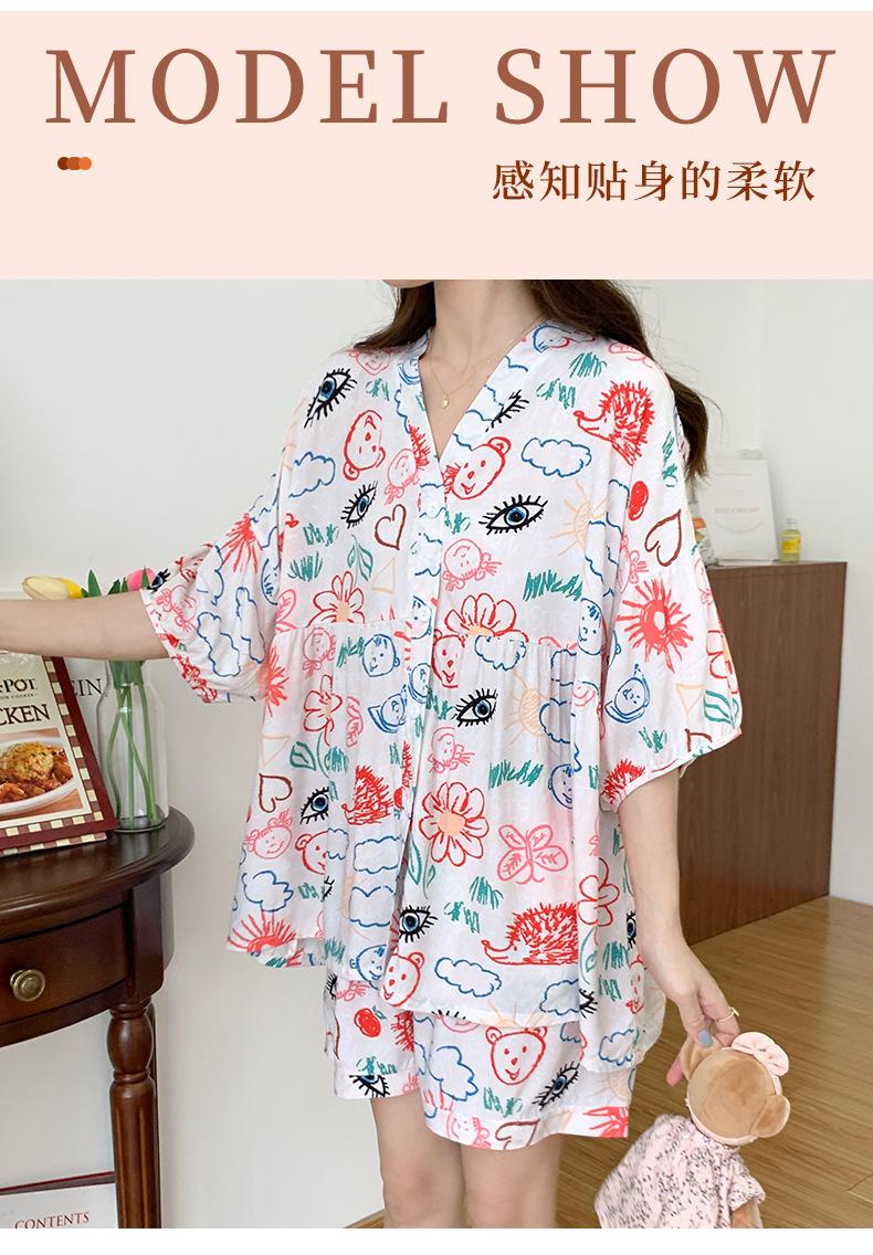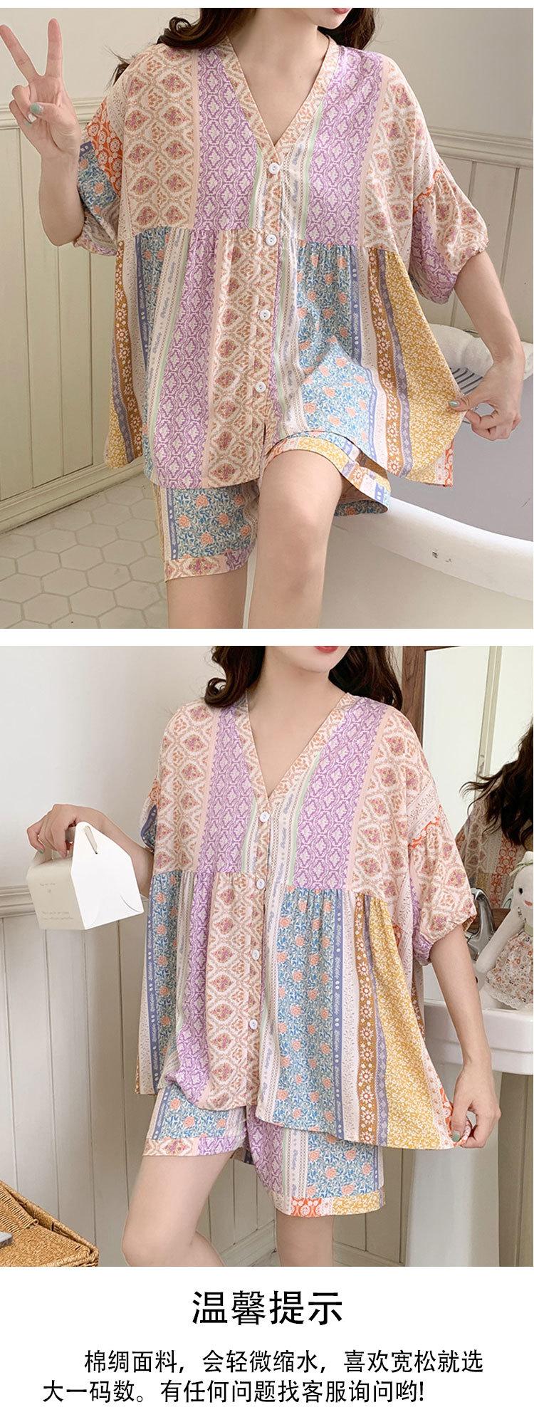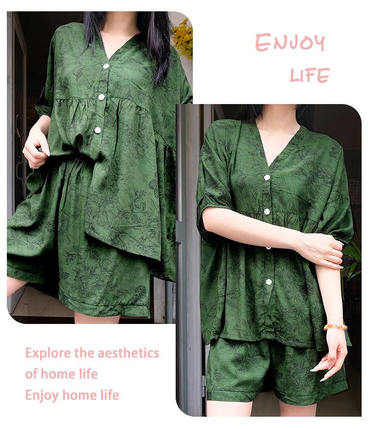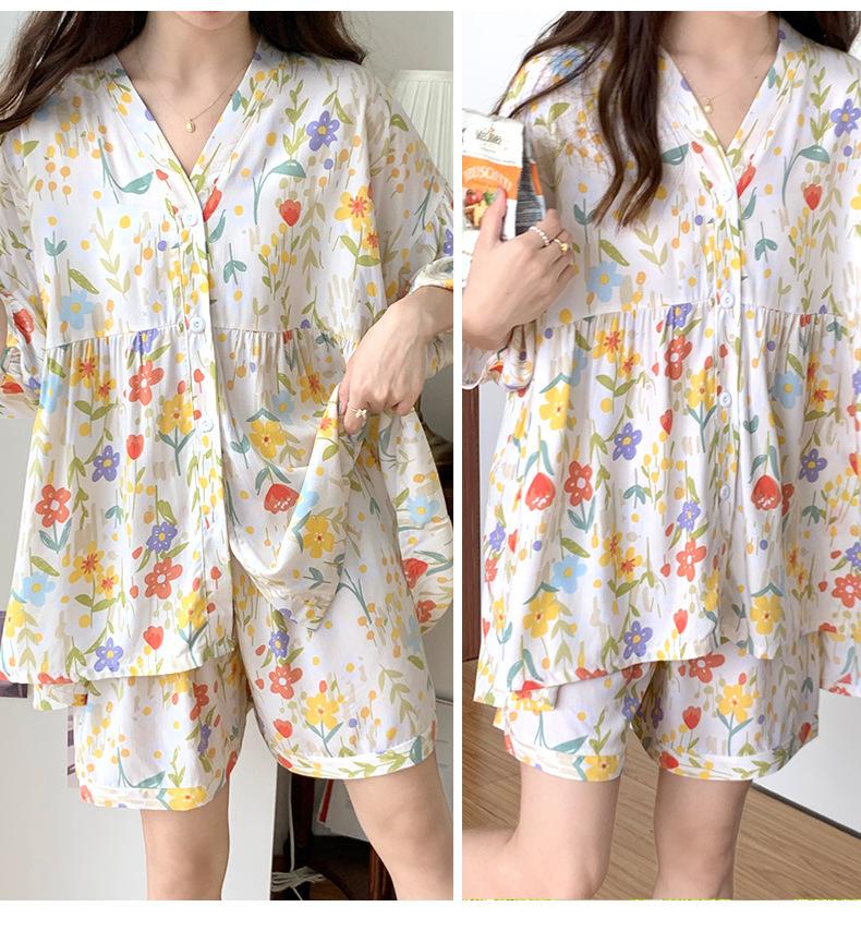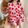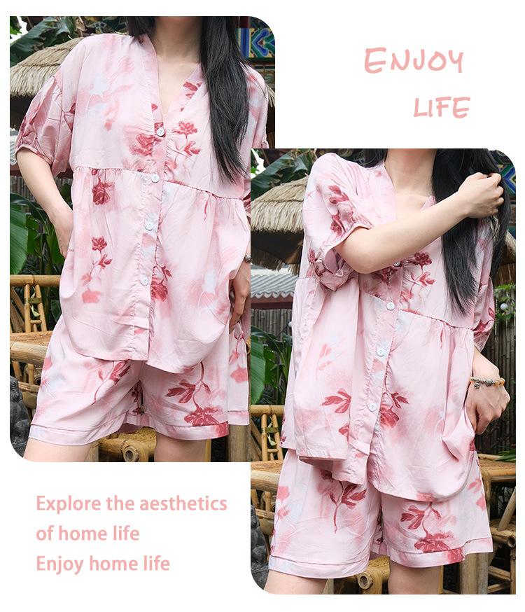 Pijama de seda de algodón para mujer, de verano, fino, de manga corta, tipo cárdigan, estilo fresco, de algodón artificial, ropa de casa para verano