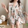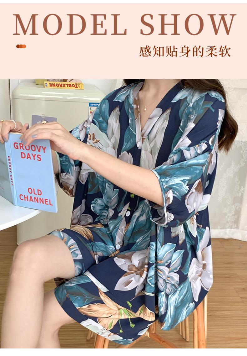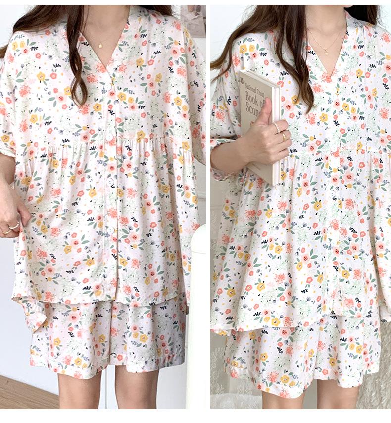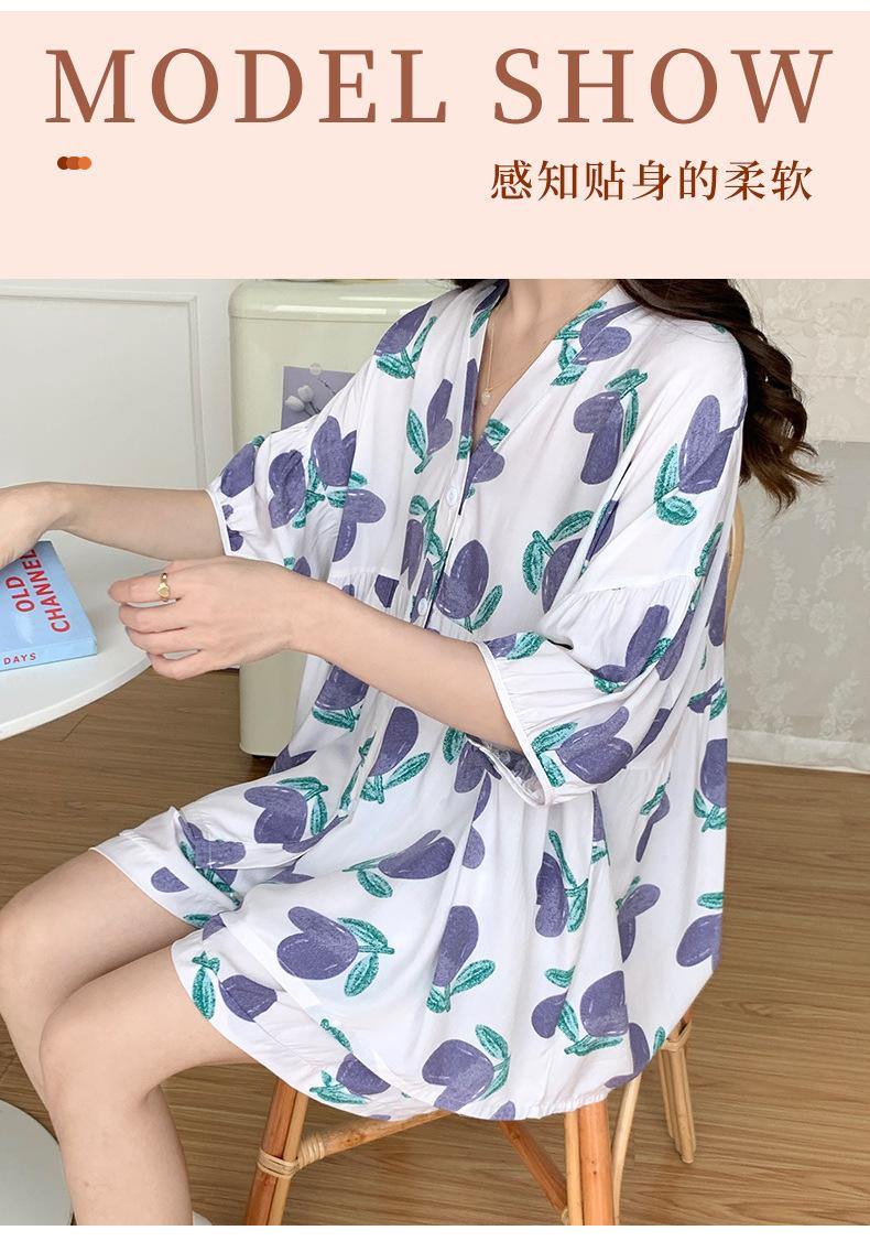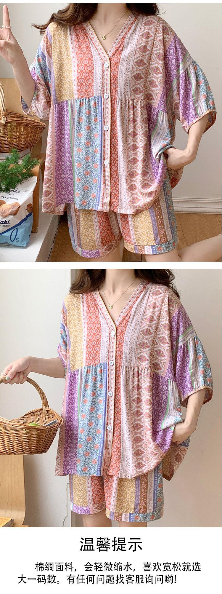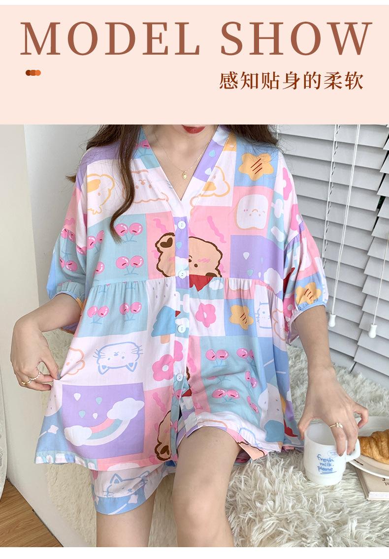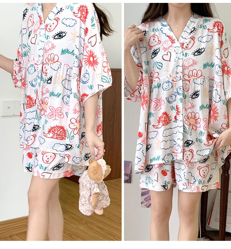 Pijama de seda de algodón para mujer, de verano, fino, de manga corta, tipo cárdigan, estilo fresco, de algodón artificial, ropa de casa para verano