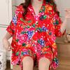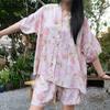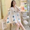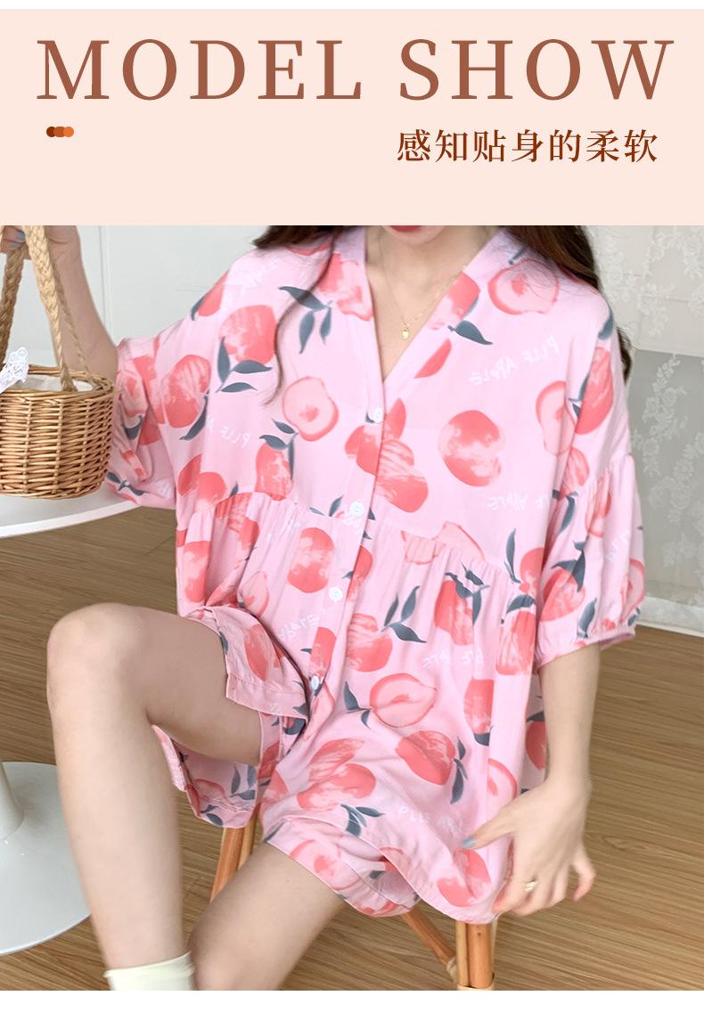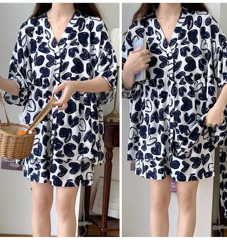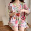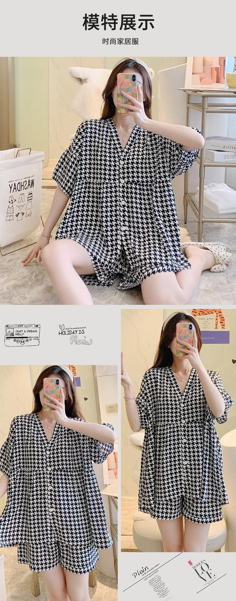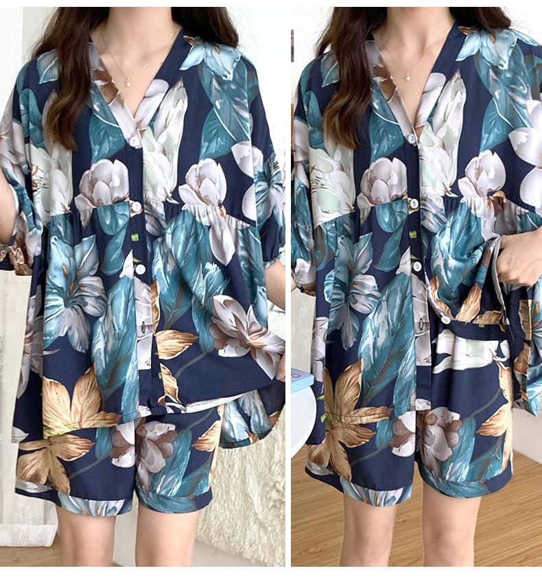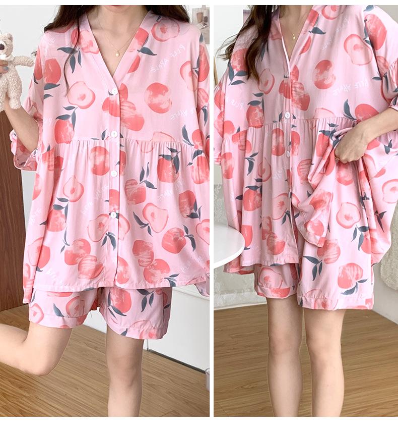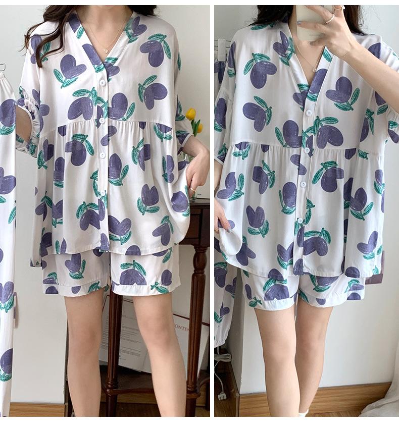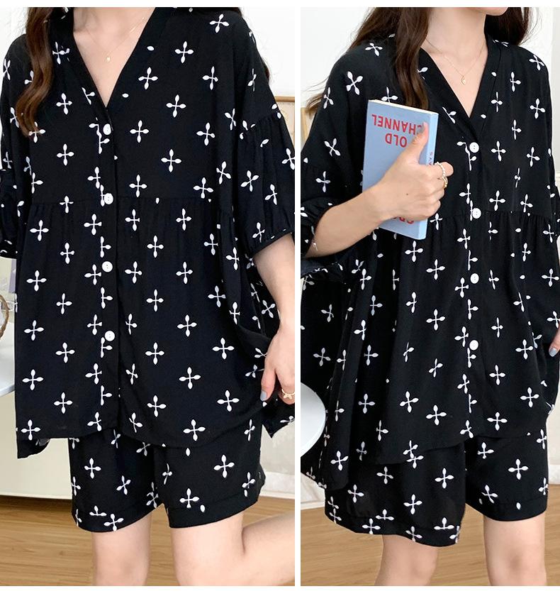 Pijama de seda de algodón para mujer, de verano, fino, de manga corta, tipo cárdigan, estilo fresco, de algodón artificial, ropa de casa para verano