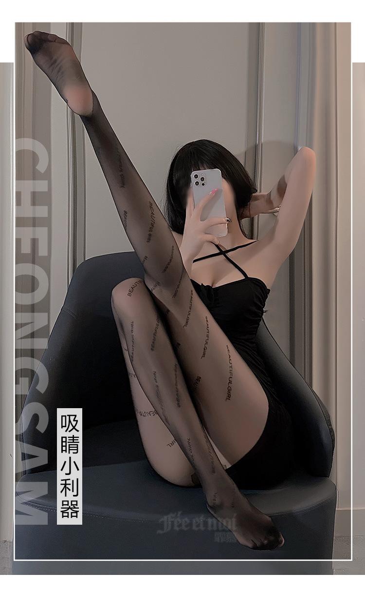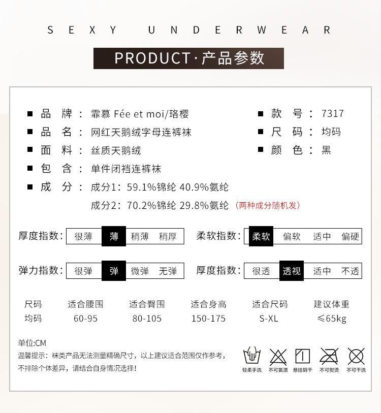 Feimu Lencería Sexy Celebridad de Internet Terciopelo Letra Medias Medias Sin Entrepierna Venta al por Mayor Mujeres Europeas y Americanas 7317