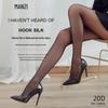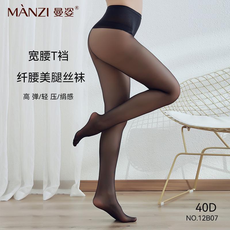 Meia-calça Manzi Pressão Leve 20/40D Nylon Cintura Baixa Borda Larga Controle Abdominal Nível T Invisível Fina Transparente Cor Sólida Meia Preta