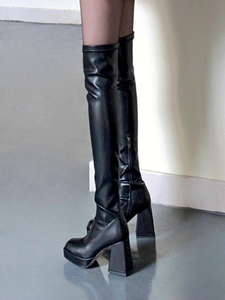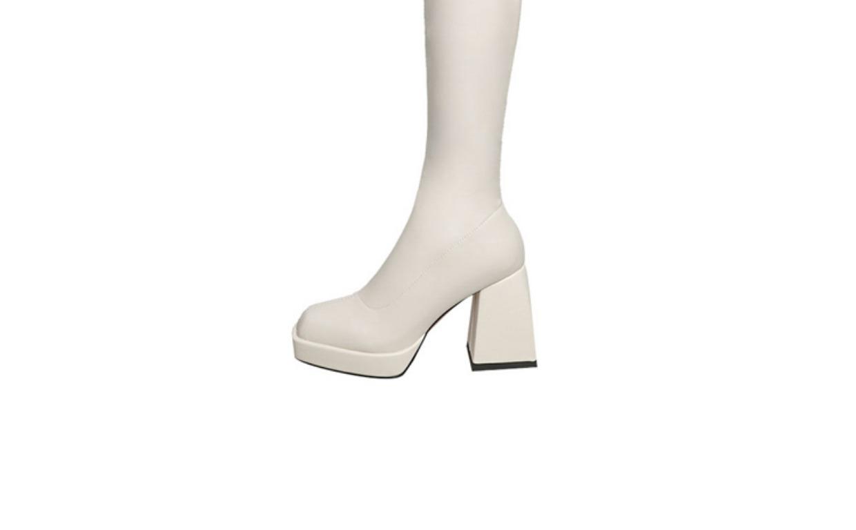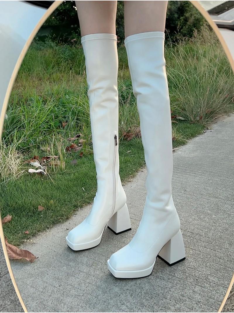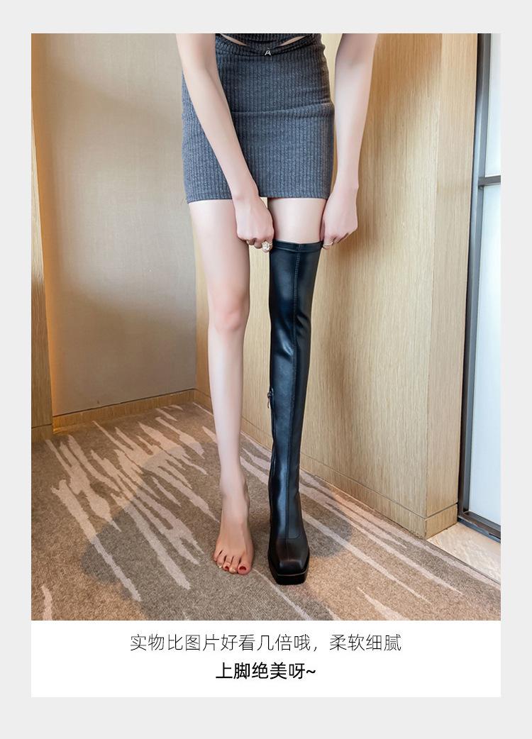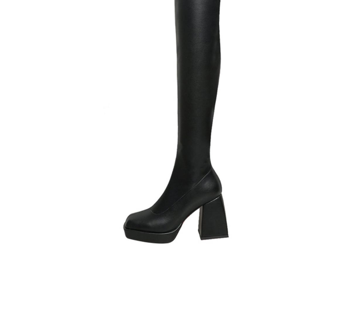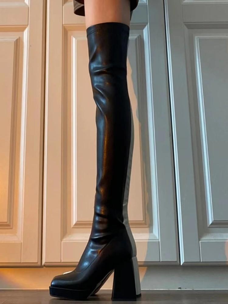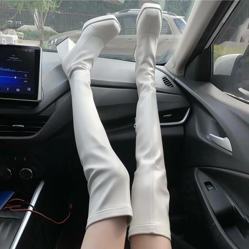 HOTSPOT~Botas elásticas botas por encima de la rodilla para mujer impermeables plataforma suela gruesa botas delgadas tacón alto botas de cuero botas altas de caballero para mujer