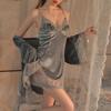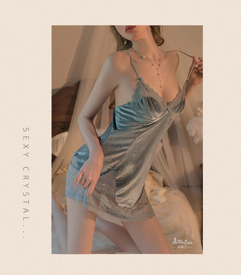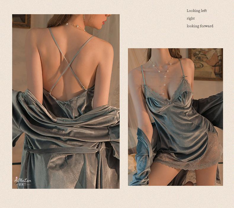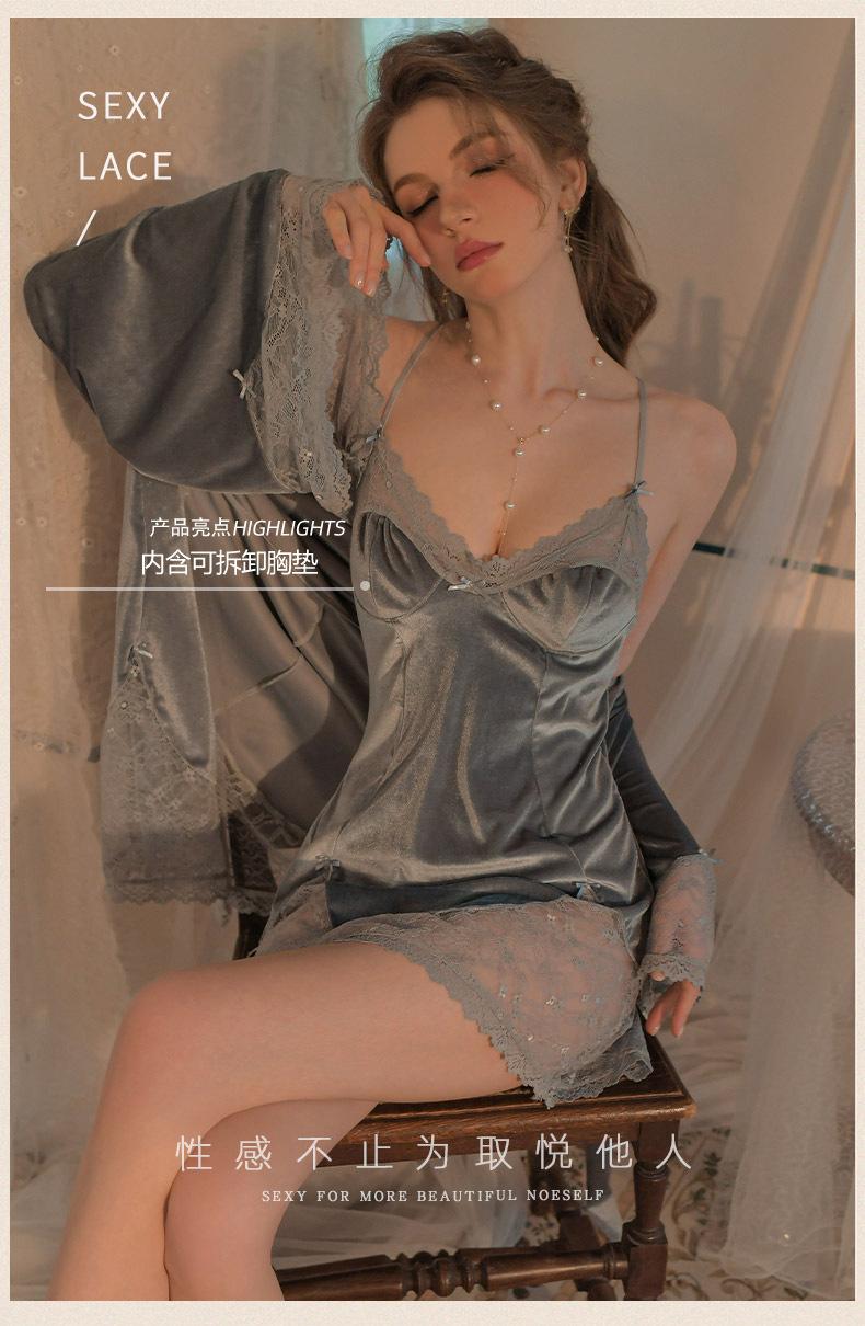 Pijama Sexy Meishilan con Almohadillas para el Busto para Mujer Terciopelo Dorado Ropa para el Hogar Primavera y Otoño Camisón de Alta Gama con Almohadillas para el Busto 243 Set