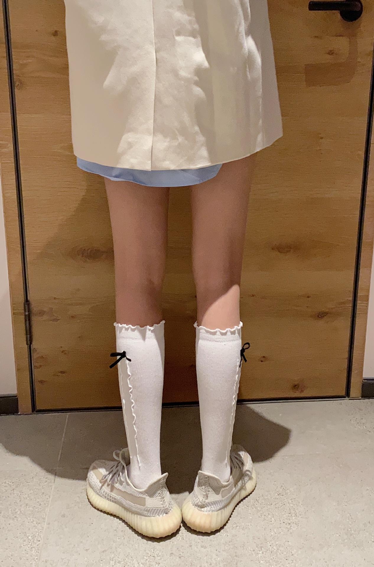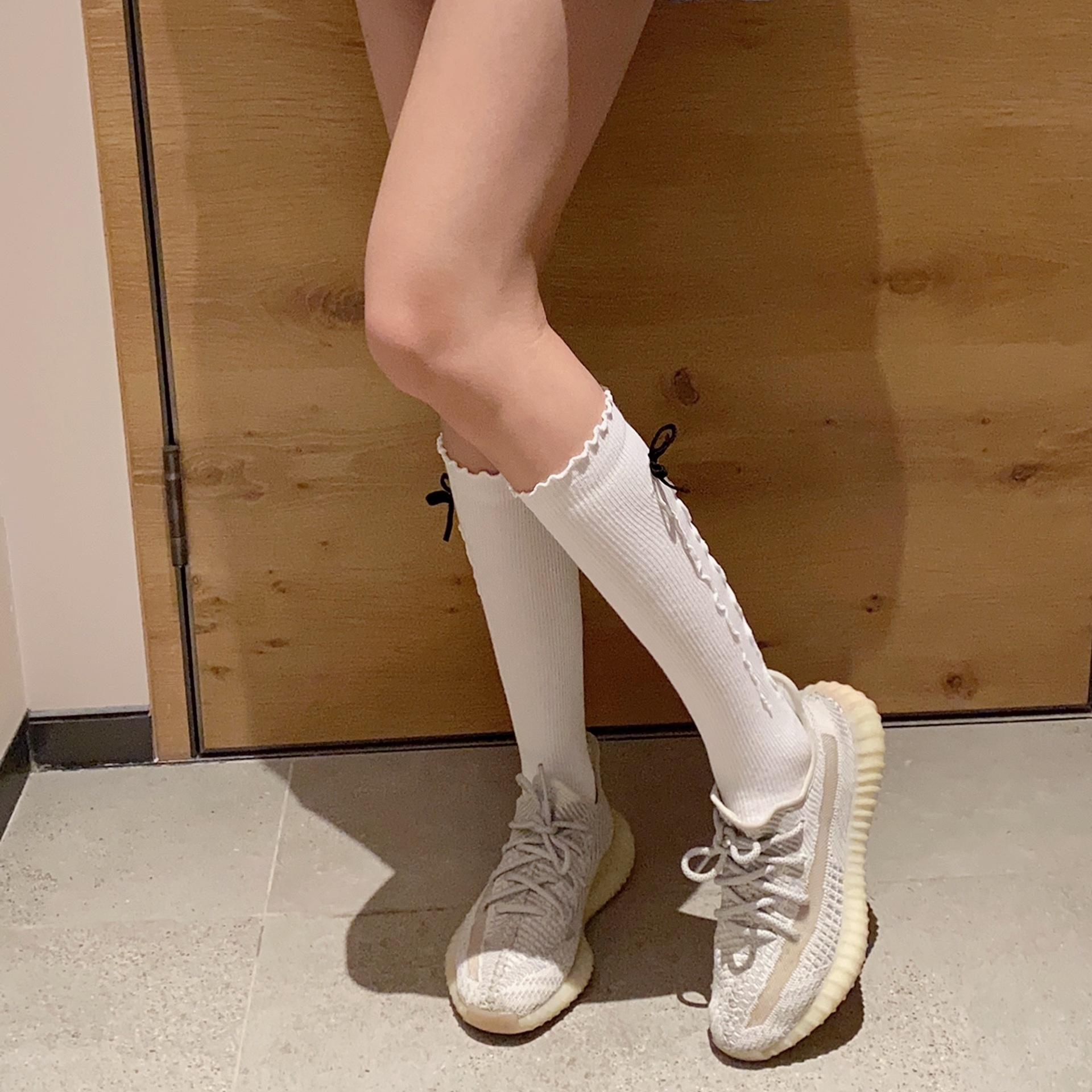 Primavera y verano nuevo terciopelo con moño oreja de madera jk dulce salado Lolita algodón peinado calcetín de media caña