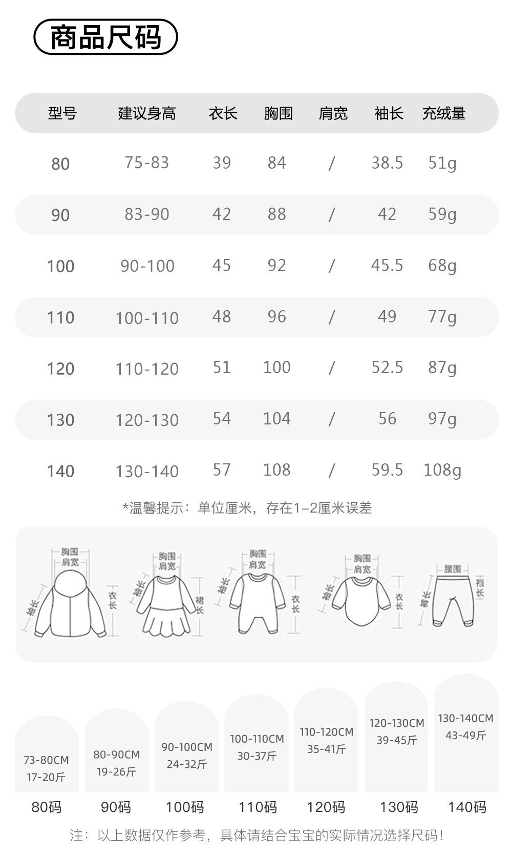 80 filling capacity 51g, 90 down filling capacity 59g, 100 down filling capacity 68g, 110 down filling capacit...