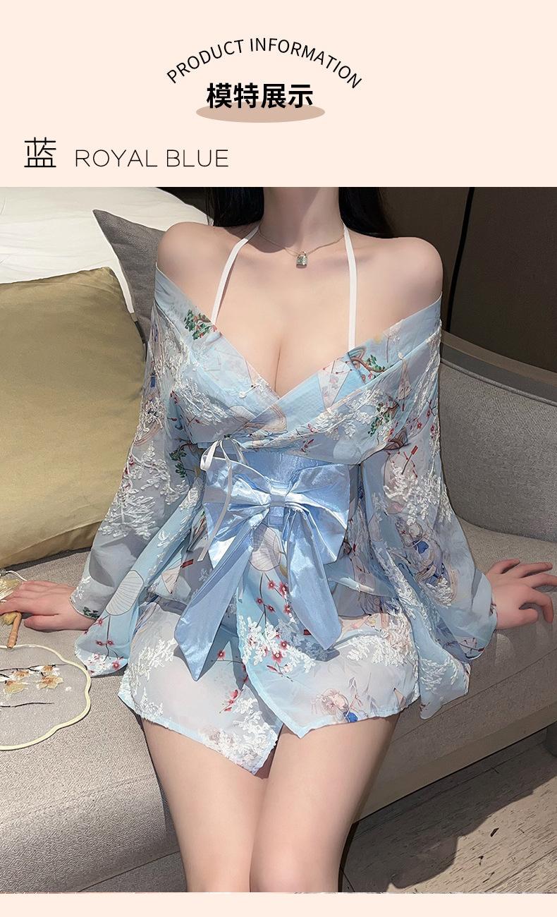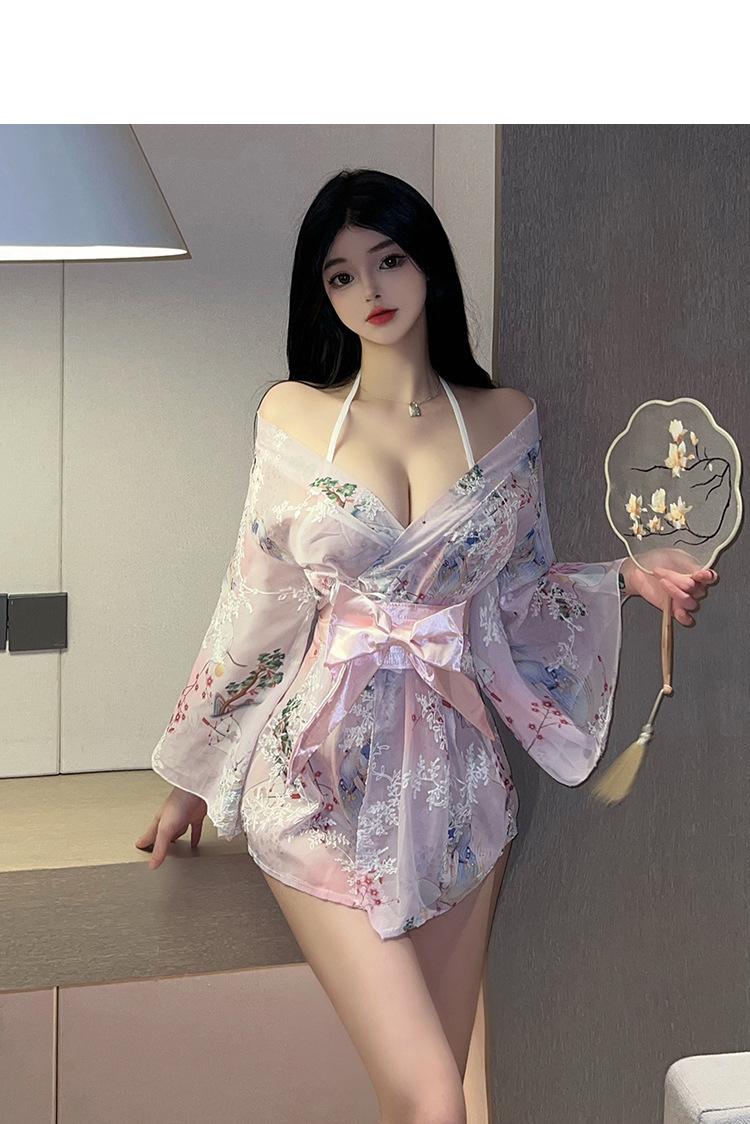Ropa interior sexy Suoqing, kimono, bata de baño, uniforme, tentación, estampado japonés, lazo, pijama japonés sexy