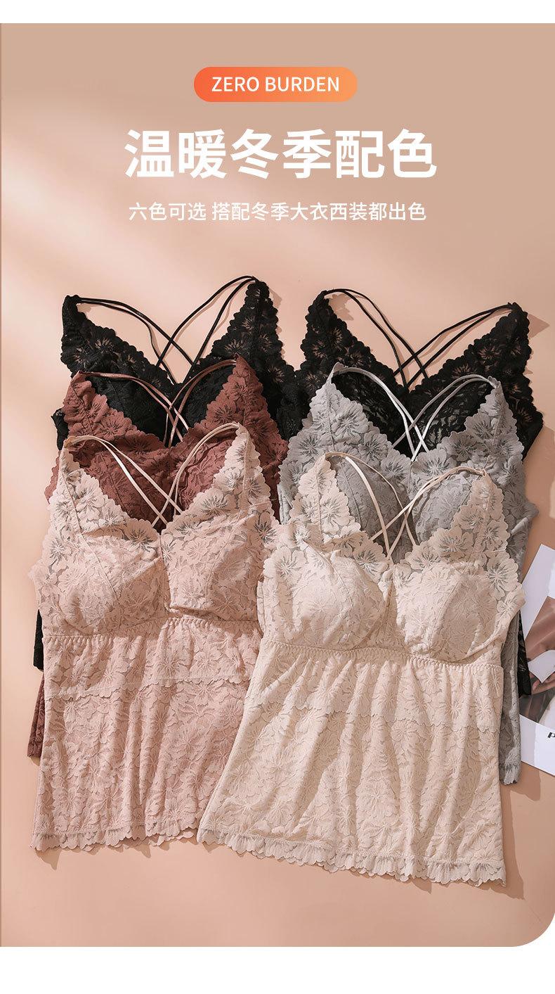 Chaleco de invierno con encaje, nuevo, bonito, con espalda abrigada y escote en V, ropa interior gruesa con forro polar y almohadilla para el pecho para mujer