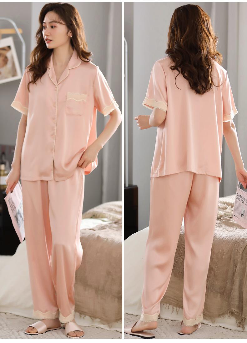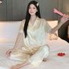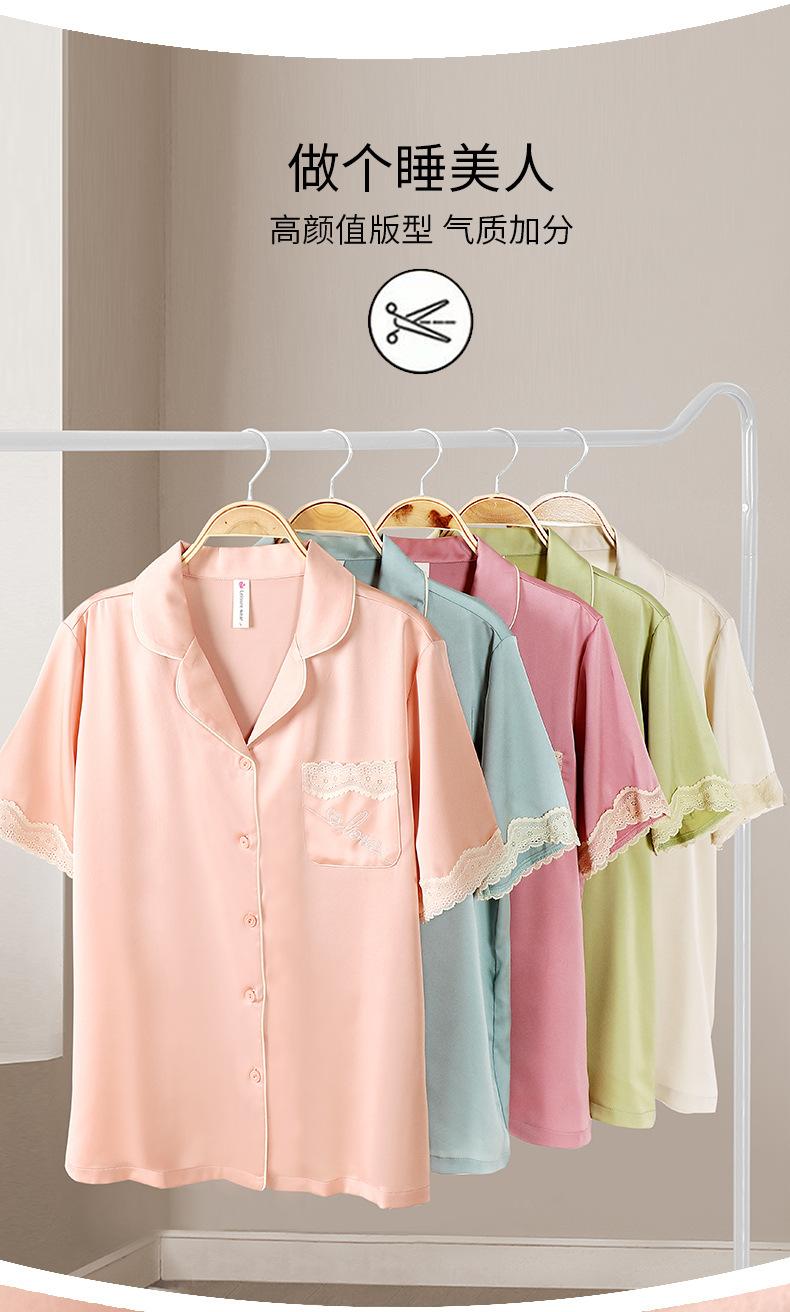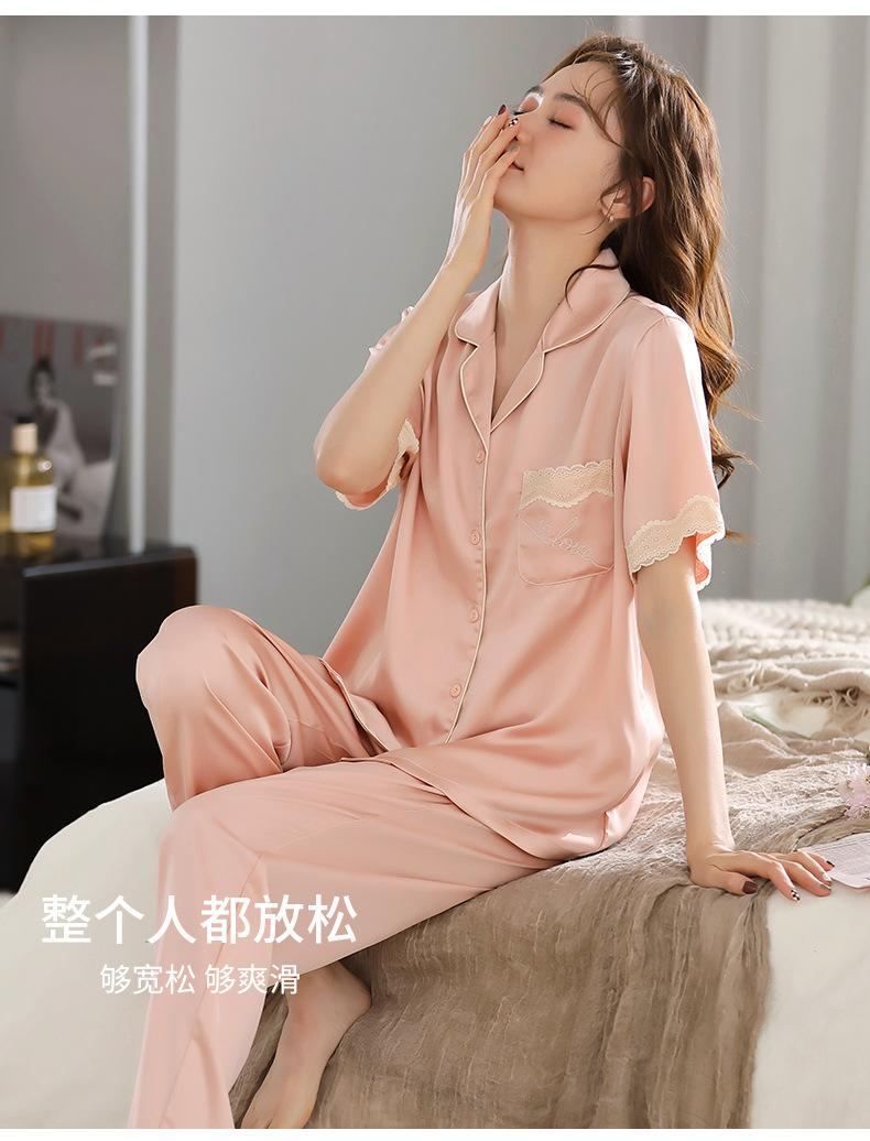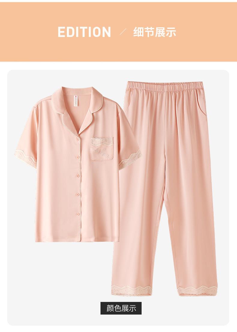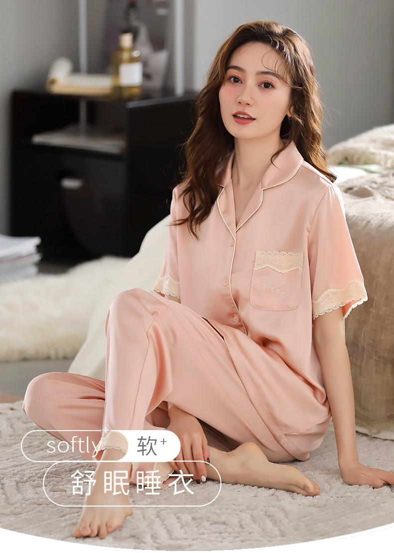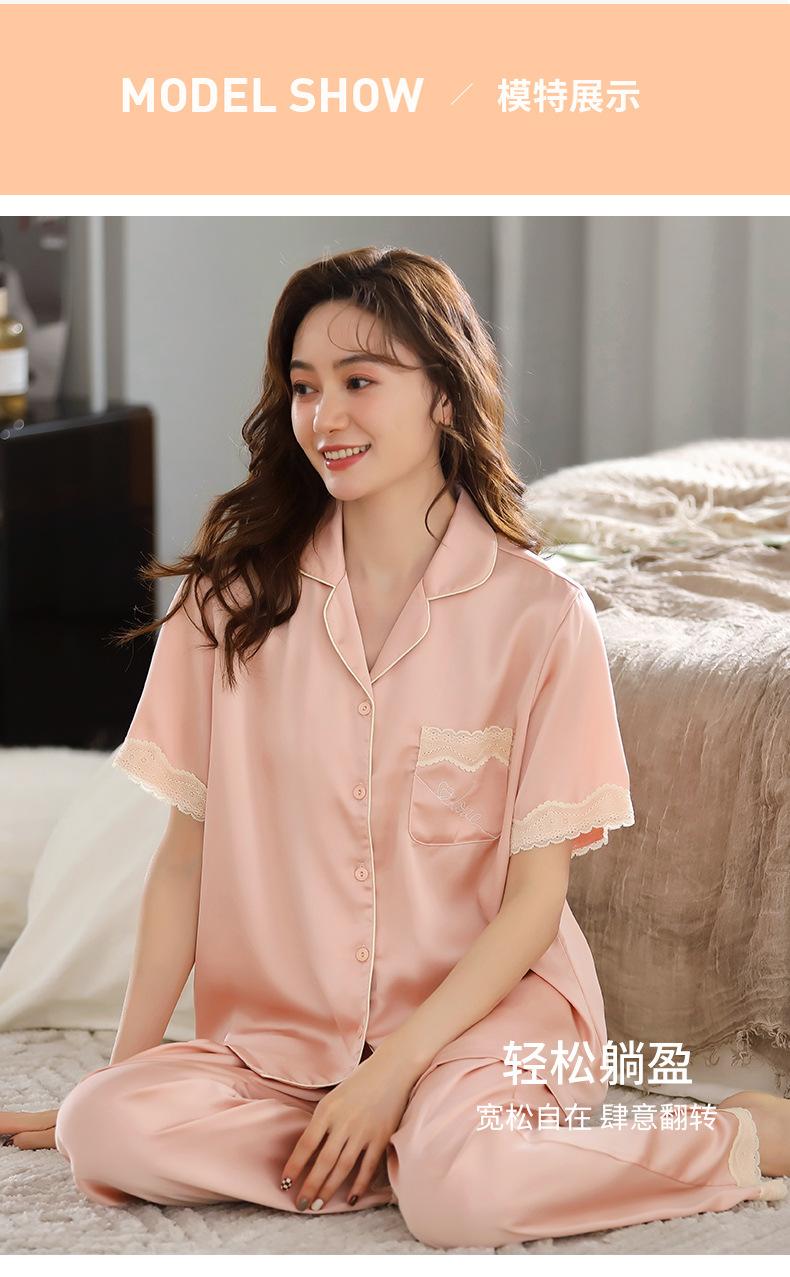 Pijamas de verano de manga corta de seda helada para mujer, ropa fina y fresca de talla grande para el hogar, para exteriores