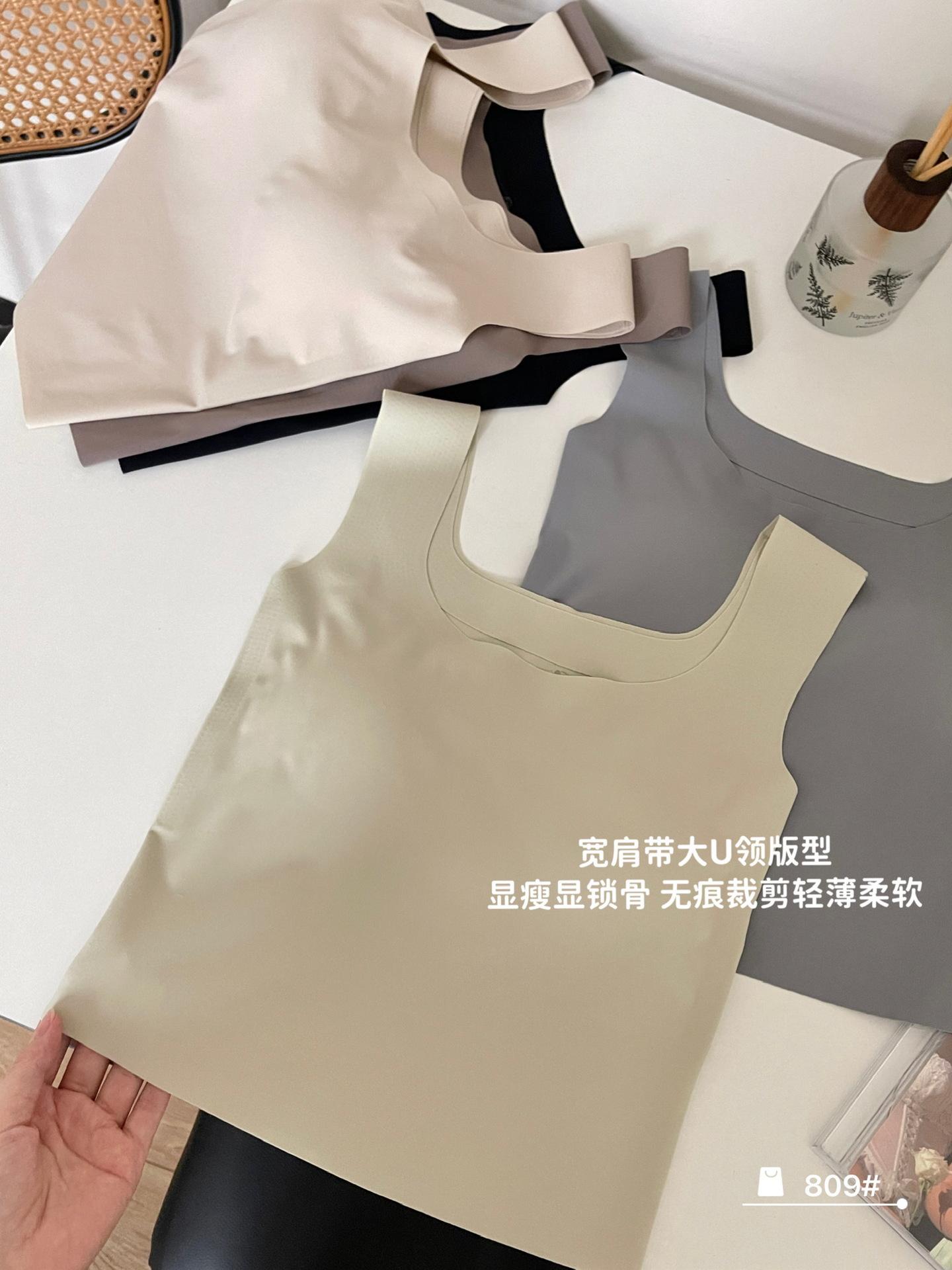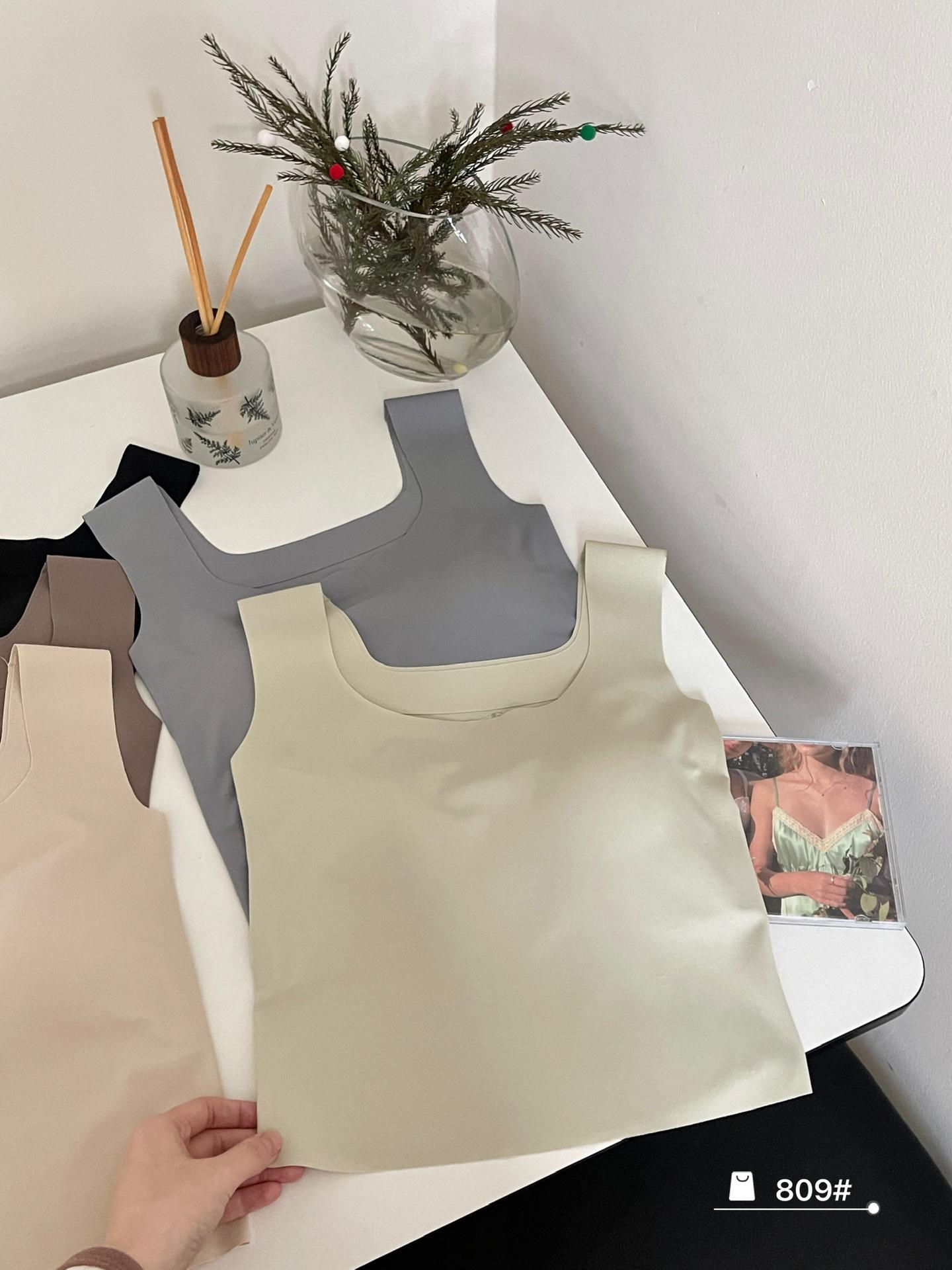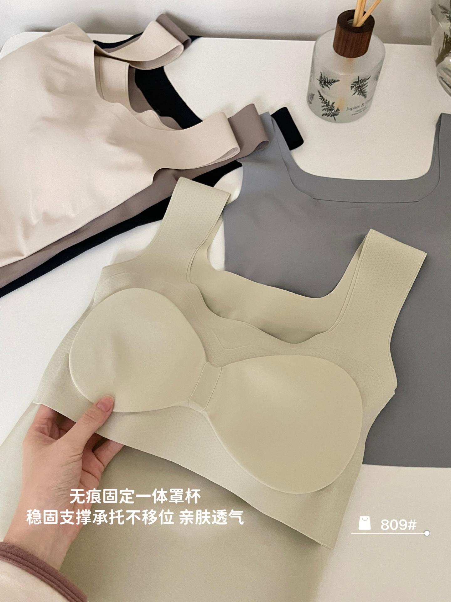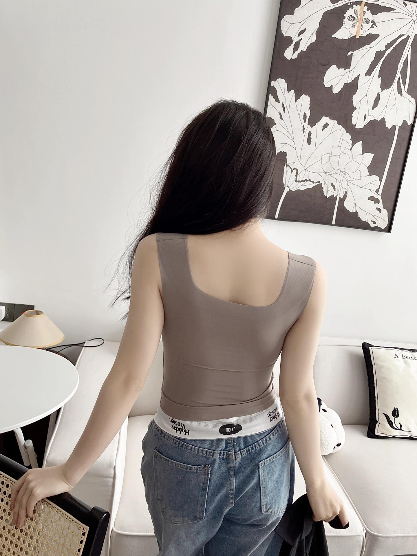 Camisola de seda de hielo sin costuras con hombros anchos, sin aro de acero, copa fija, espalda de belleza, ropa interior cómoda y transpirable, top de tubo