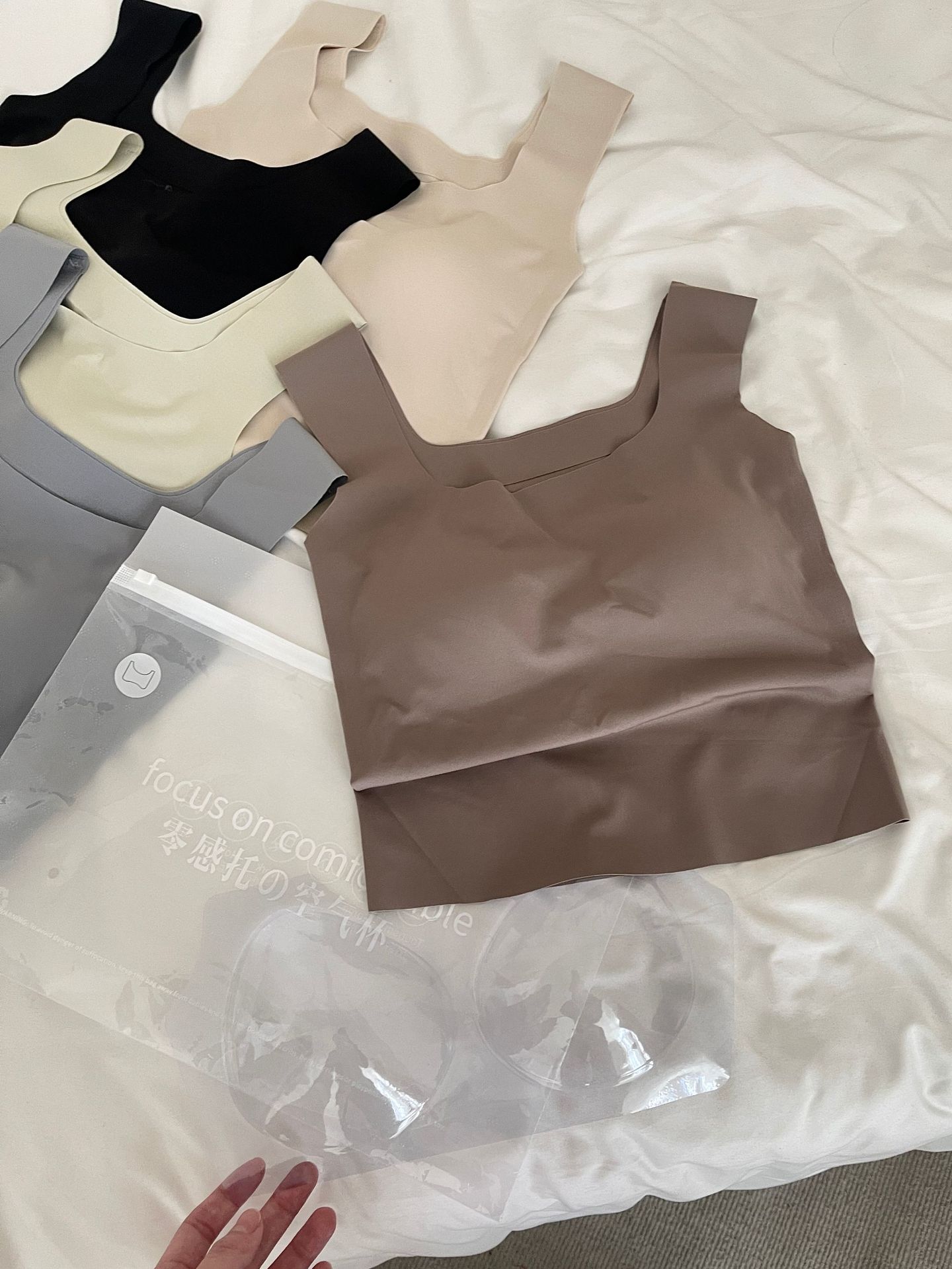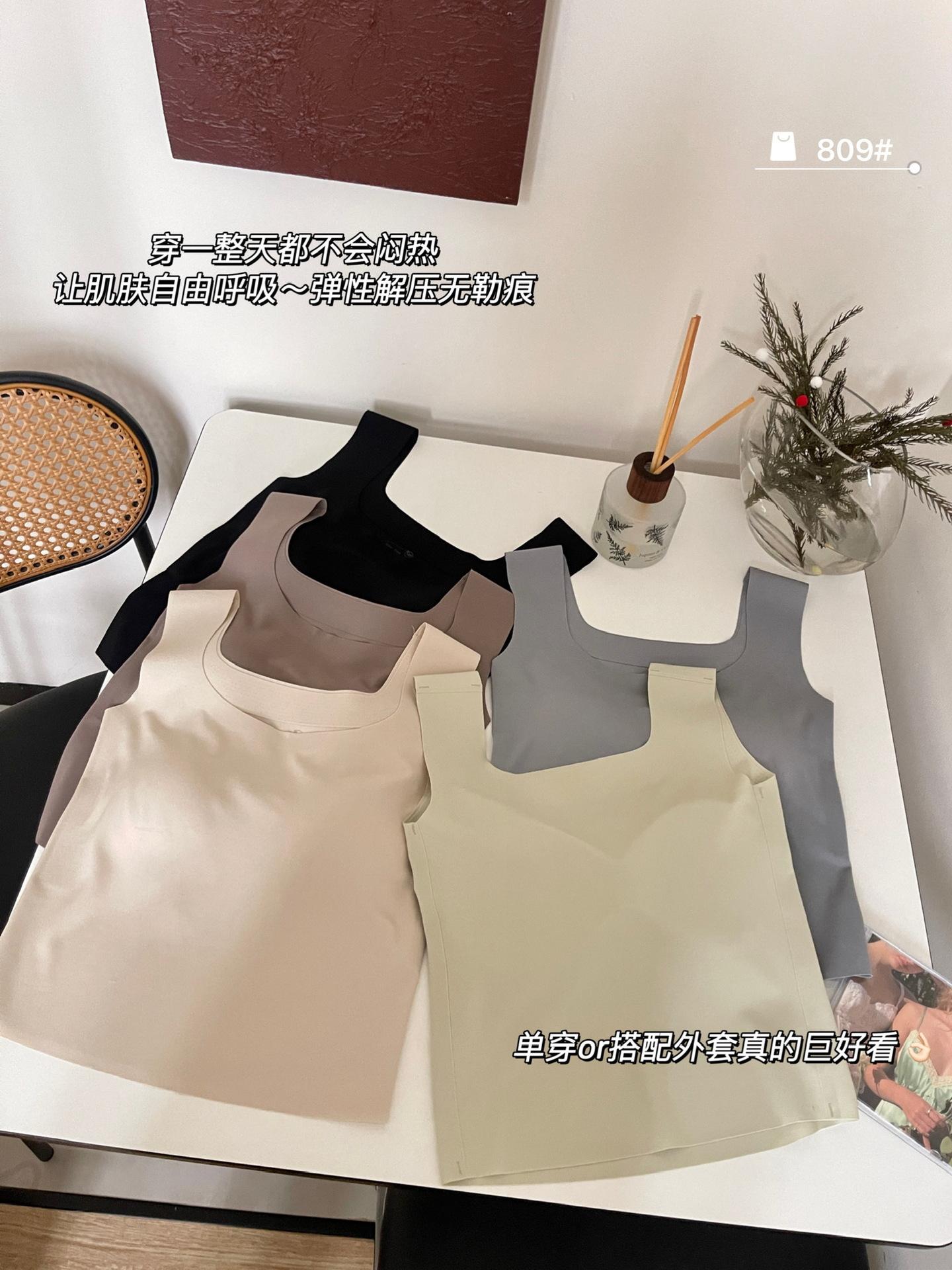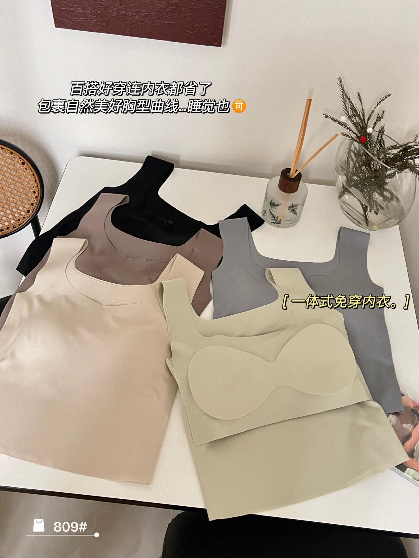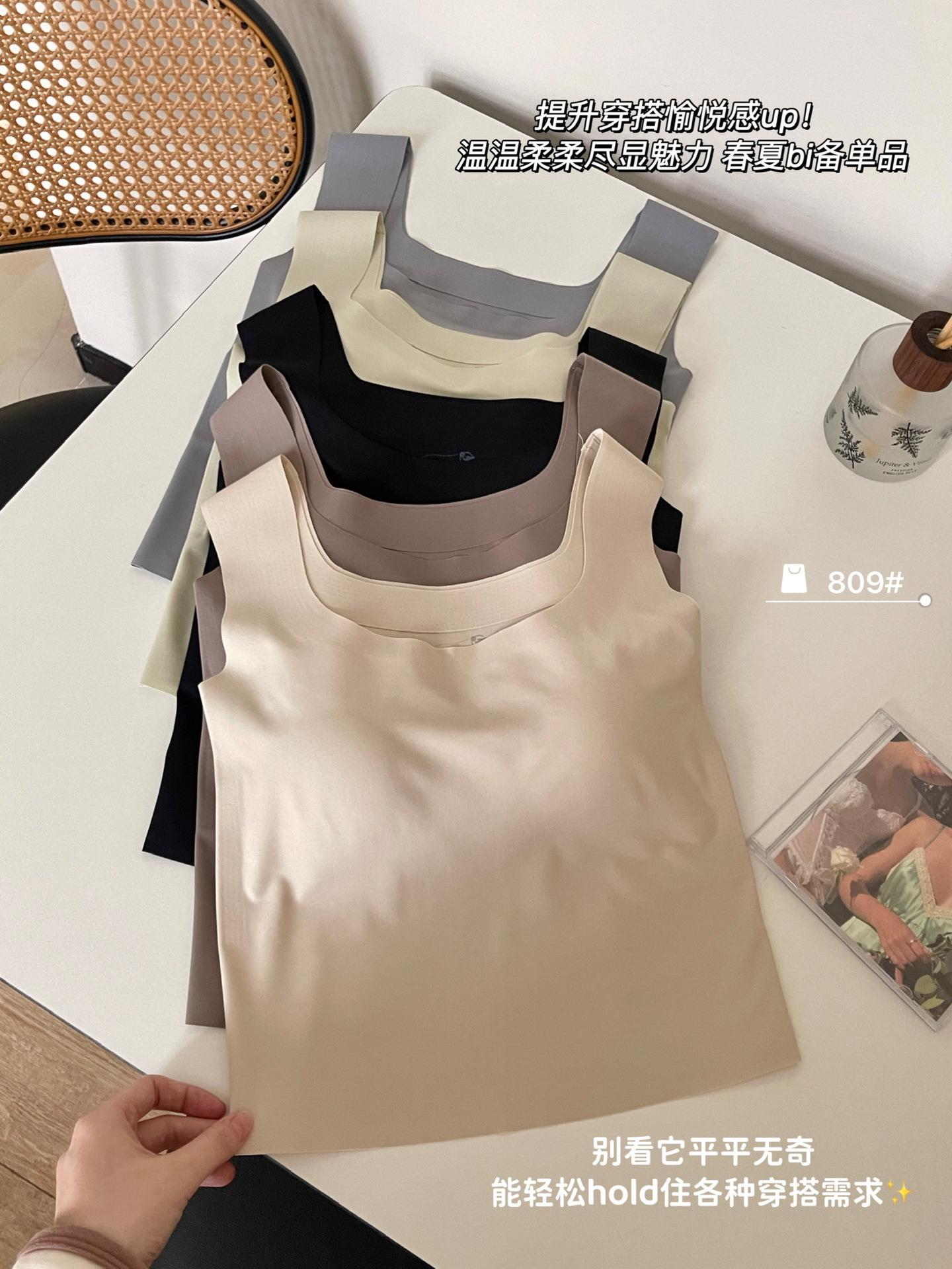 Camisola de seda de hielo sin costuras con hombros anchos, sin aro de acero, copa fija, espalda de belleza, ropa interior cómoda y transpirable, top de tubo