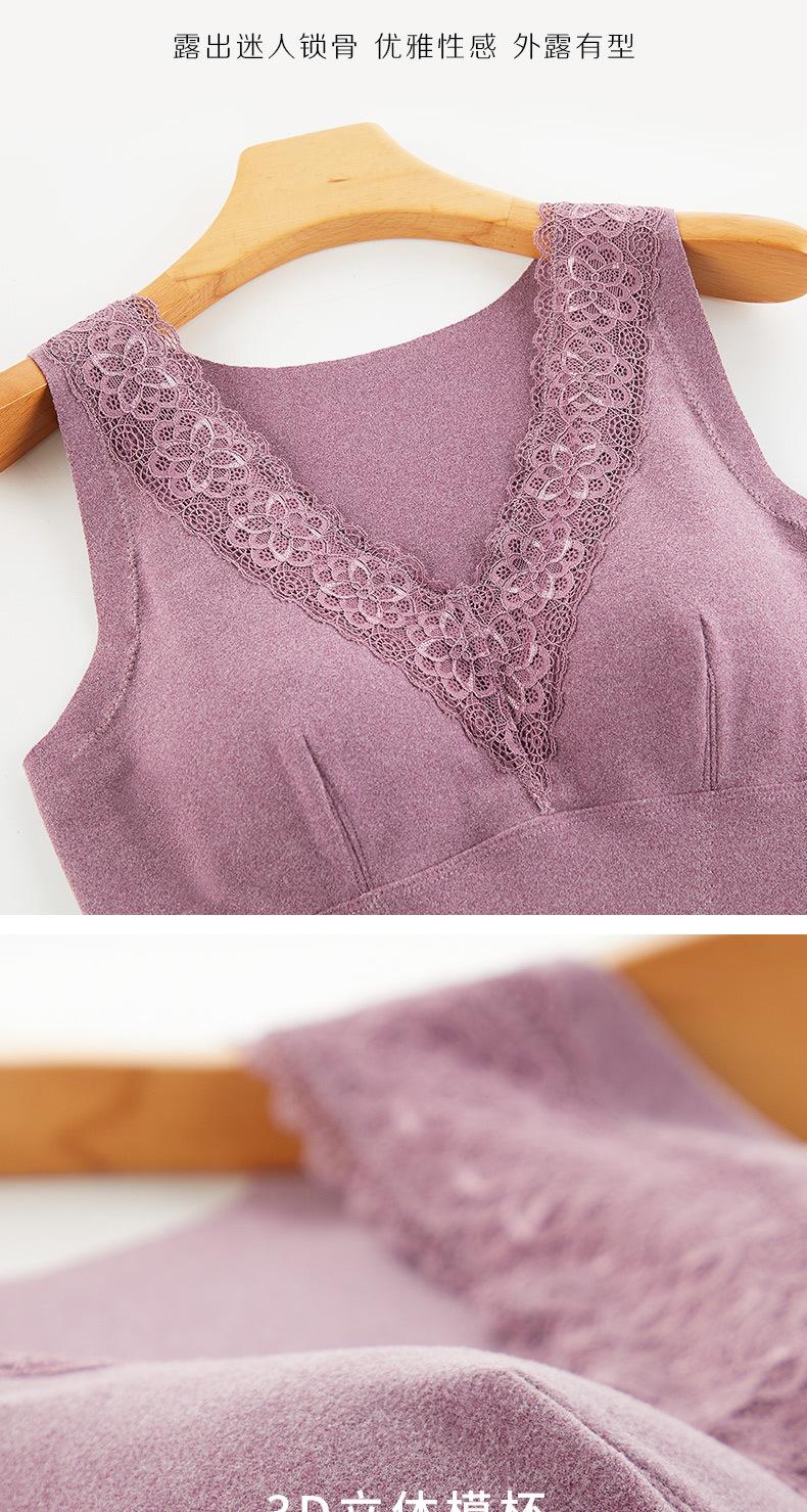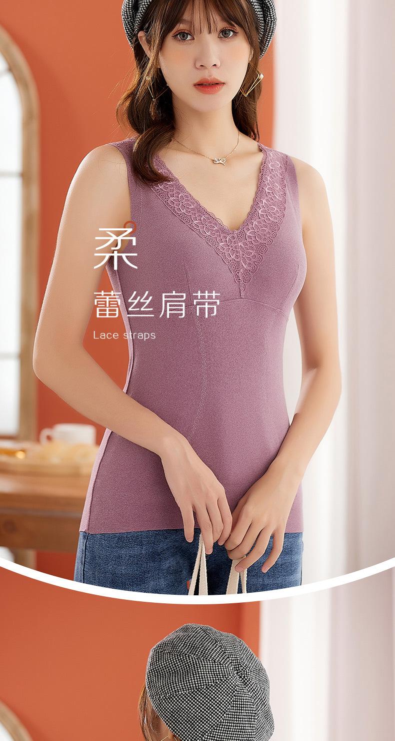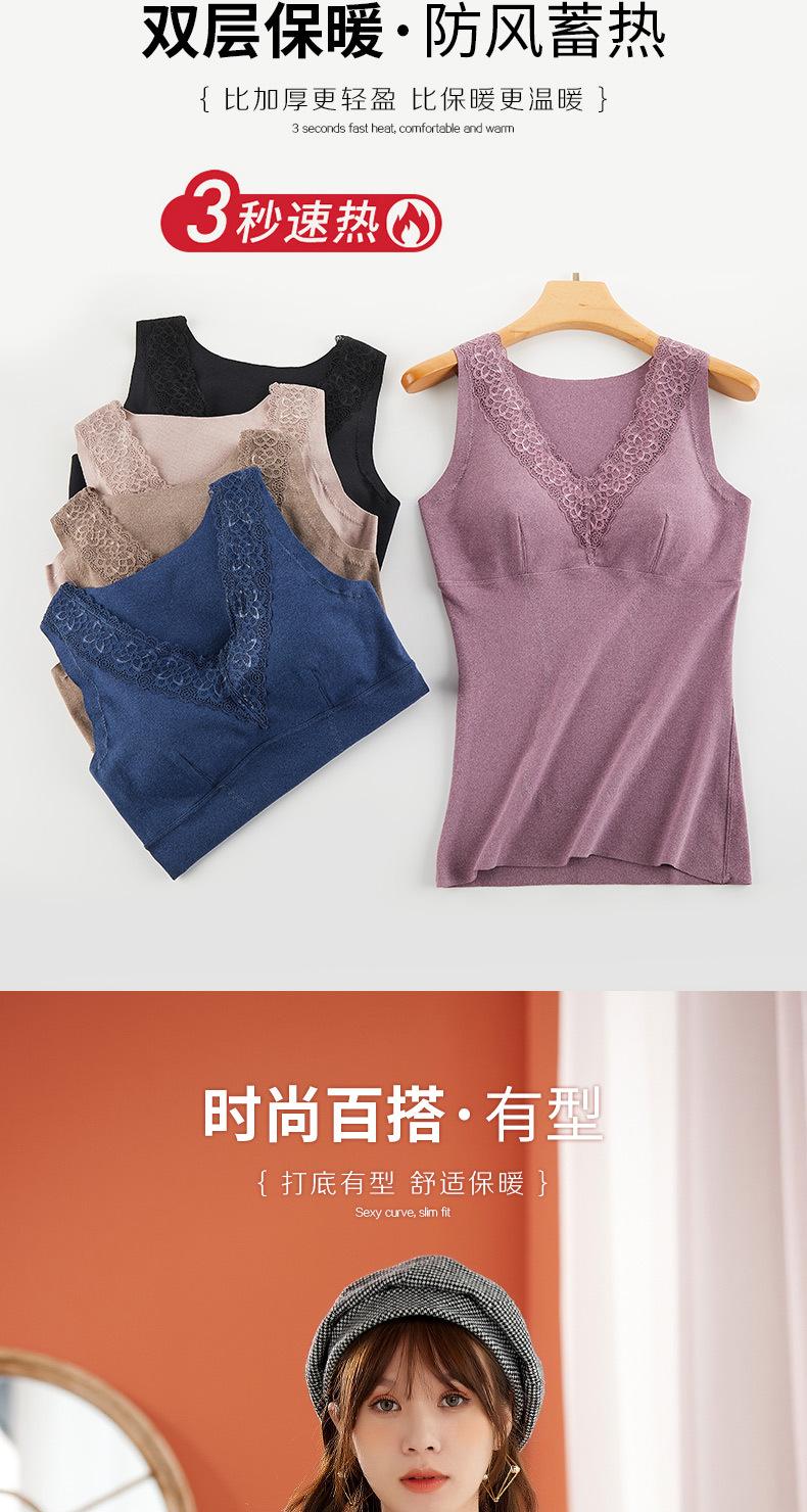 Chaleco Cálido de Terciopelo Sin Costuras para Mujer, Grueso con Forro Polar, Ajustado para Uso Interior, Camiseta Base Autocalentable, Top de Algodón para Otoño e Invierno