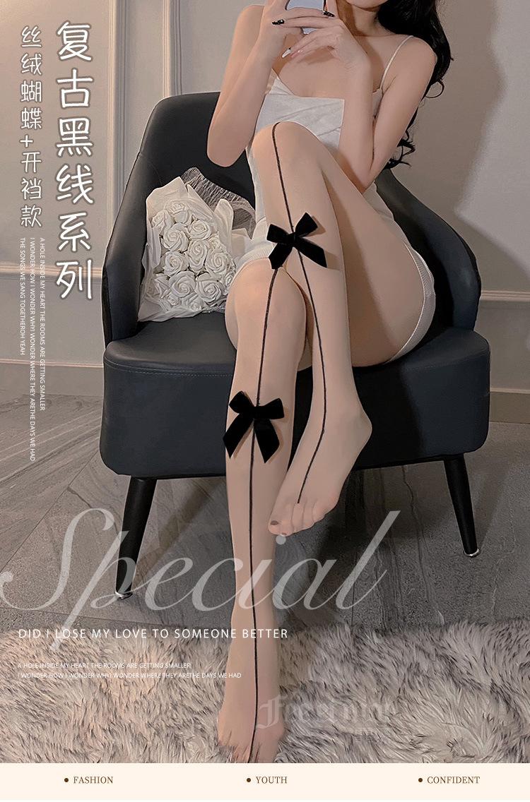 7371 Negro + Negro [Medias Panty de Entrepierna Abierta Sencilla] (Precio Limitado 19.9)