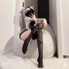 Medias de seda sexys para mujer, de verano, finas, ligeras, con encaje, por encima de la rodilla, populares en Internet, de seda negra, color liso.