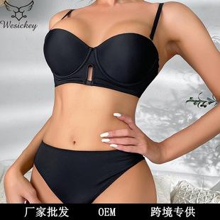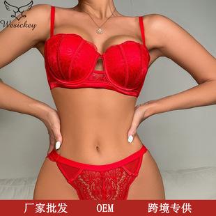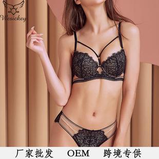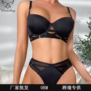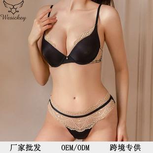 Lencería sexy transfronteriza europea y americana para mujer, top delgado y parte inferior gruesa, brasier push-up para busto pequeño, conjunto de brasier push-up ajustable