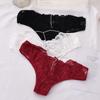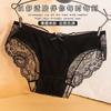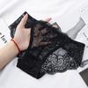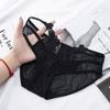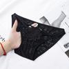 Ropa interior de comercio electrónico para mujer, muy vendida, con encaje de cintura baja, malla hueca sexy y atractiva, bragas transparentes de algodón puro en la entrepierna.