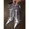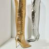 Botas de mujer de talla grande con tacón fino puntiagudo y tacón súper alto hasta la rodilla, estilo europeo y americano, pasarela de moda, otoño e invierno de 2024