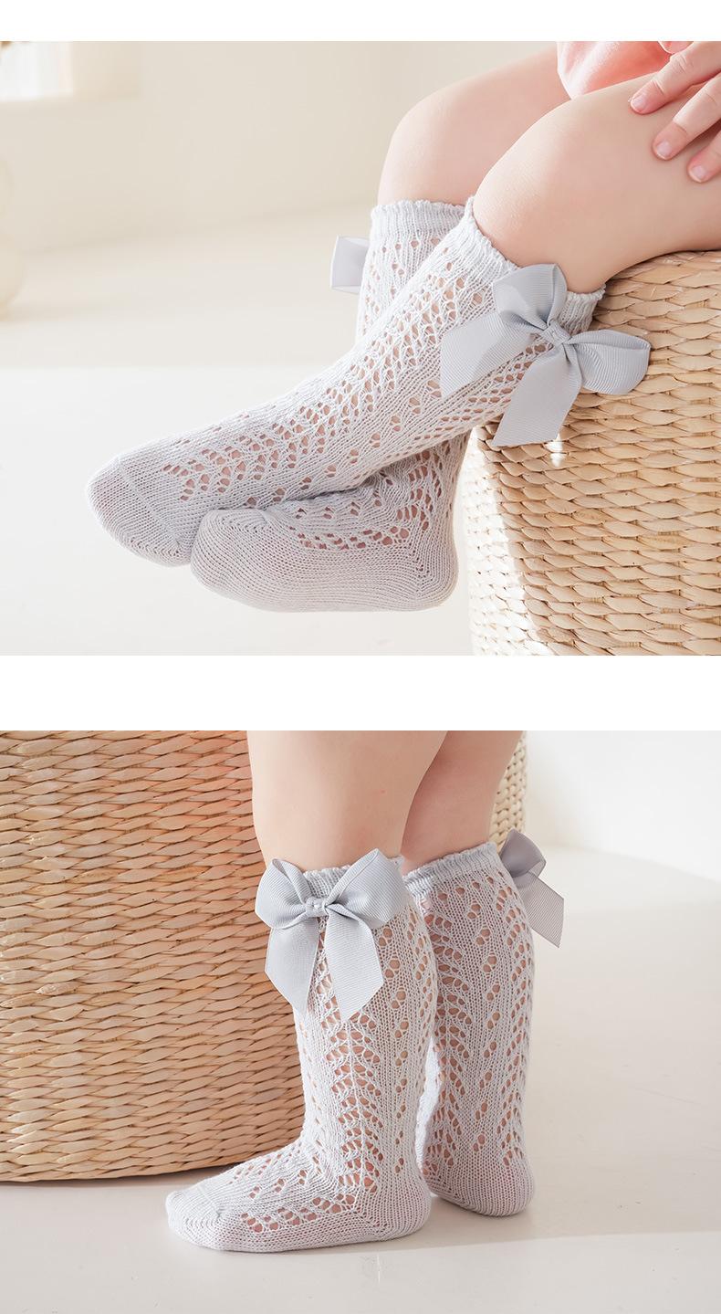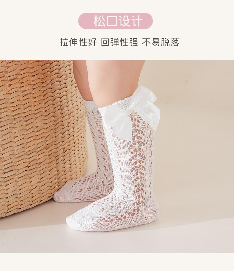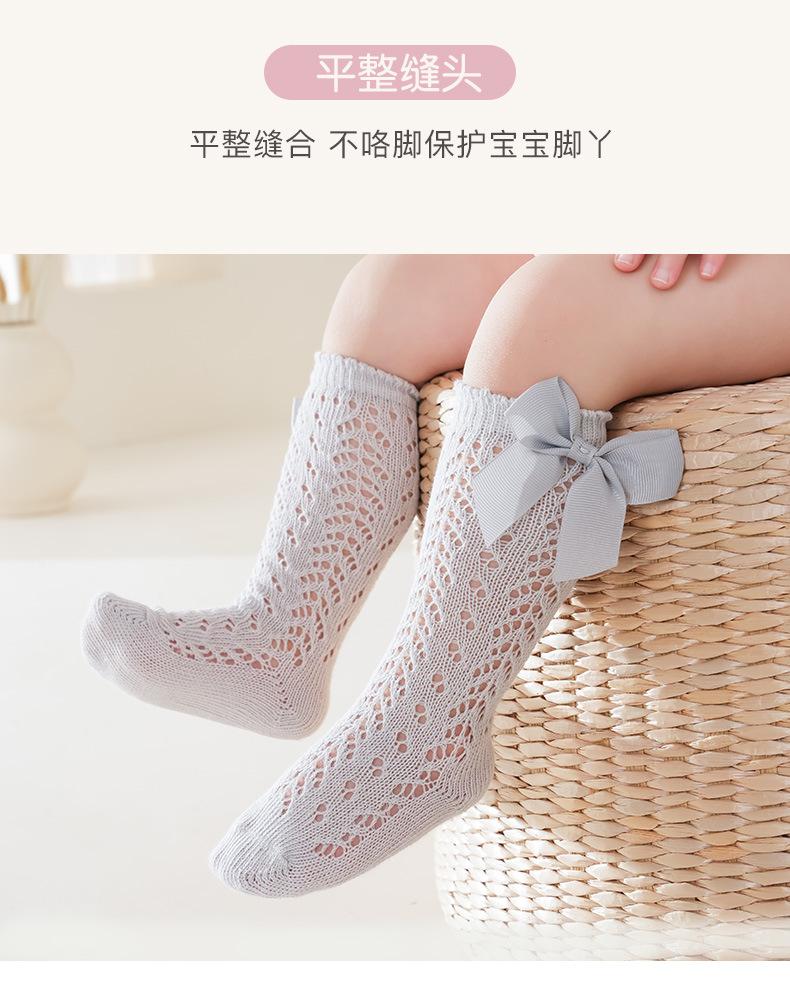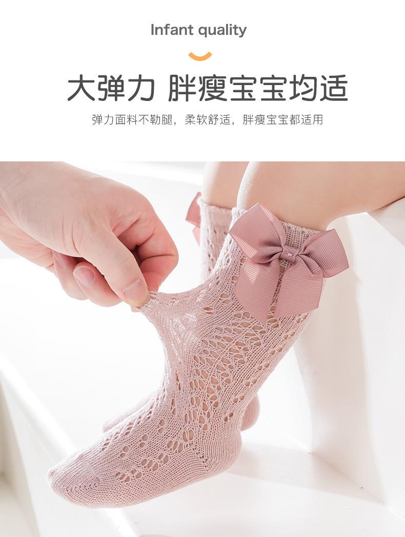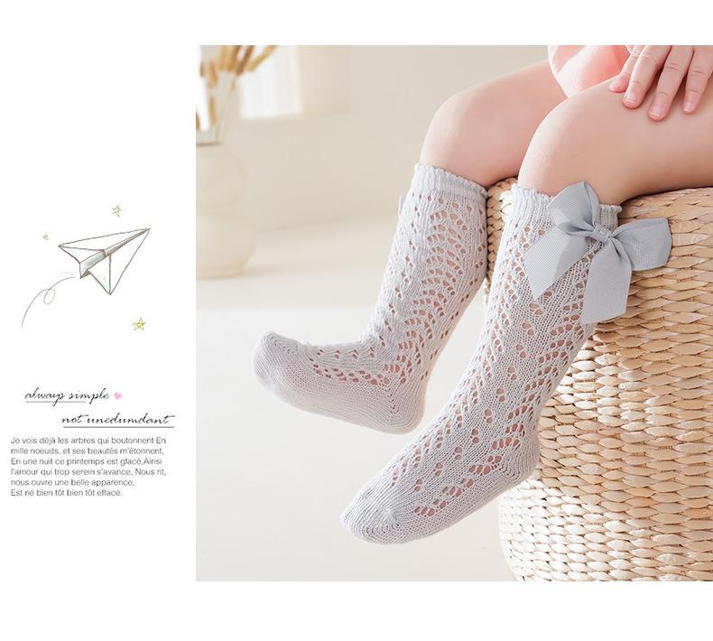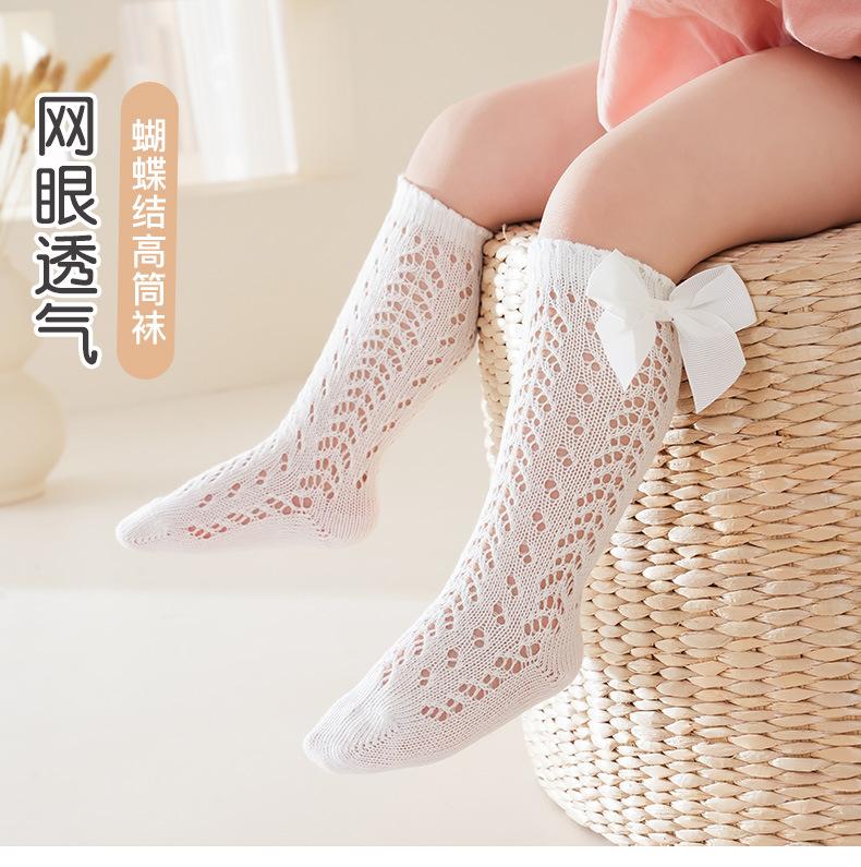 Selección estricta de calcetines de verano para niños, calcetines finos de malla hueca hasta la mitad de la pantorrilla, calcetines para niñas, accesorios de lazo de princesa, calcetines de pantorrilla