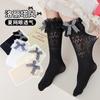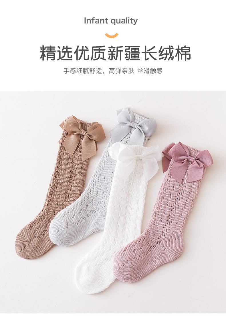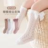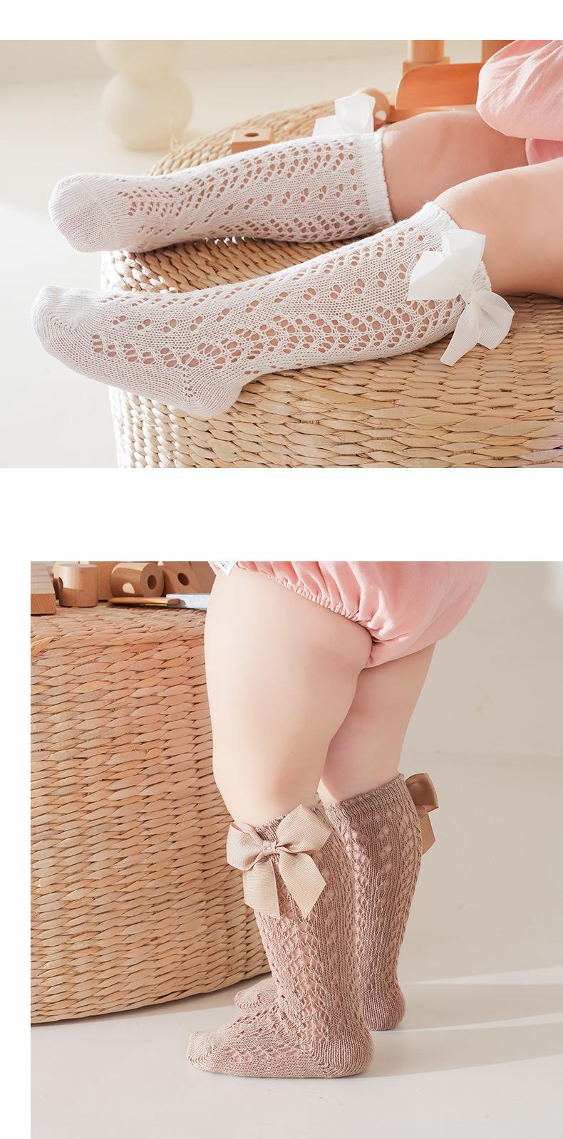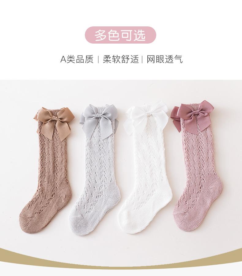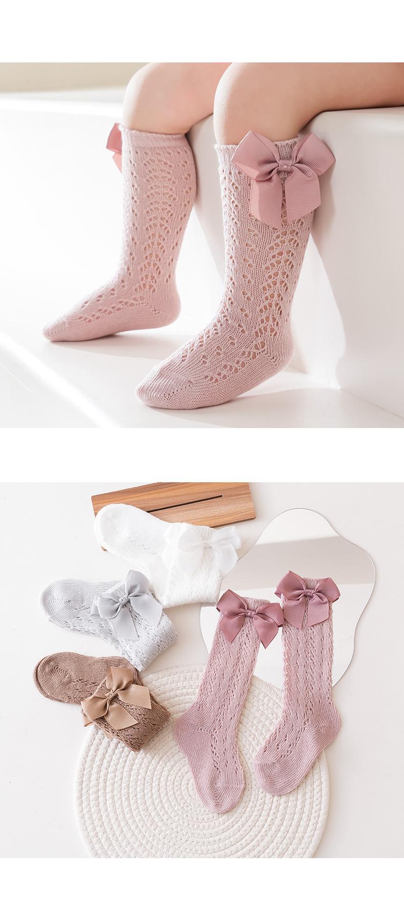 Selección estricta de calcetines de verano para niños, calcetines finos de malla hueca hasta la mitad de la pantorrilla, calcetines para niñas, accesorios de lazo de princesa, calcetines de pantorrilla