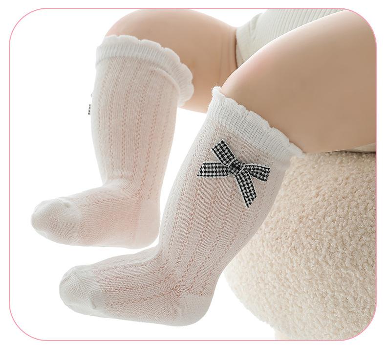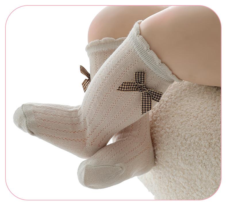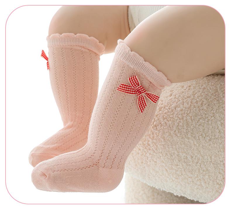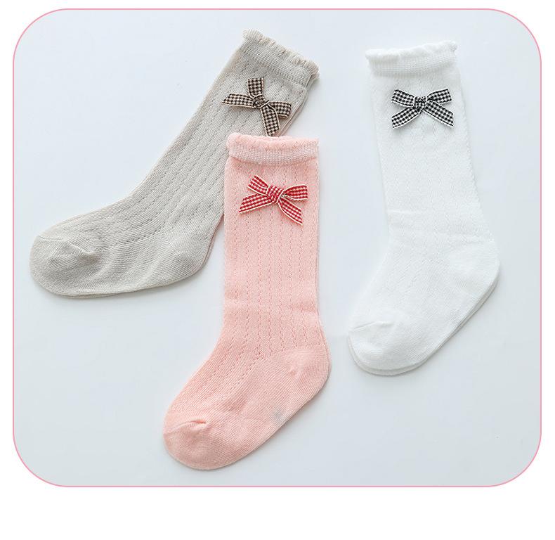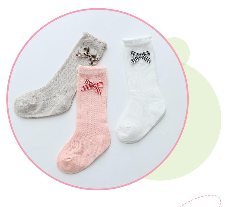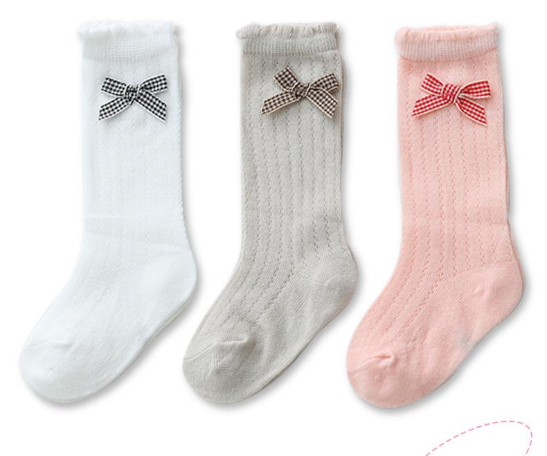Calcetines de verano para niñas, calcetines de longitud media para bebés, calcetines de princesa con lazo, calcetines elegantes para los pies de las niñas, calcetines largos de tubo para bebés