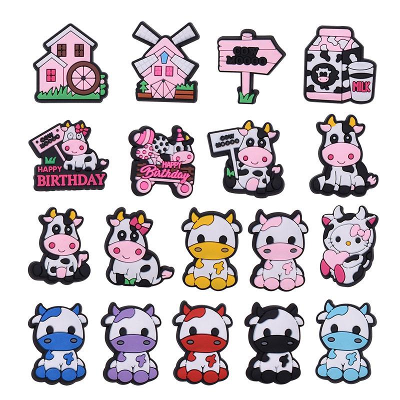 Zapatos de goma suave de PVC con diseño de vaca, con hebilla decorativa y agujero, con diseño de flor, accesorios para zapatos DIY, venta al por mayor en Amazon