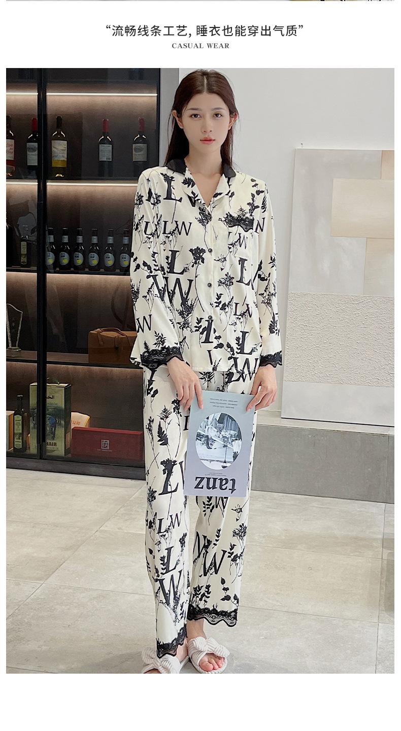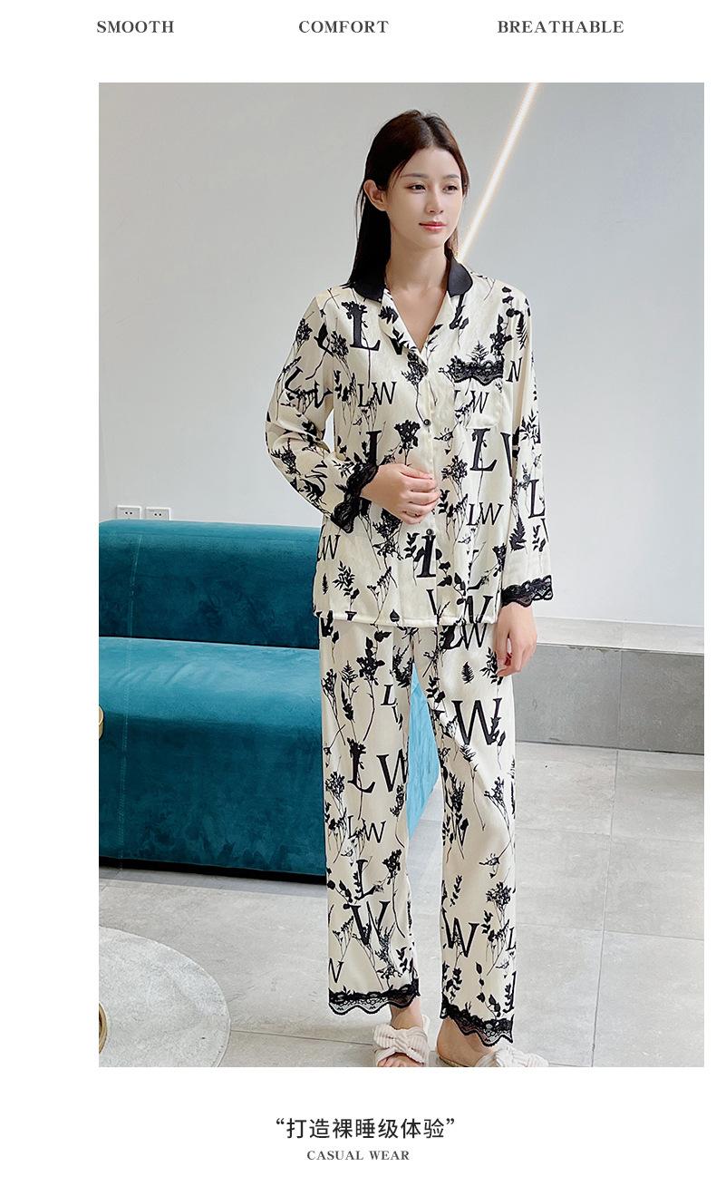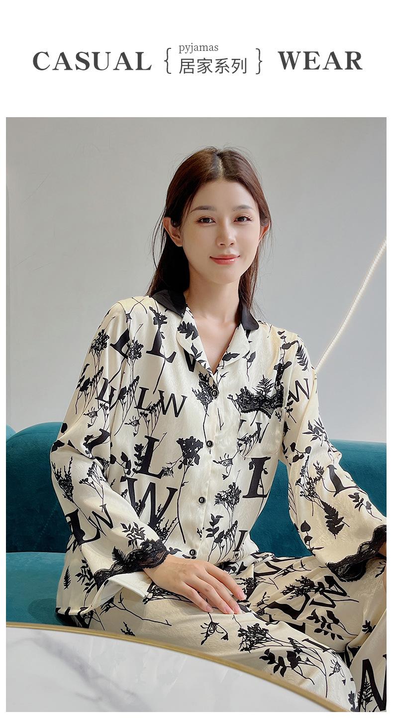 Pijamas de mujer primavera y otoño seda de hielo manga larga 2023 nuevo estilo europeo y americano encaje moda ropa de hogar traje
