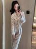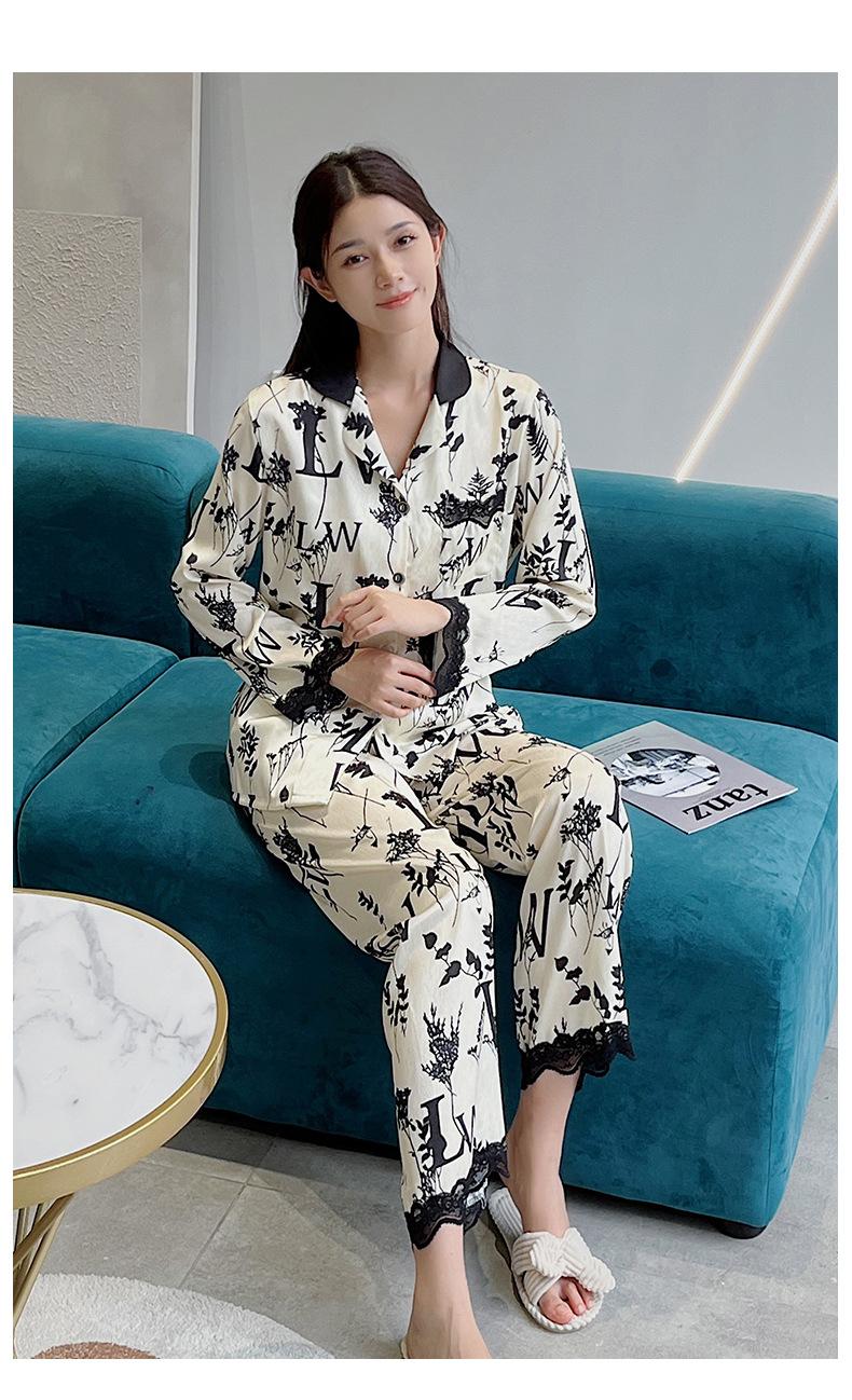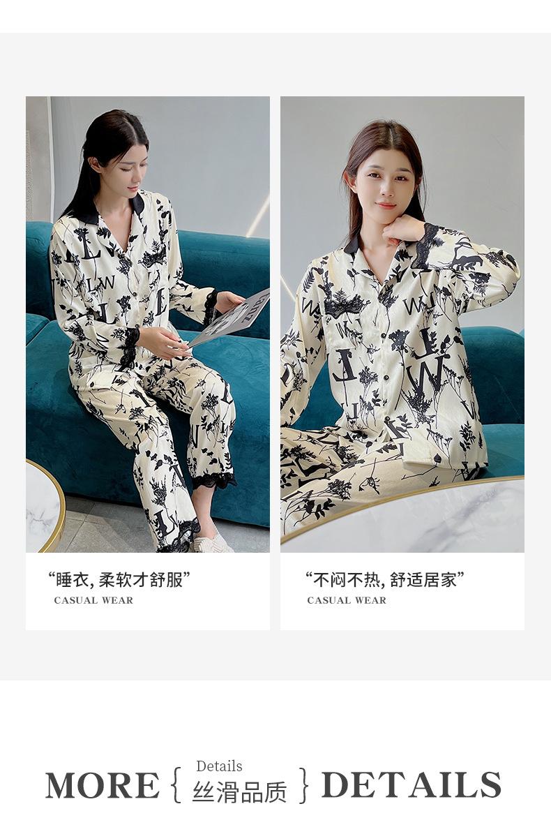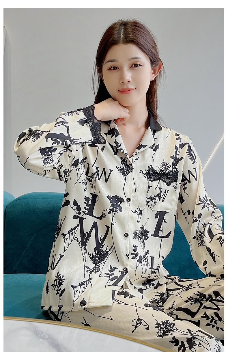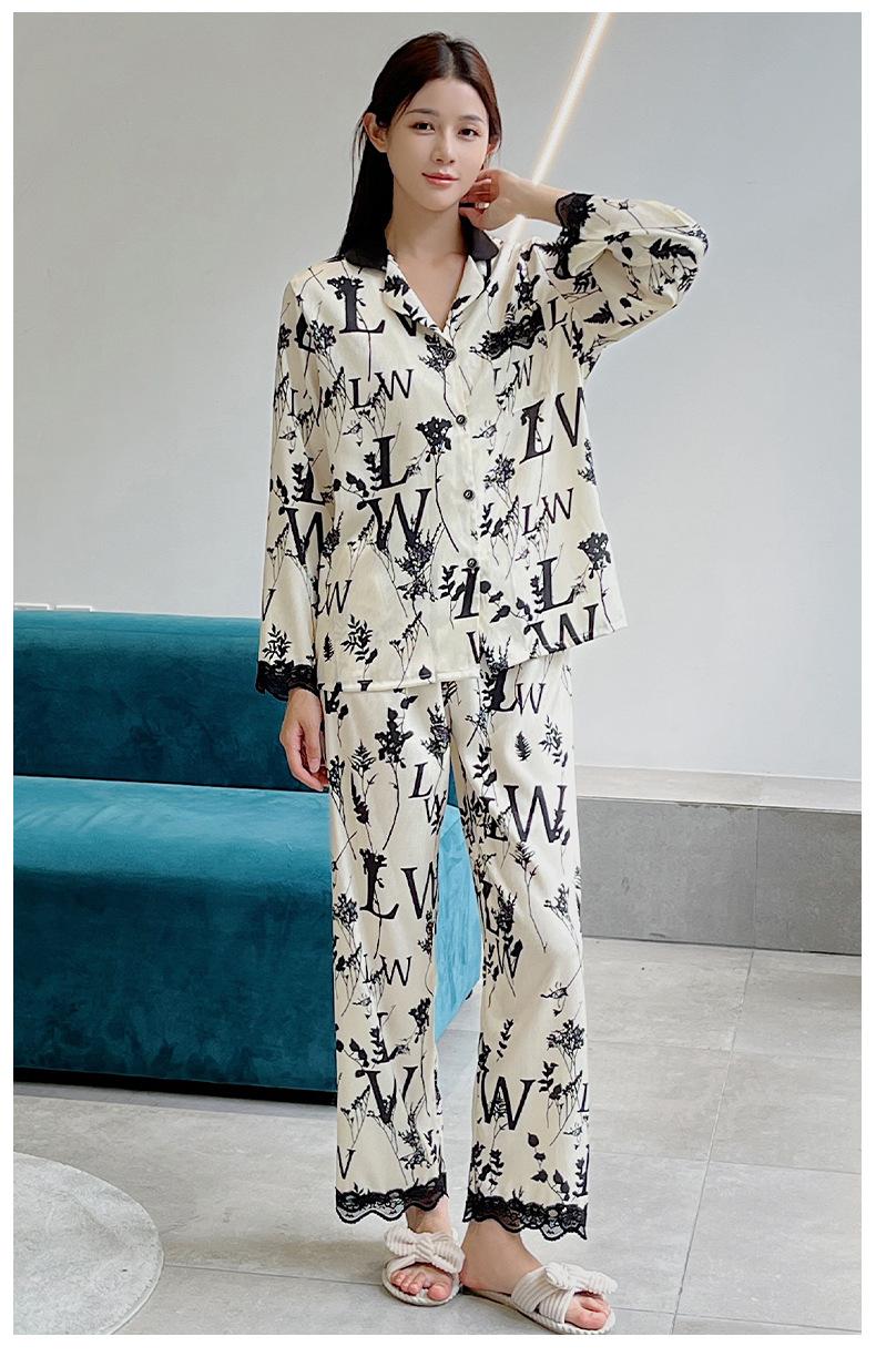 Pijamas de mujer primavera y otoño seda de hielo manga larga 2023 nuevo estilo europeo y americano encaje moda ropa de hogar traje