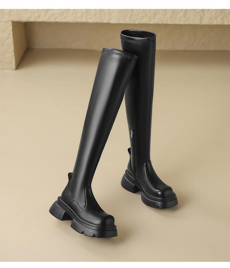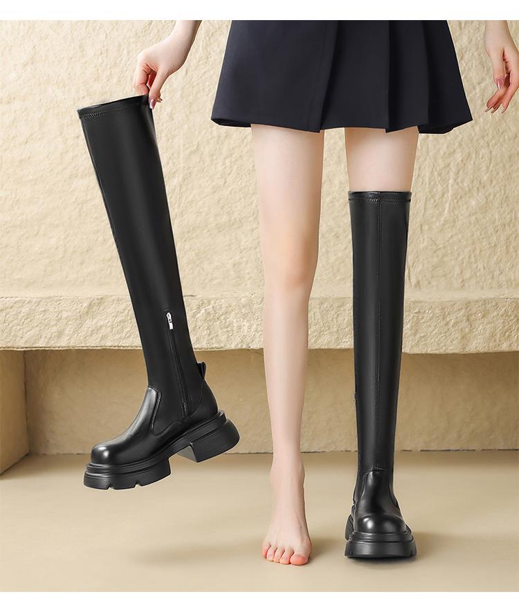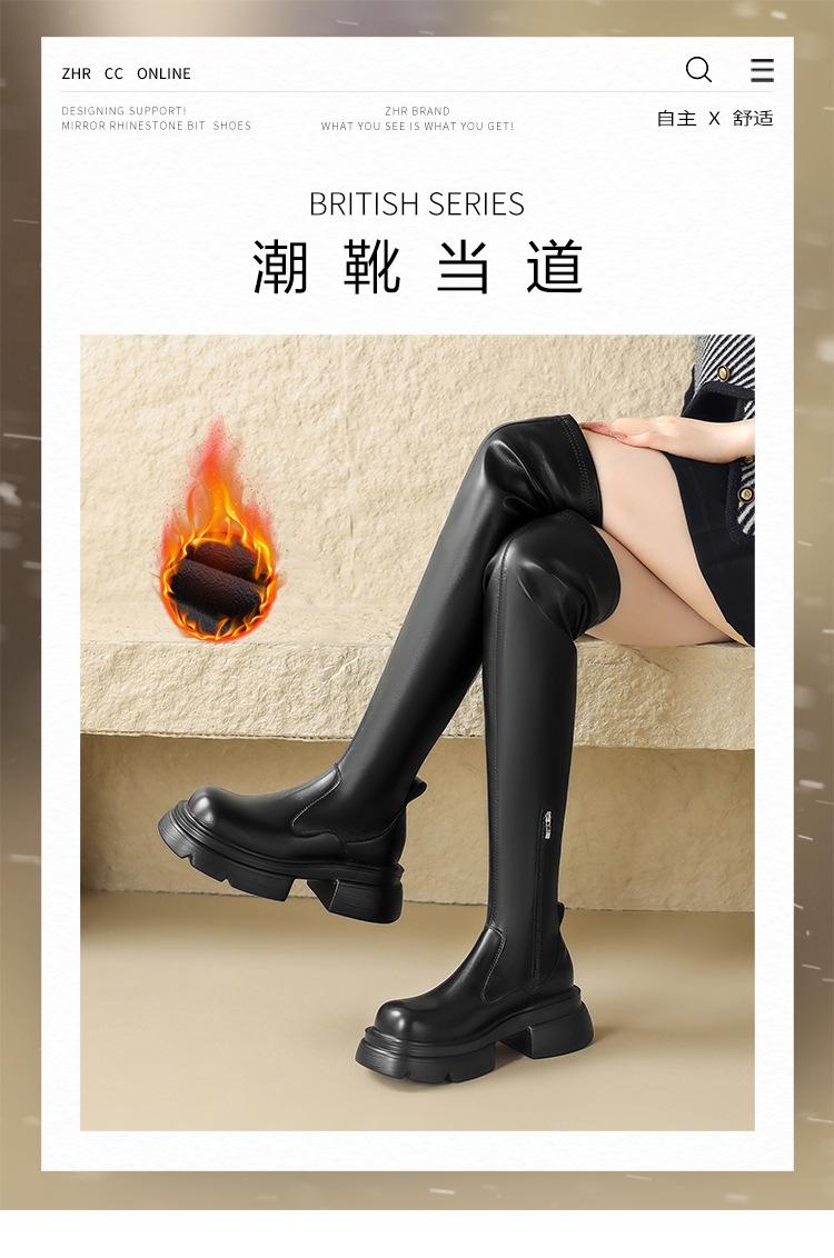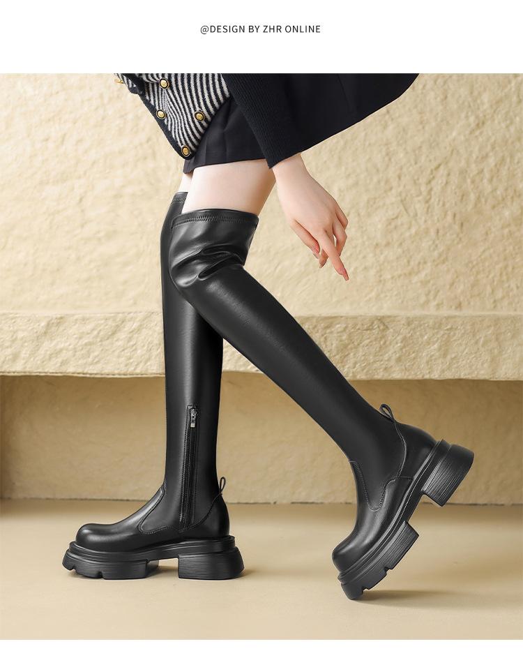 Botas de mujer ZHR 2024 primavera nuevo simple versátil forrado de vellón suela gruesa casual fresco sobre la rodilla botas de Caballero