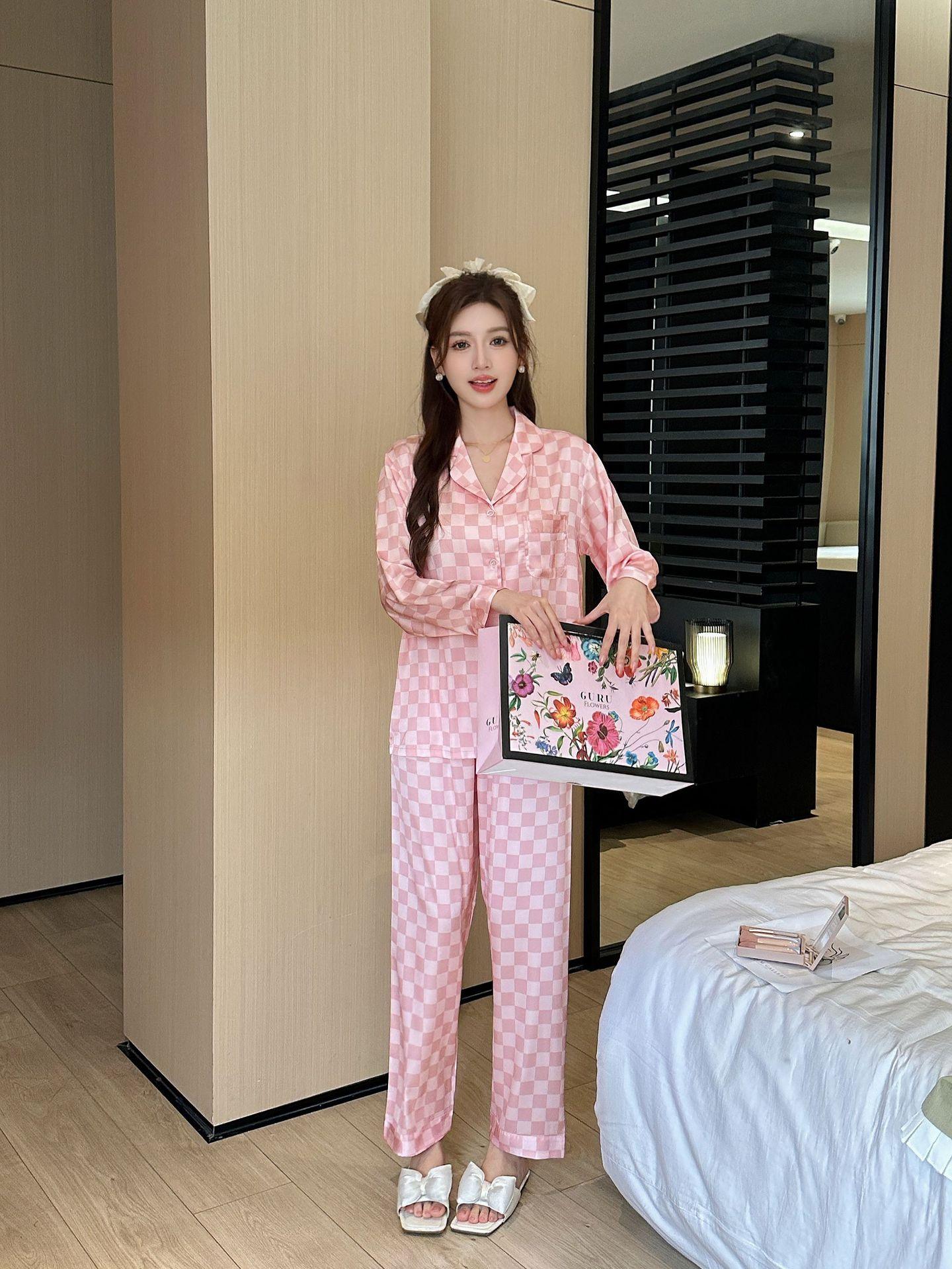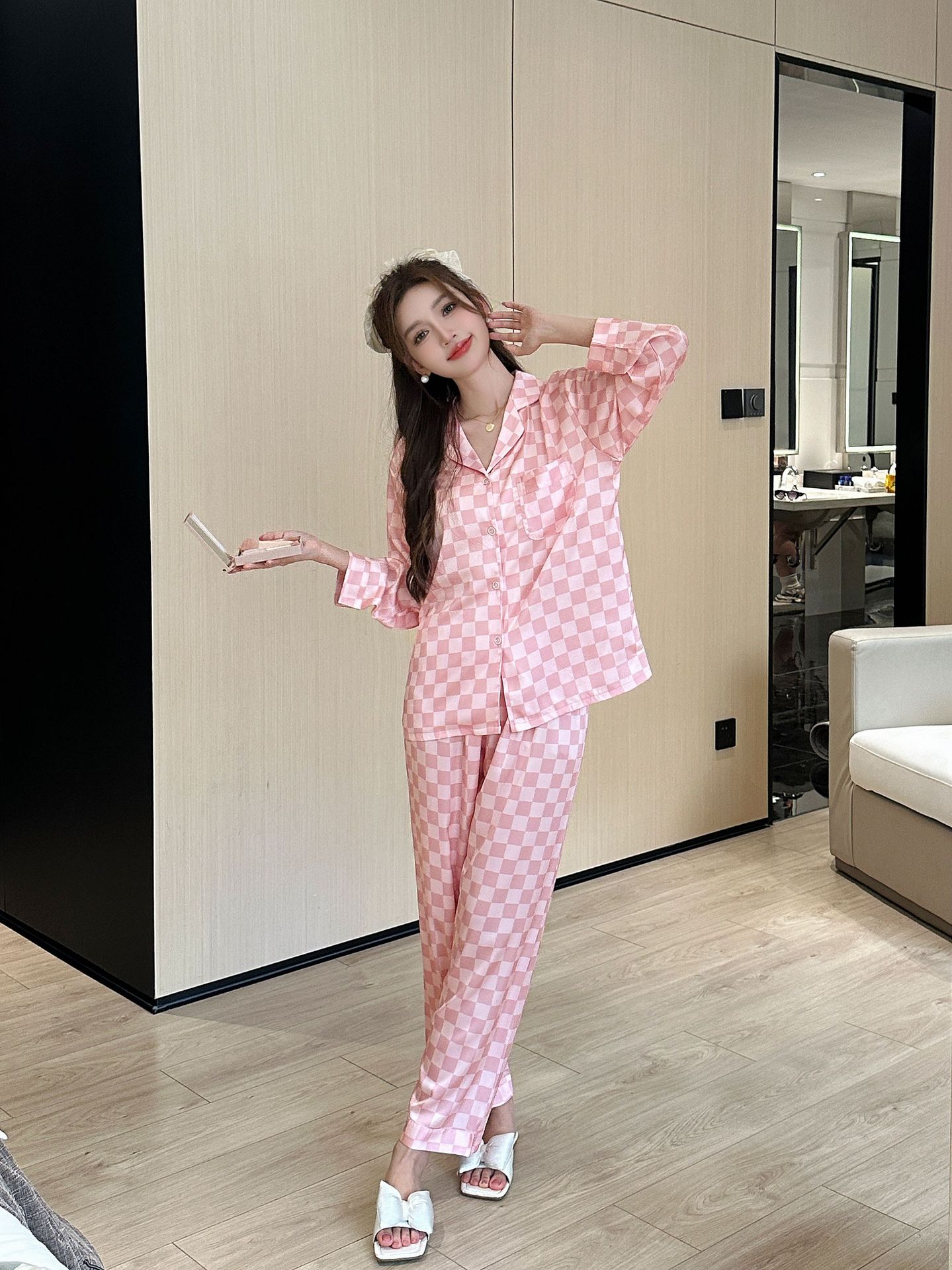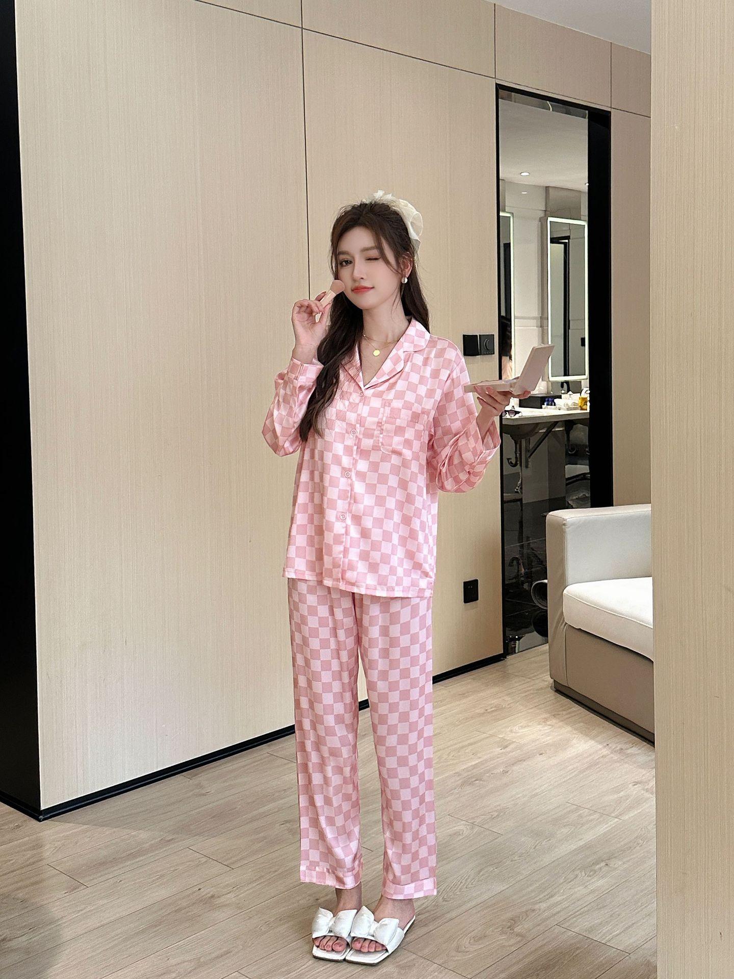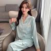 Pijama de Seda para Mujer Primavera y Otoño Set de Dos Piezas de Seda Helada Primavera Manga Larga Seda Fina Ropa para el Hogar Traje de Otoño tipo Seda