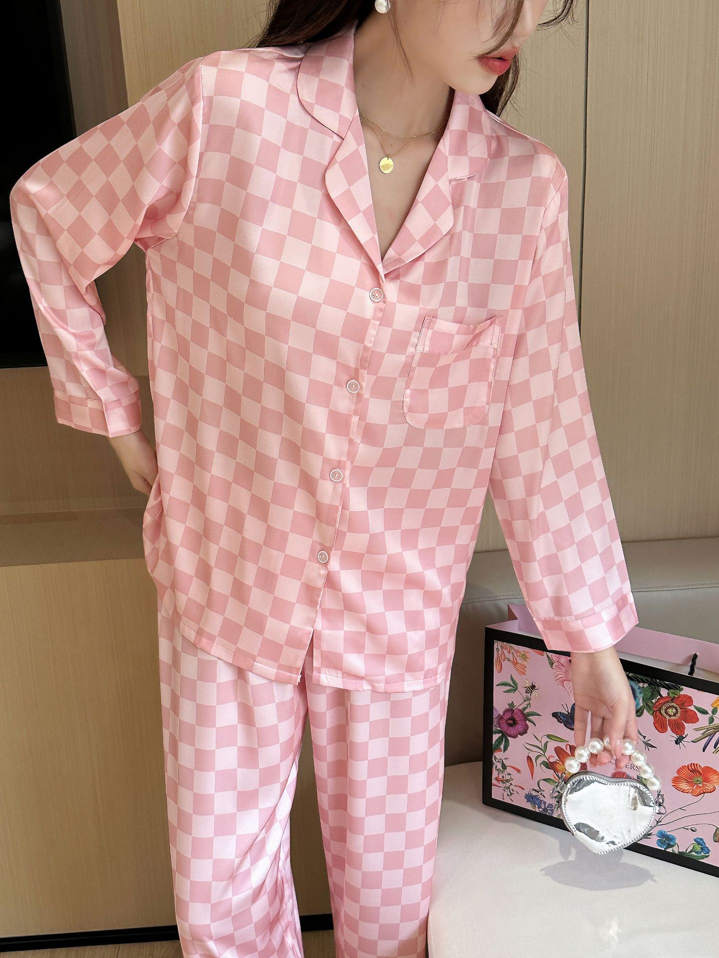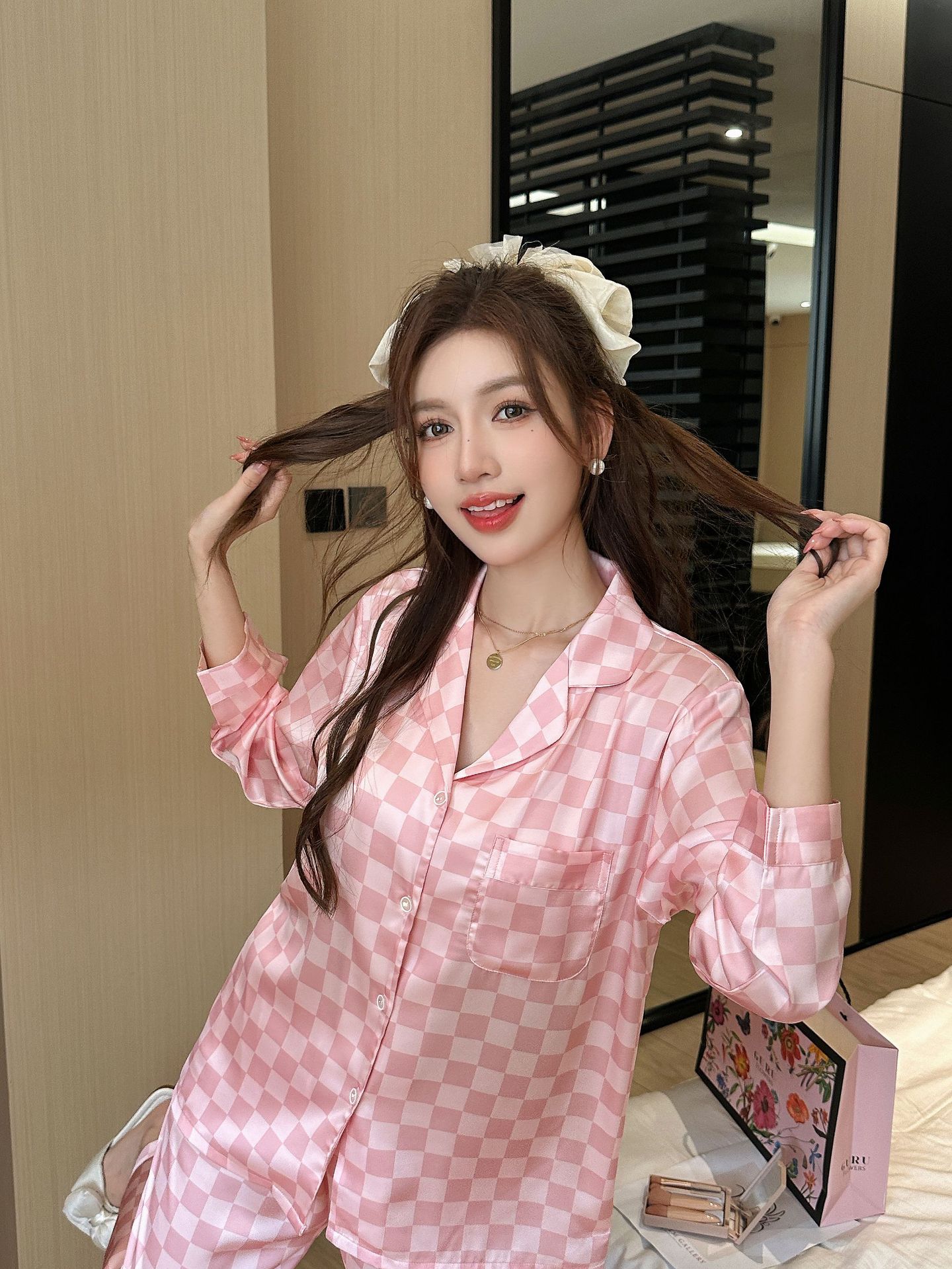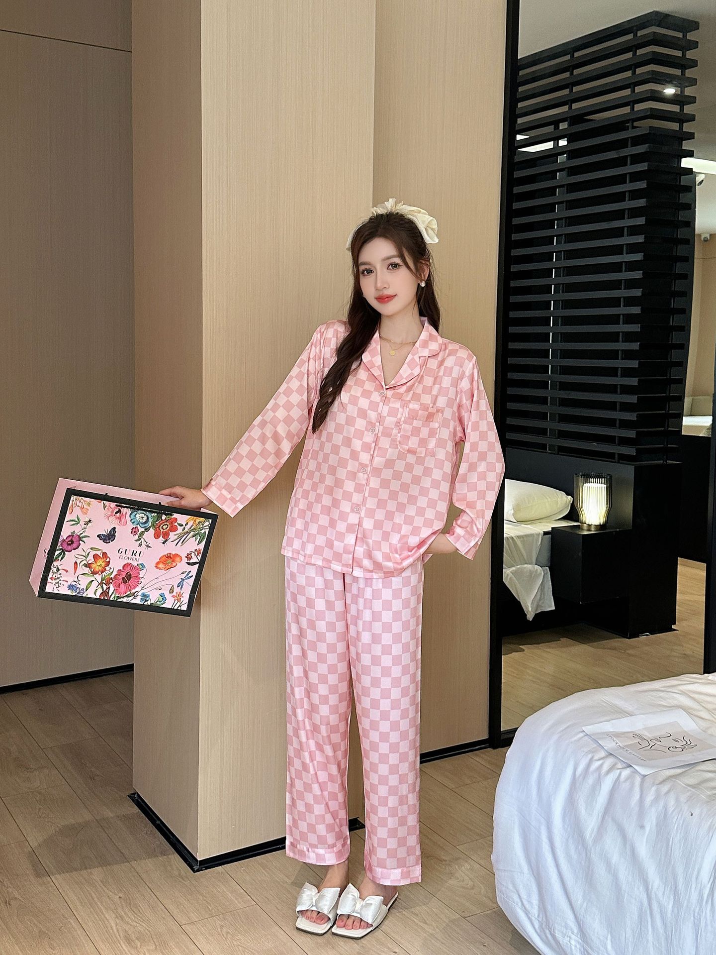 Pijama de Seda para Mujer Primavera y Otoño Set de Dos Piezas de Seda Helada Primavera Manga Larga Seda Fina Ropa para el Hogar Traje de Otoño tipo Seda
